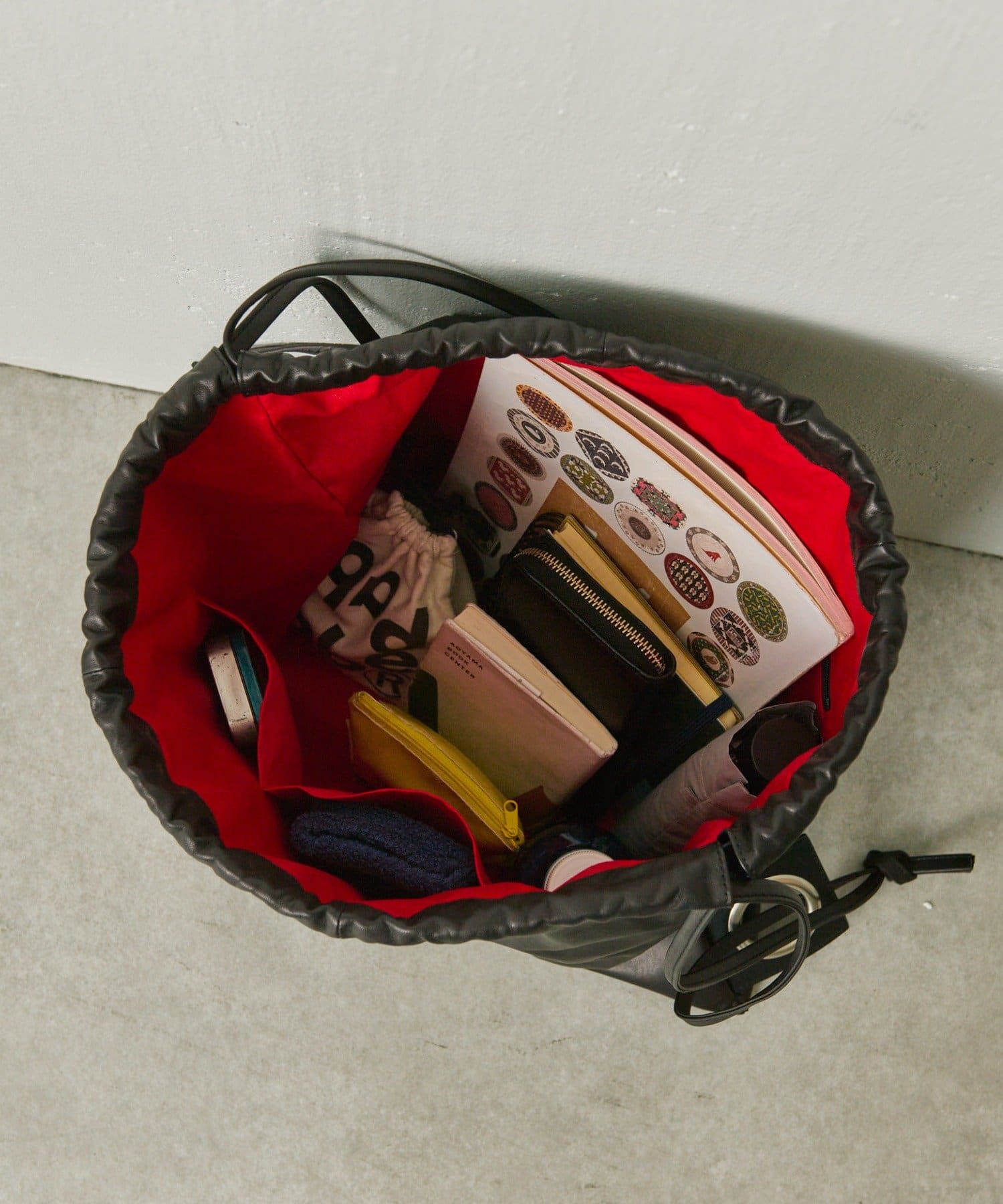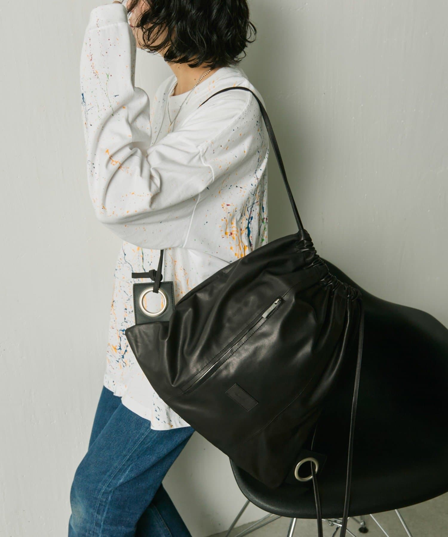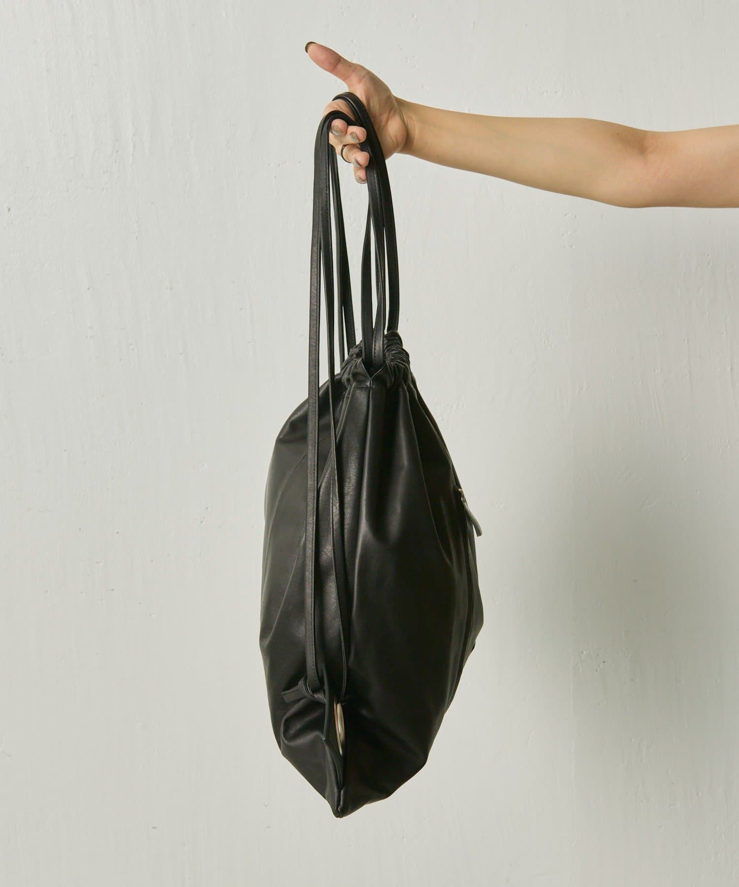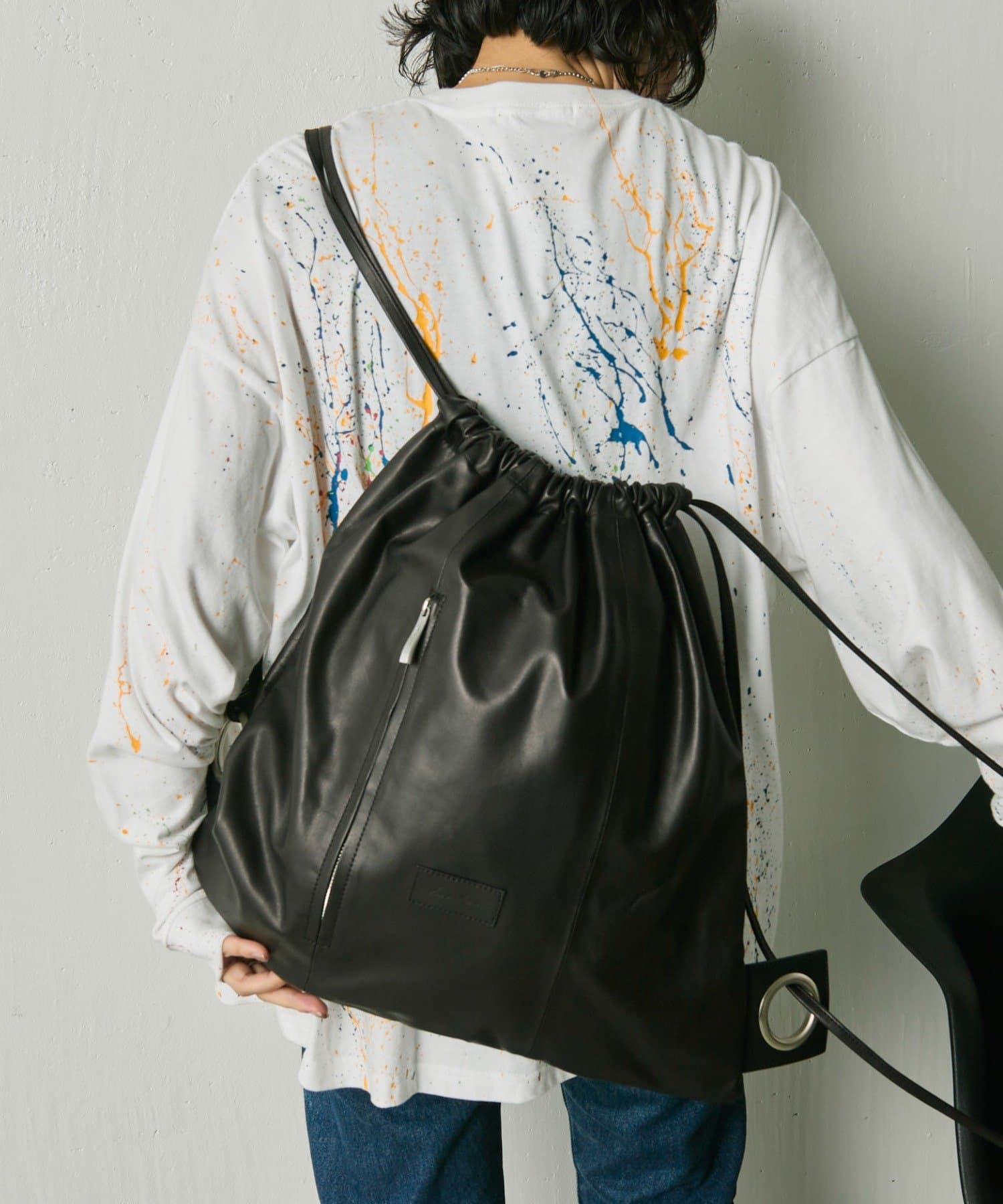 軽く柔らかな風合いが特長のレザー製巾着リュック
