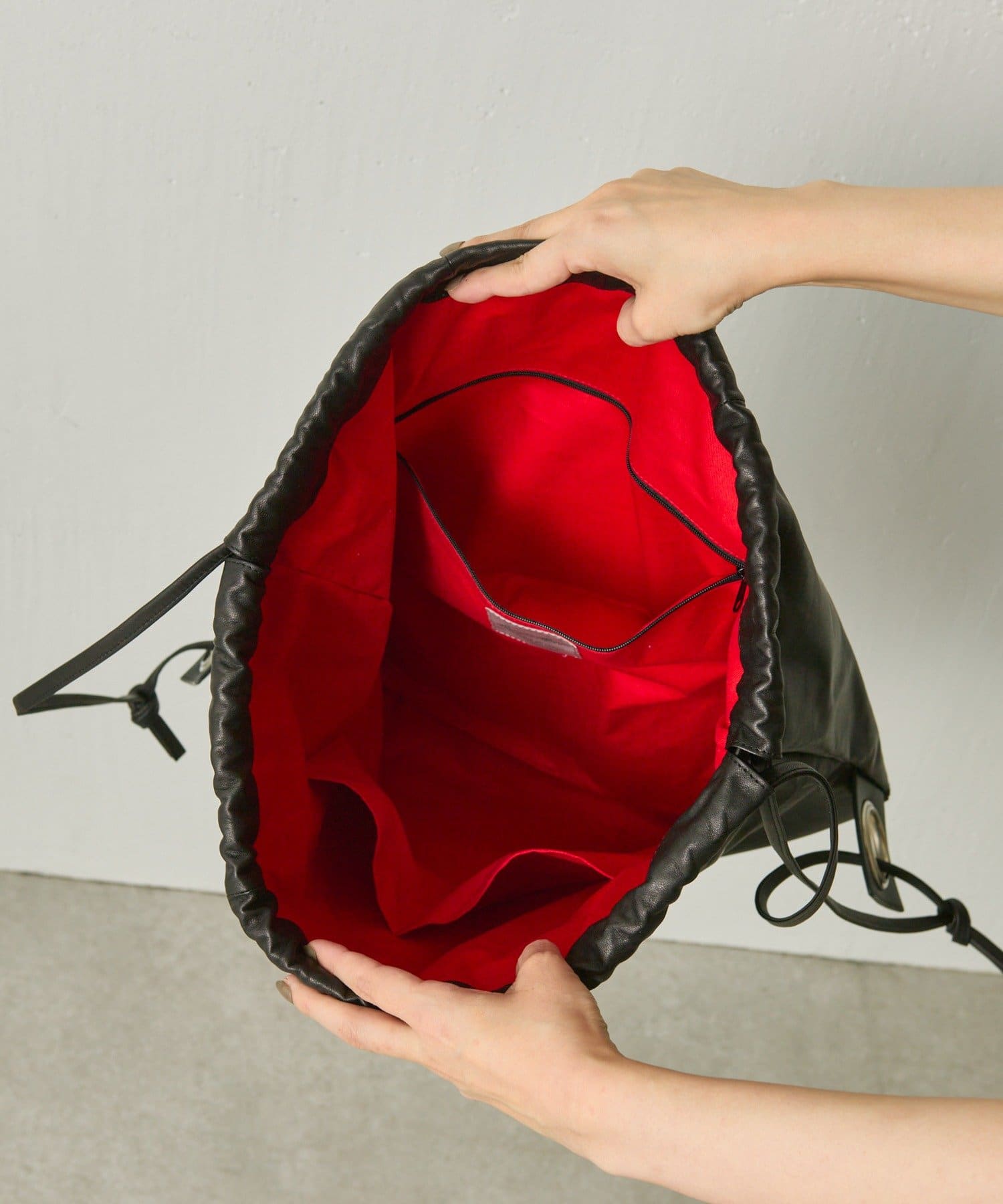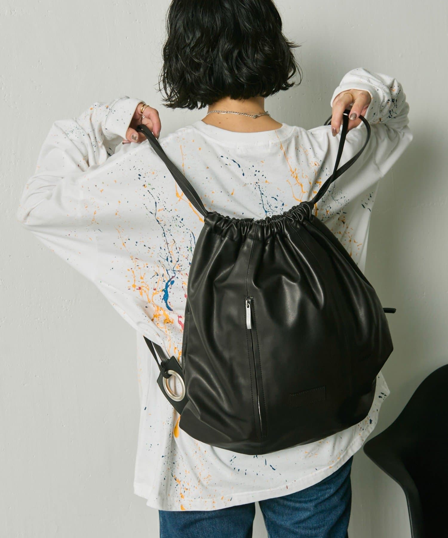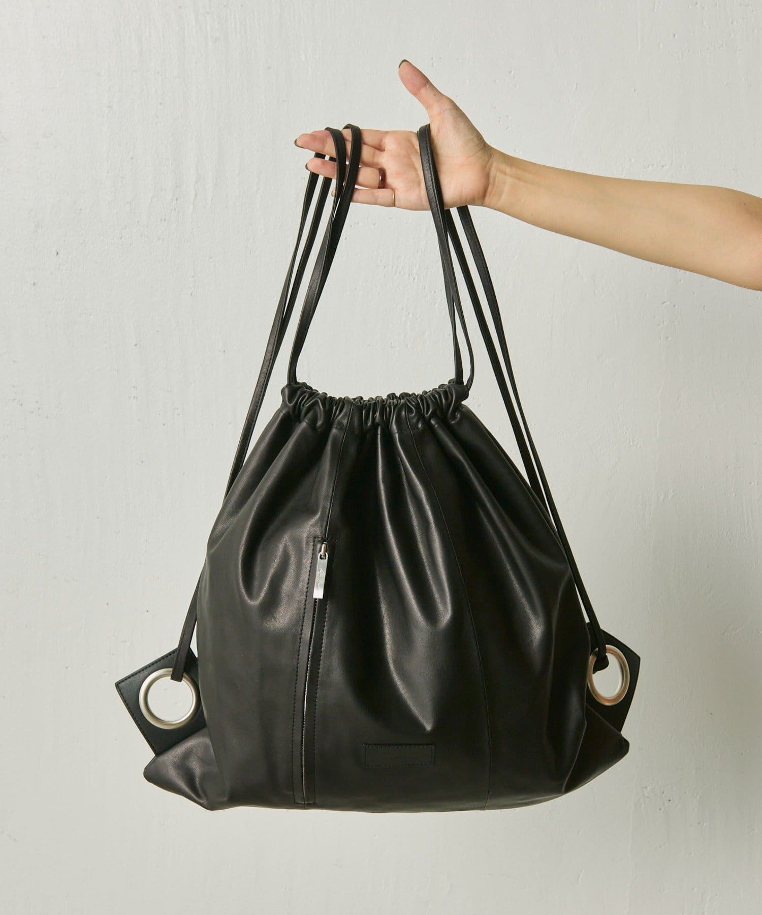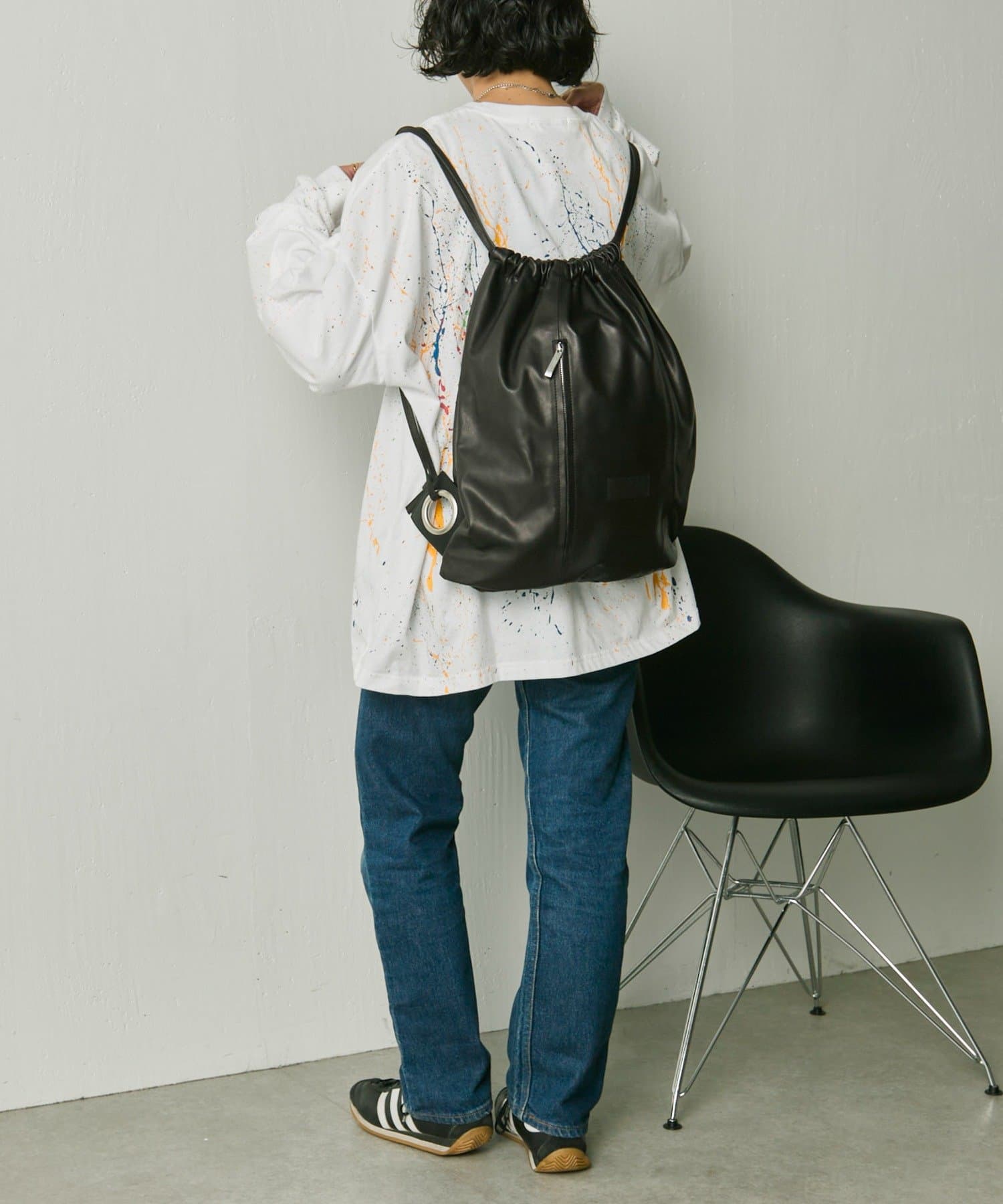 軽く柔らかな風合いが特長のレザー製巾着リュック