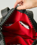 ファスナー端の大きなタブで開閉もスムーズに行え、実用性とデザイン性を両立しています。