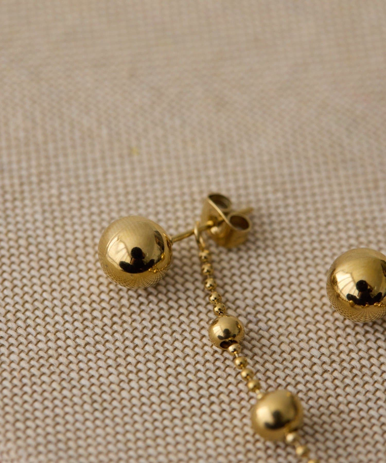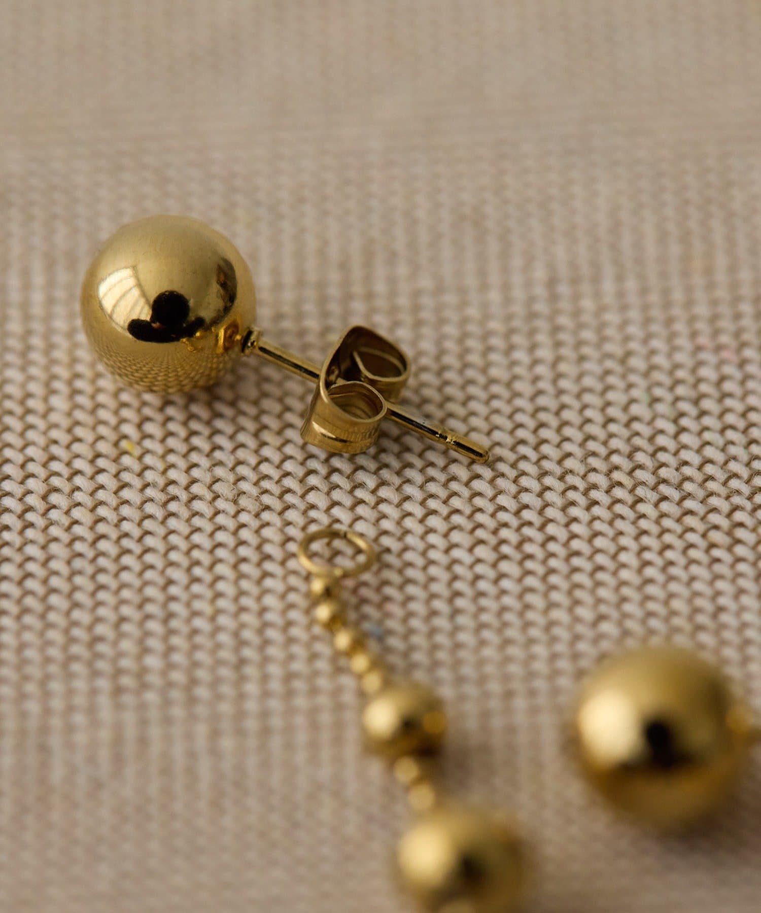 耳元で輝く、遊び心。ロングボールチェーンピアス