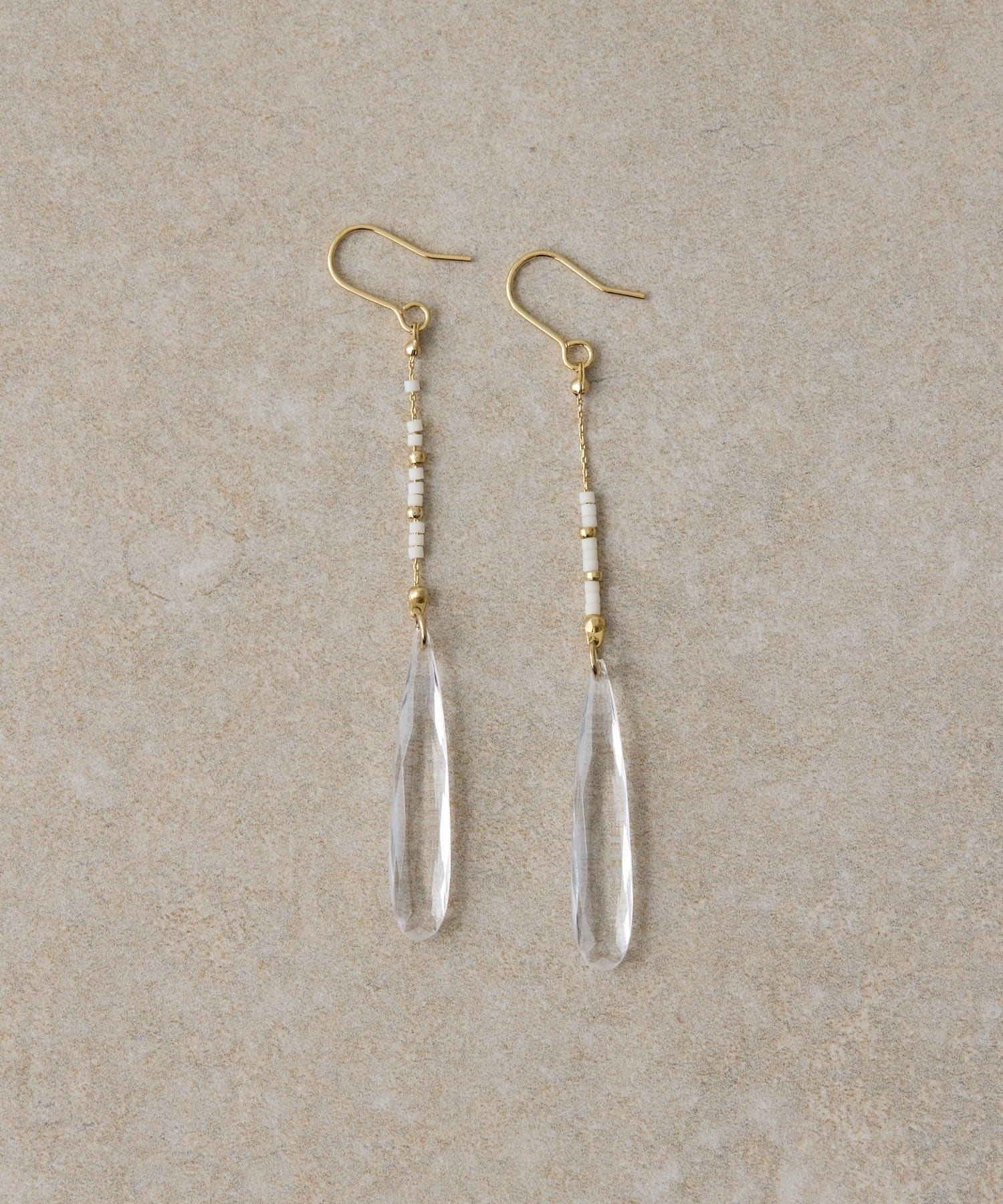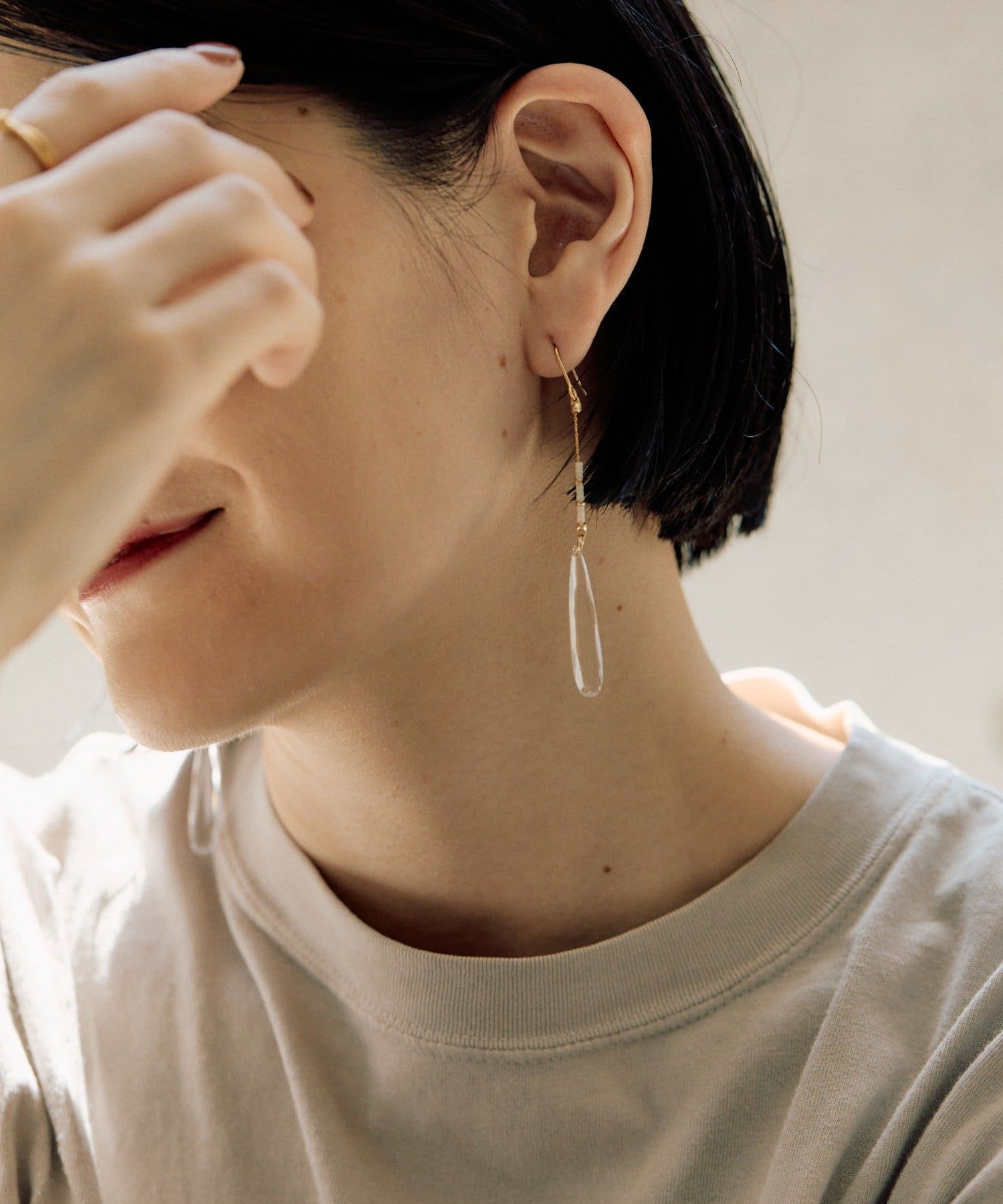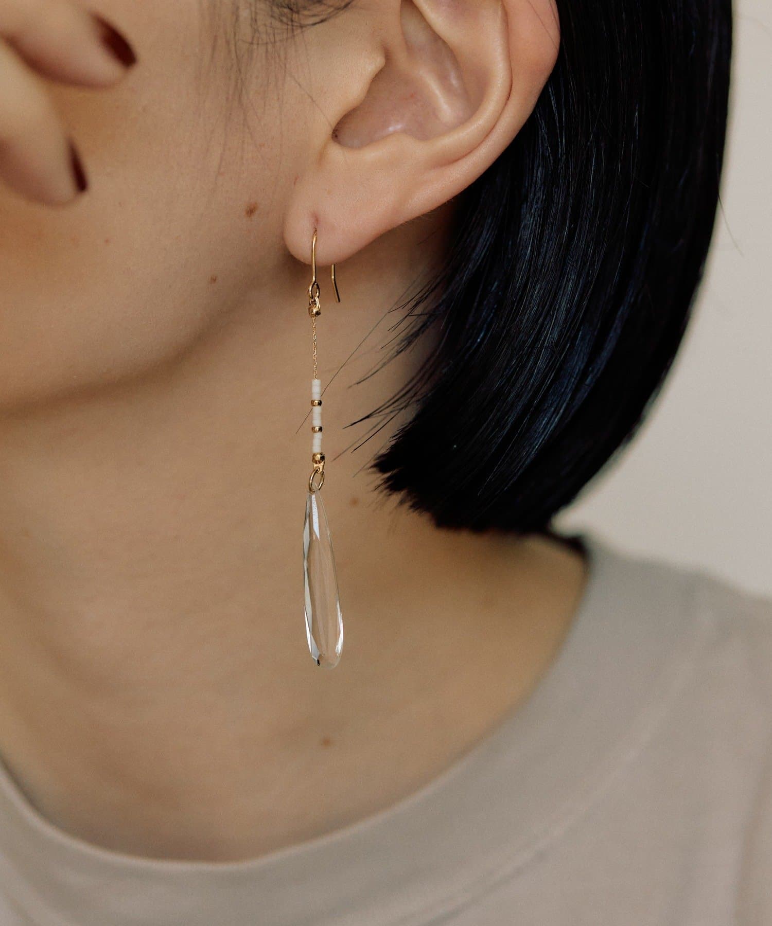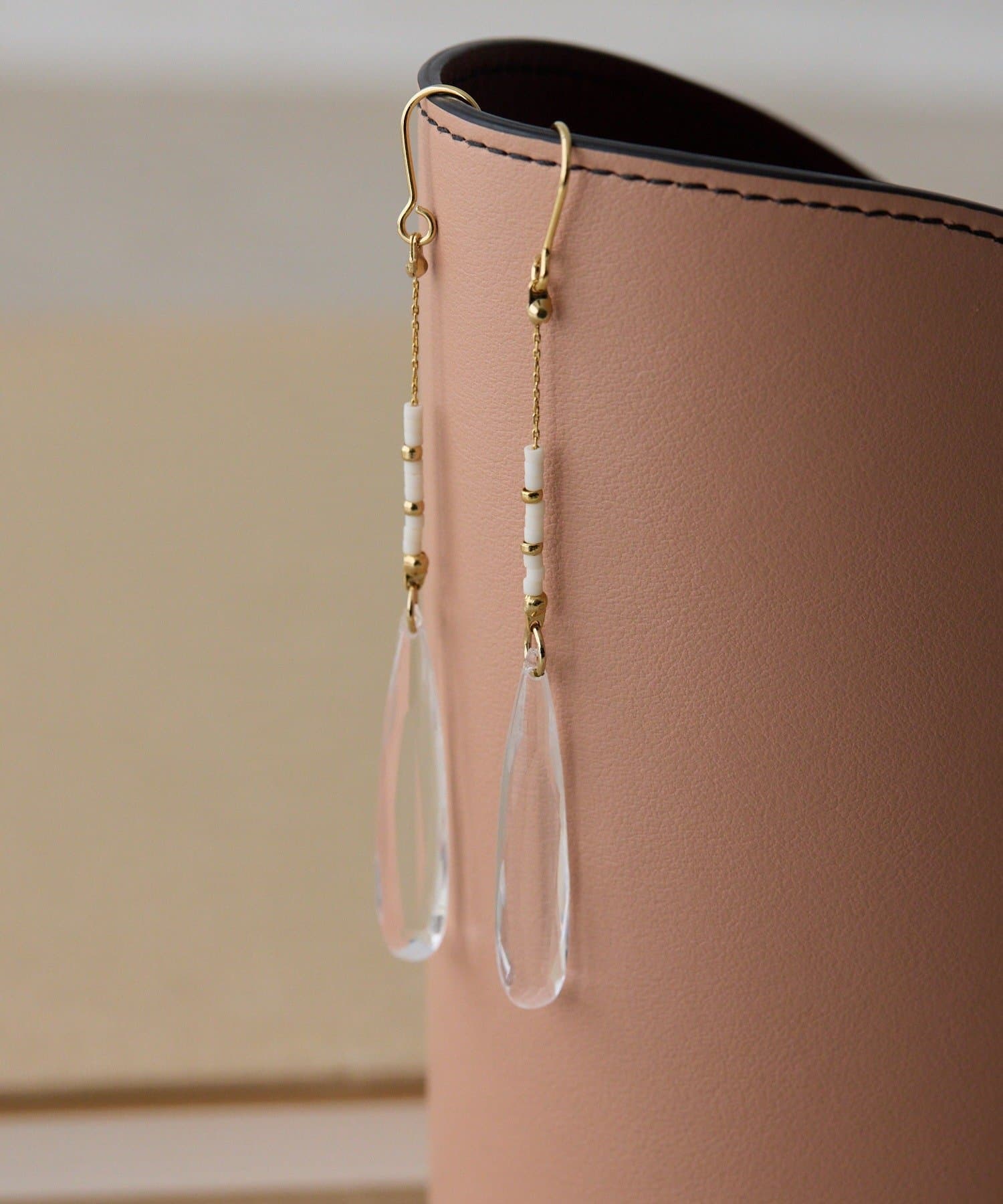 耳元で涼しげに揺れる「ロングクリスタルピアス」