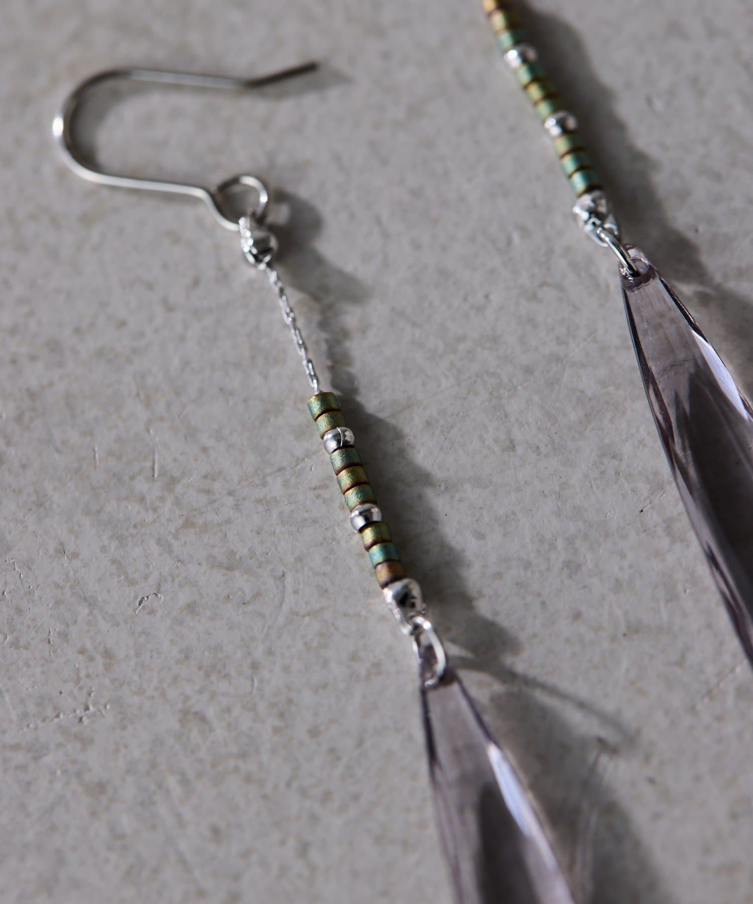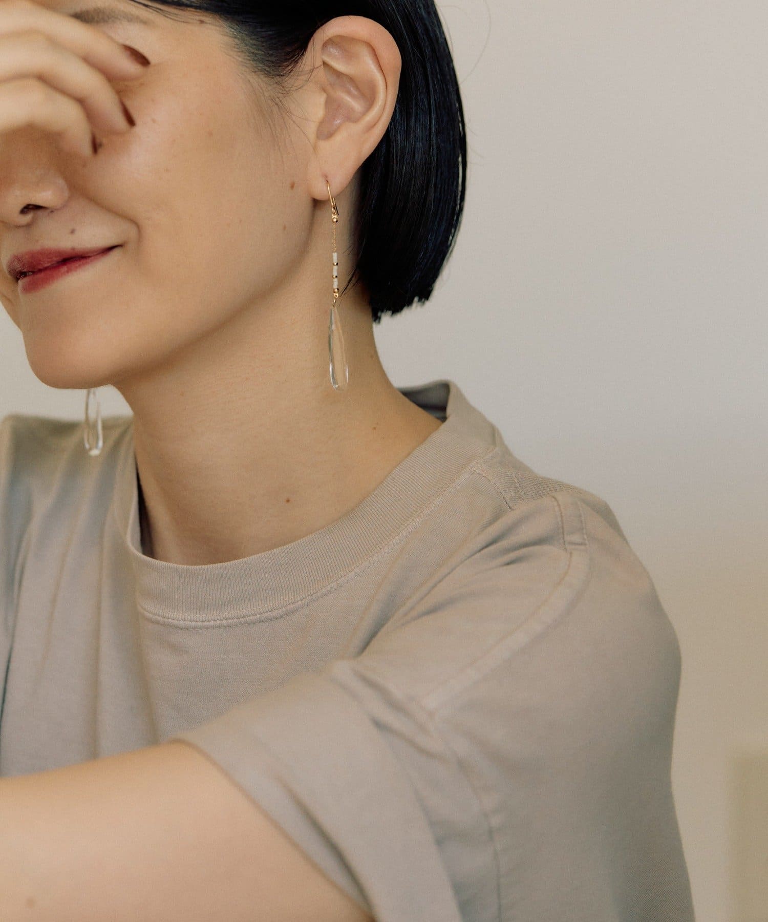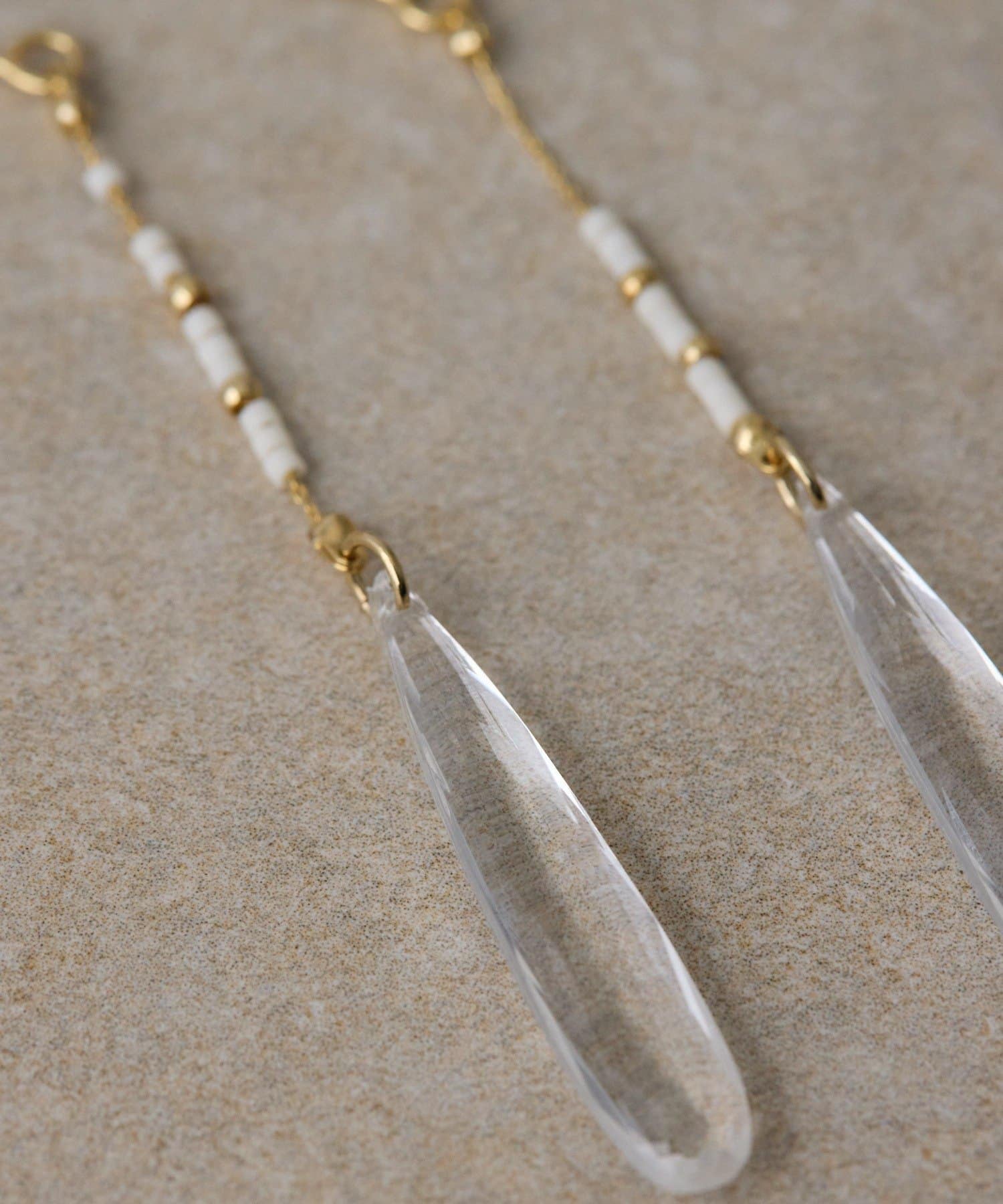 耳元で涼しげに揺れる「ロングクリスタルピアス」