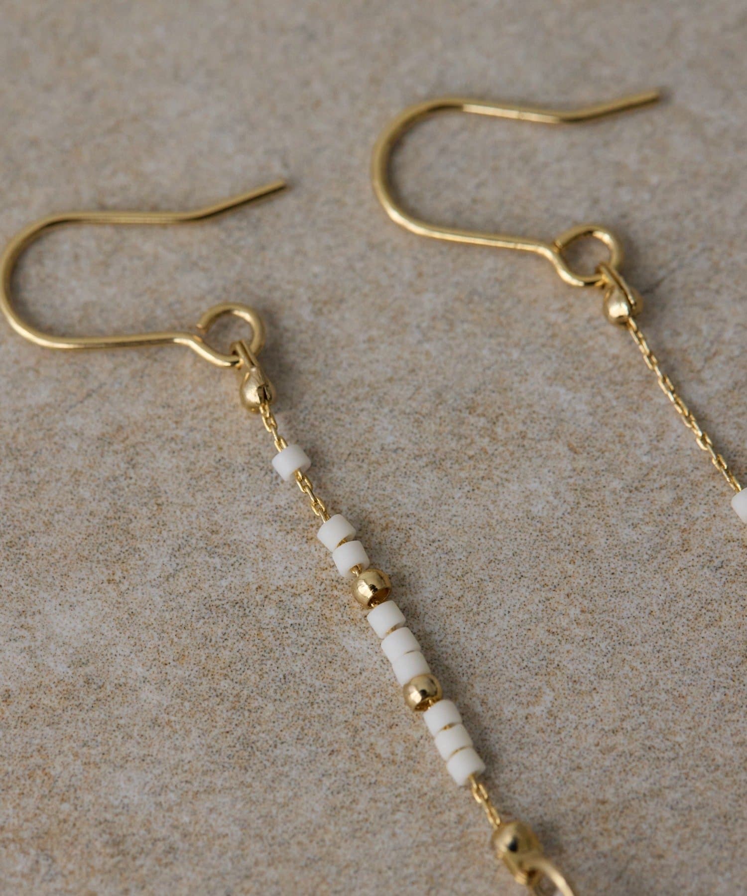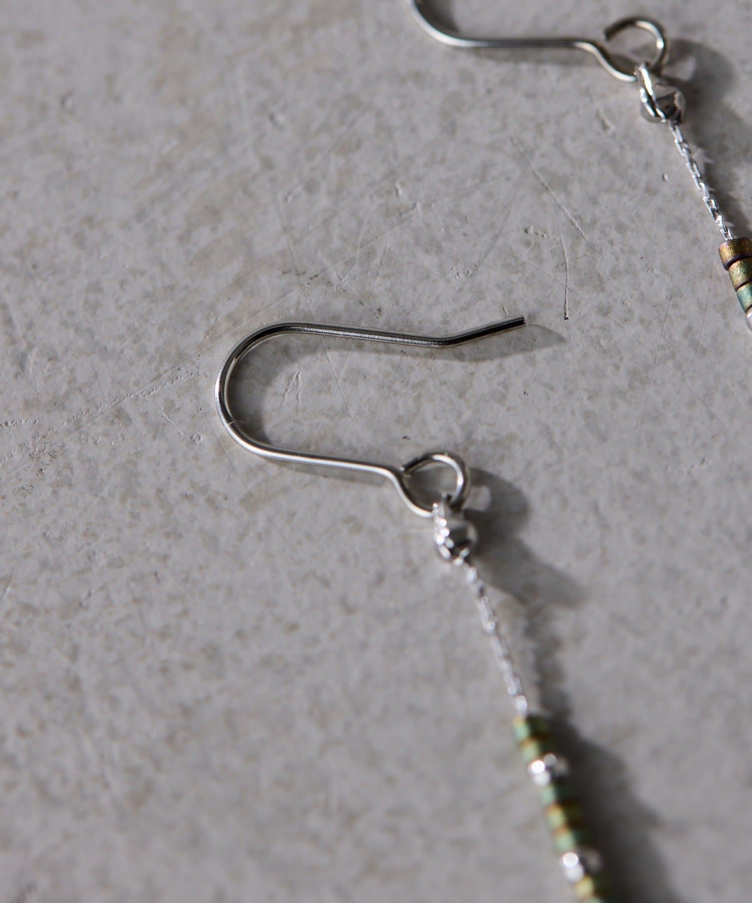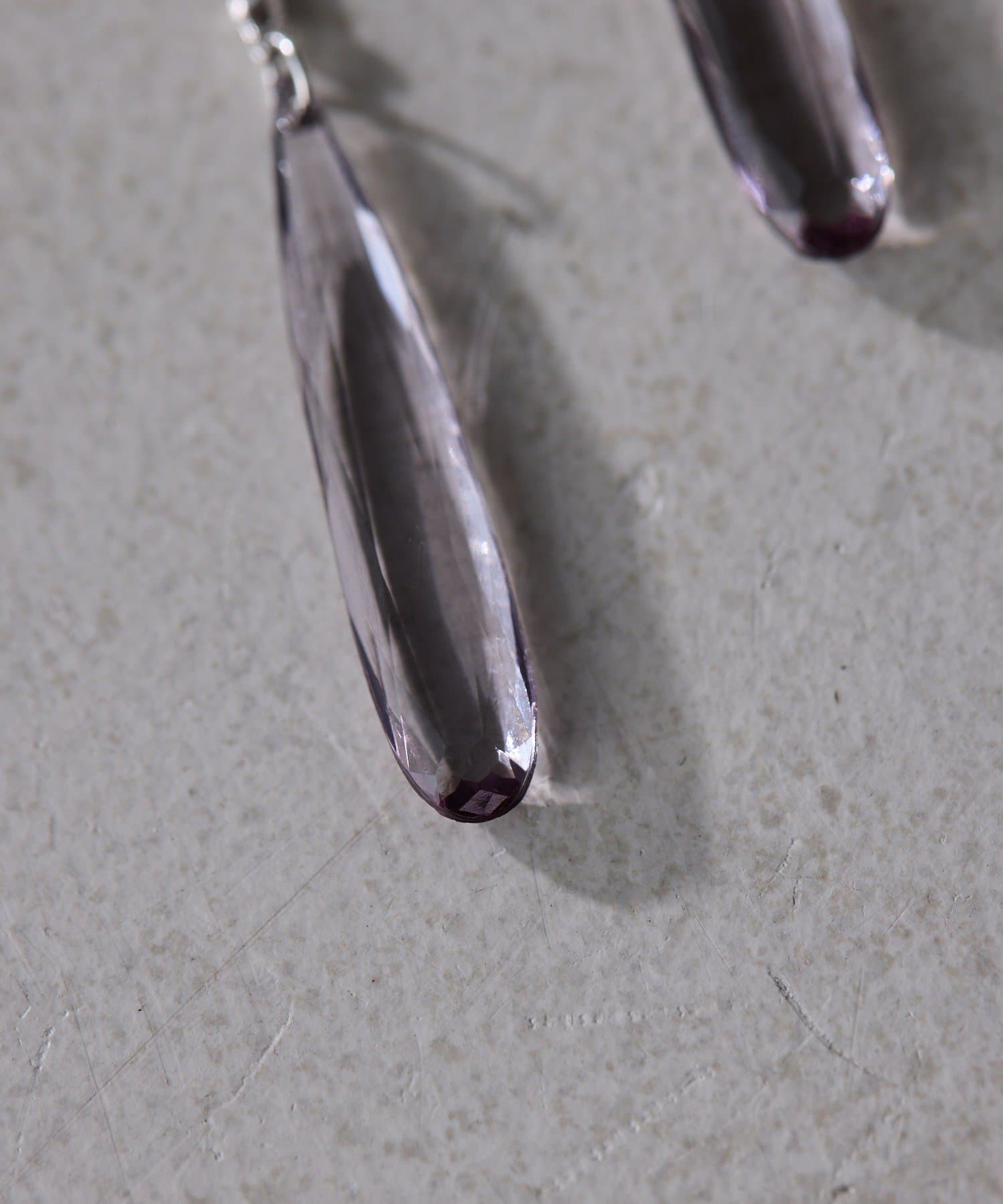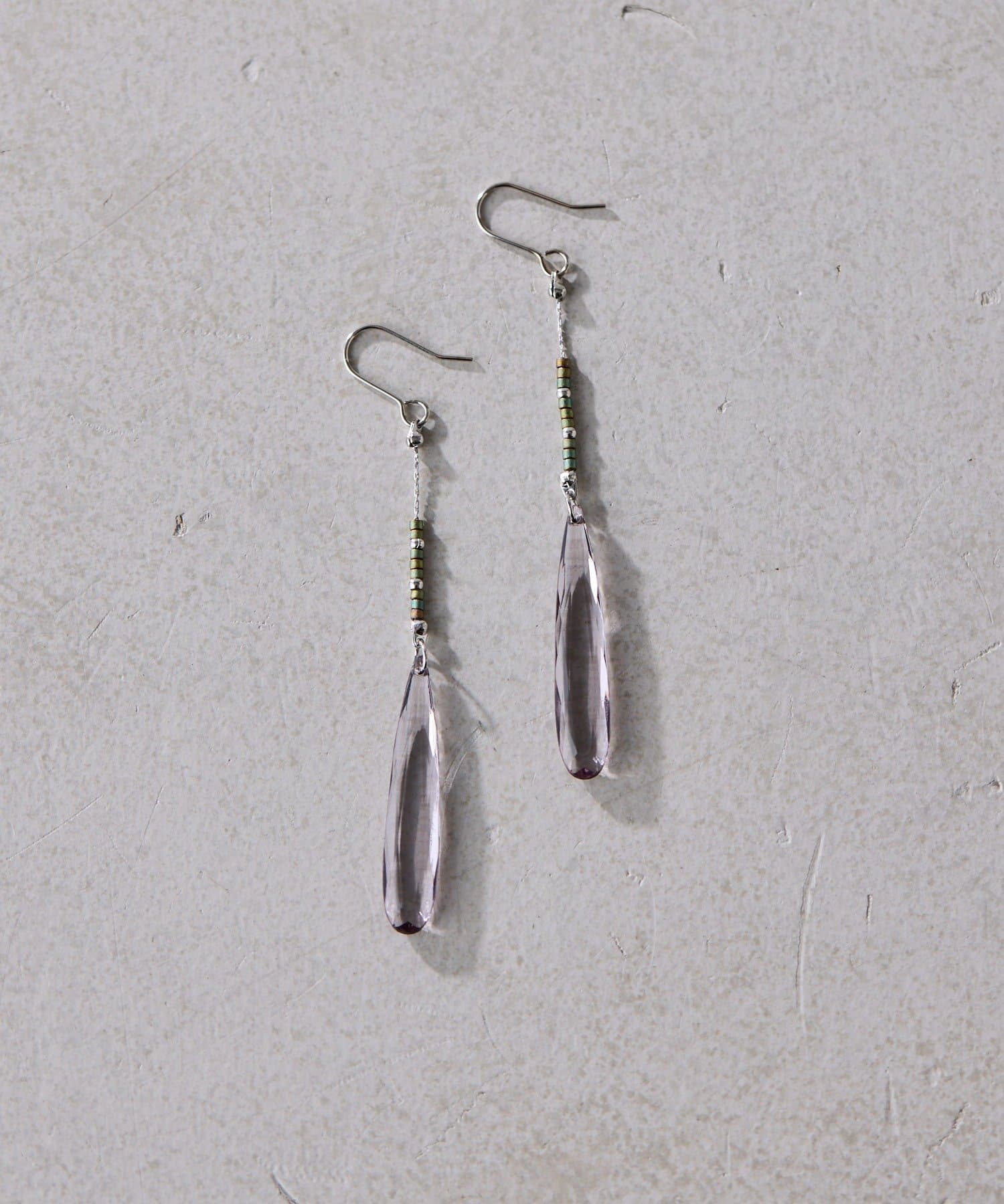 耳元で涼しげに揺れる「ロングクリスタルピアス」