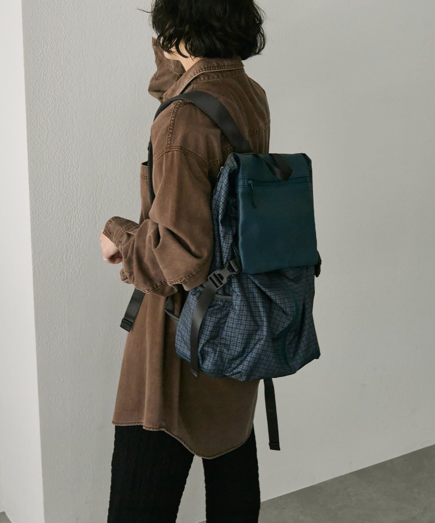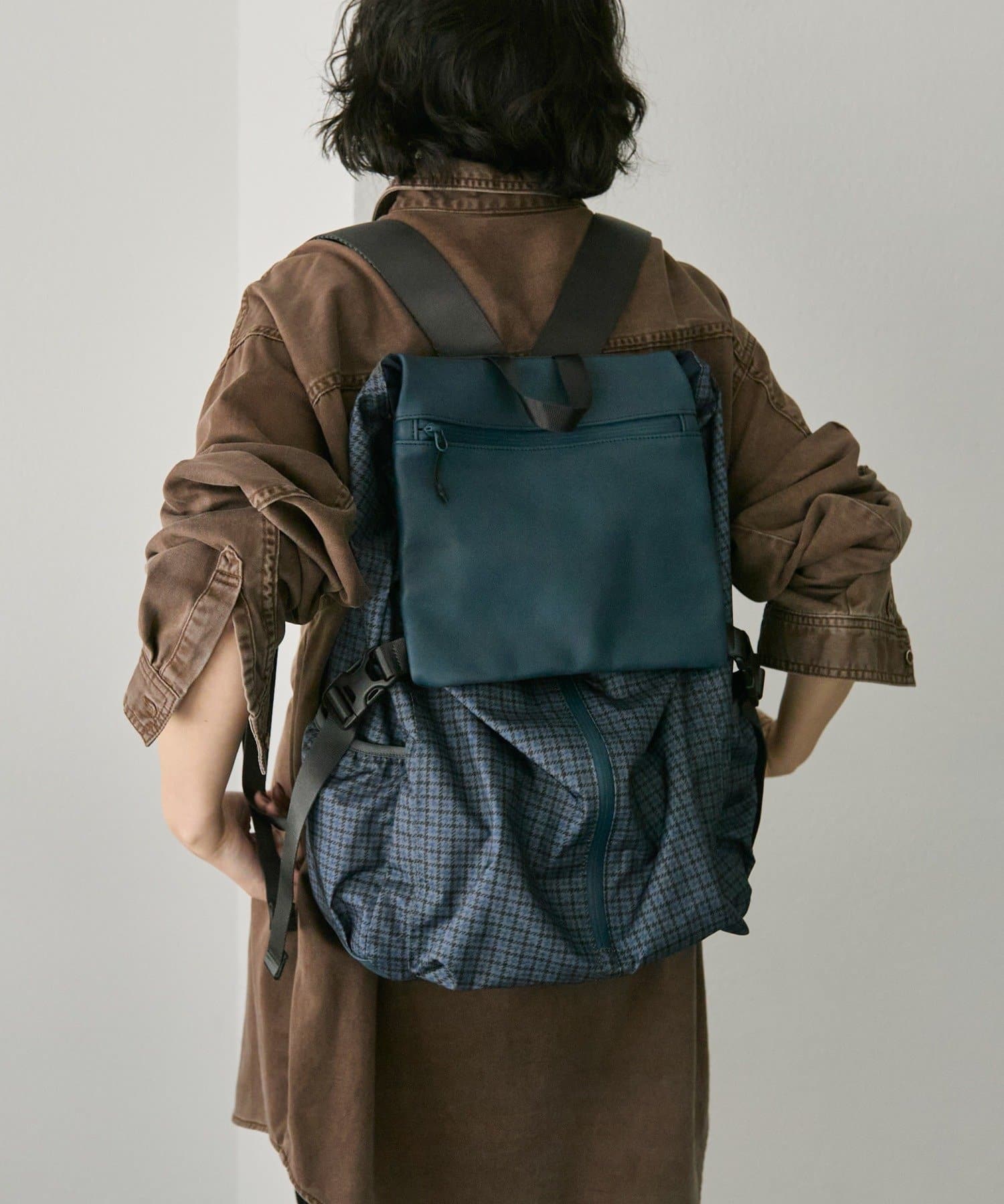 本体の千鳥格子チェックとブルーのフラップがポイント