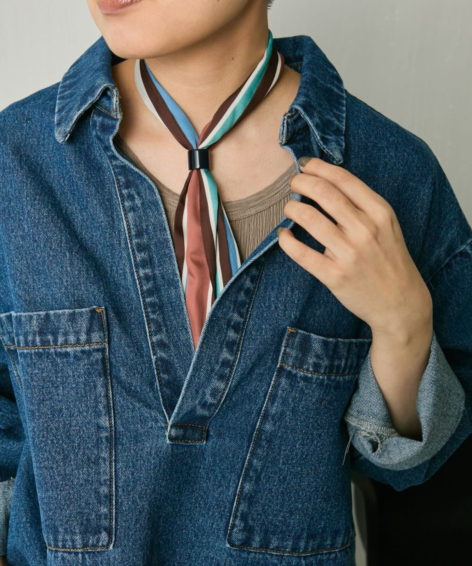 長さを活かして、ルーズに垂らしたり、首元に巻いてアクセントにしたりと、様々な表情を楽しめます。