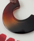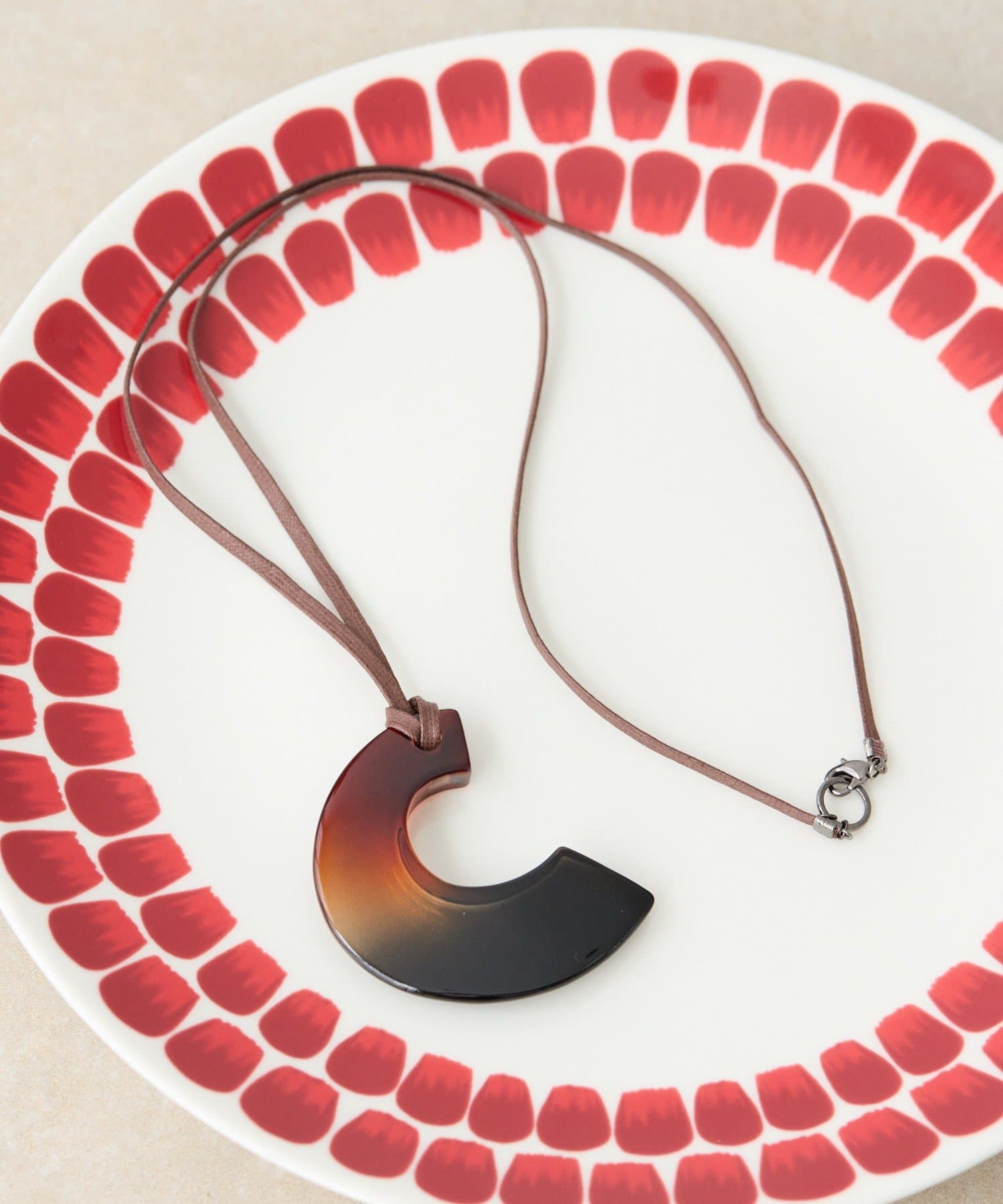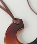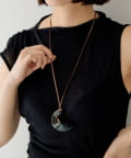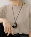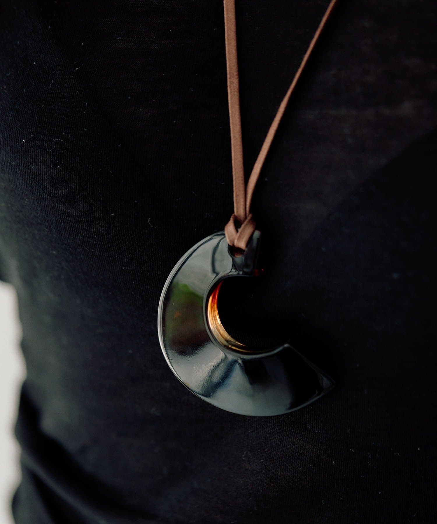 光を受けると、グラデーションカラーの樹脂がさらに美しく輝き、胸元を上品に演出。