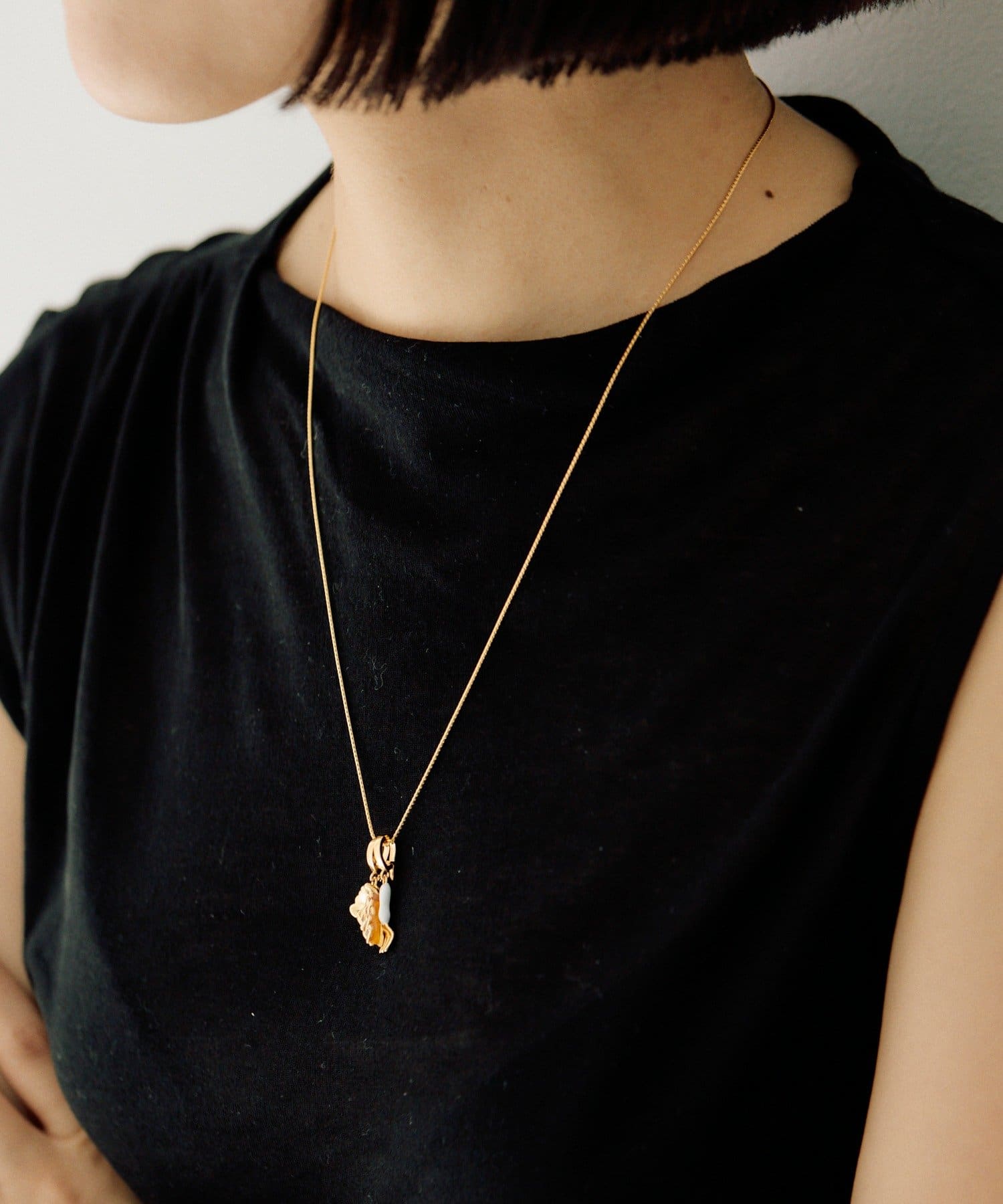 大人の可愛らしさを引き出す、他にはないユニークなネックレスです。