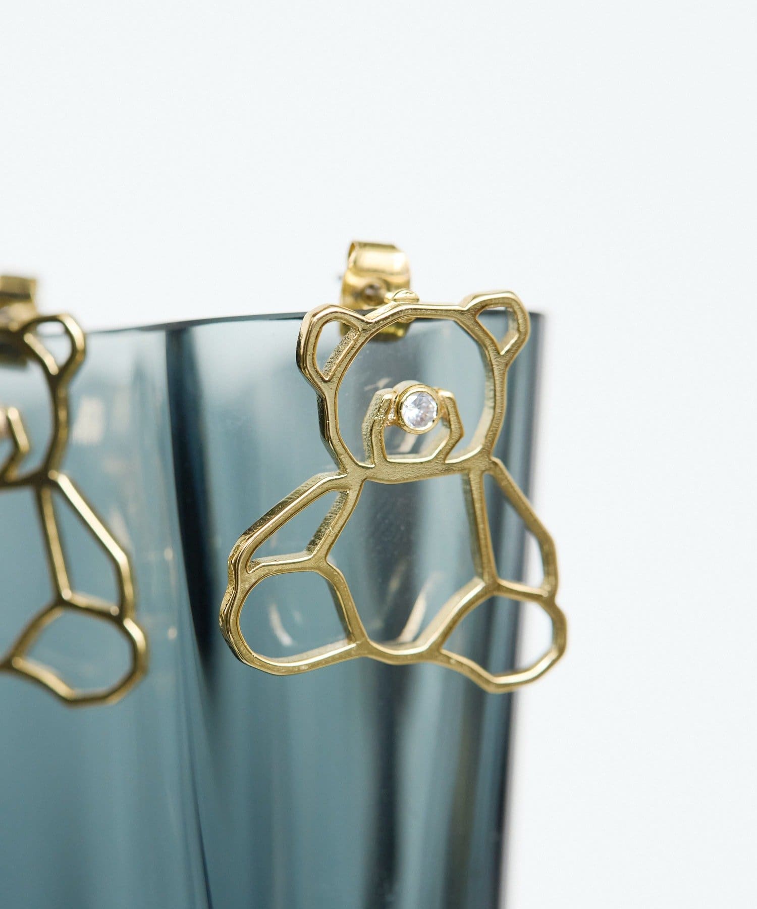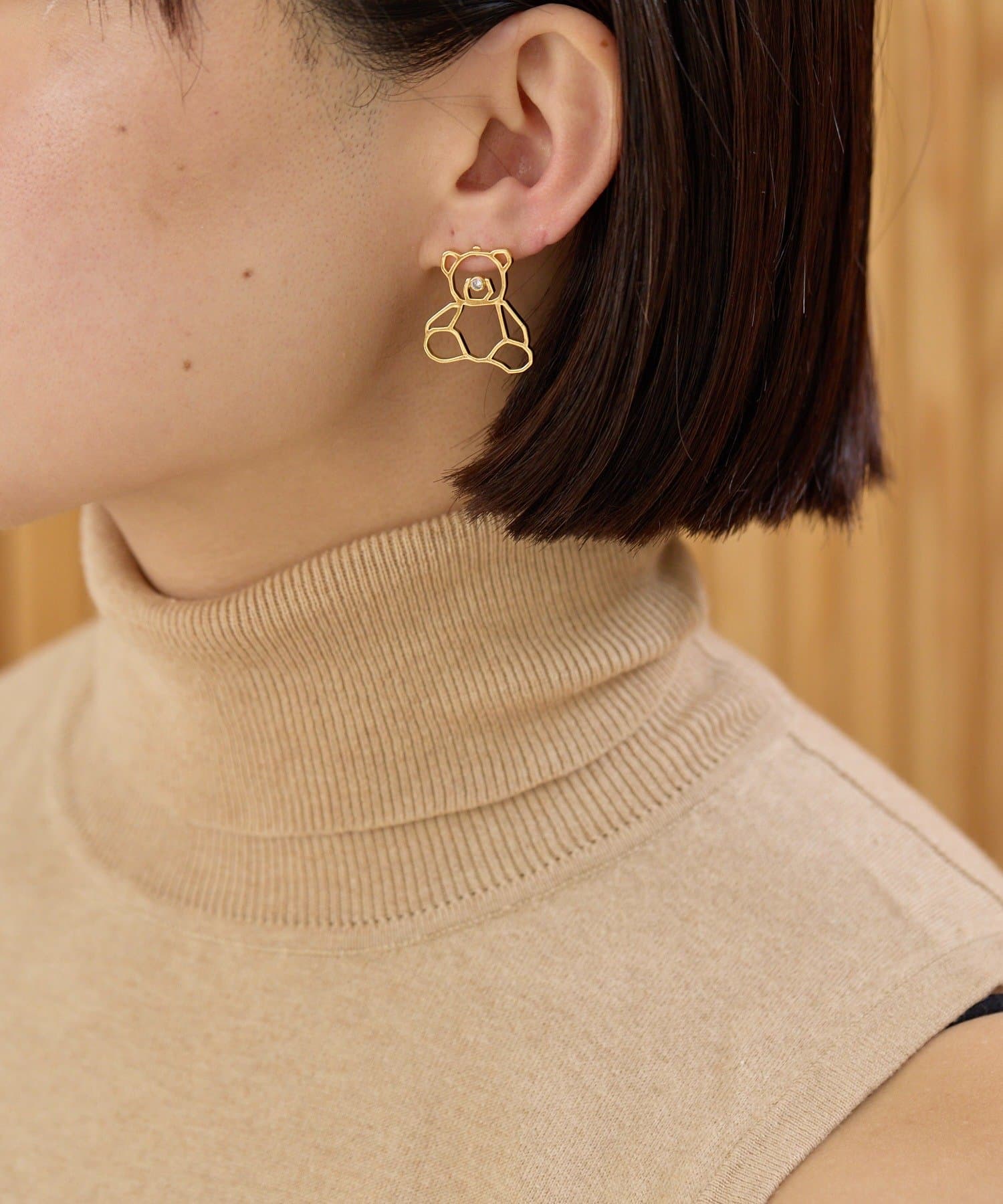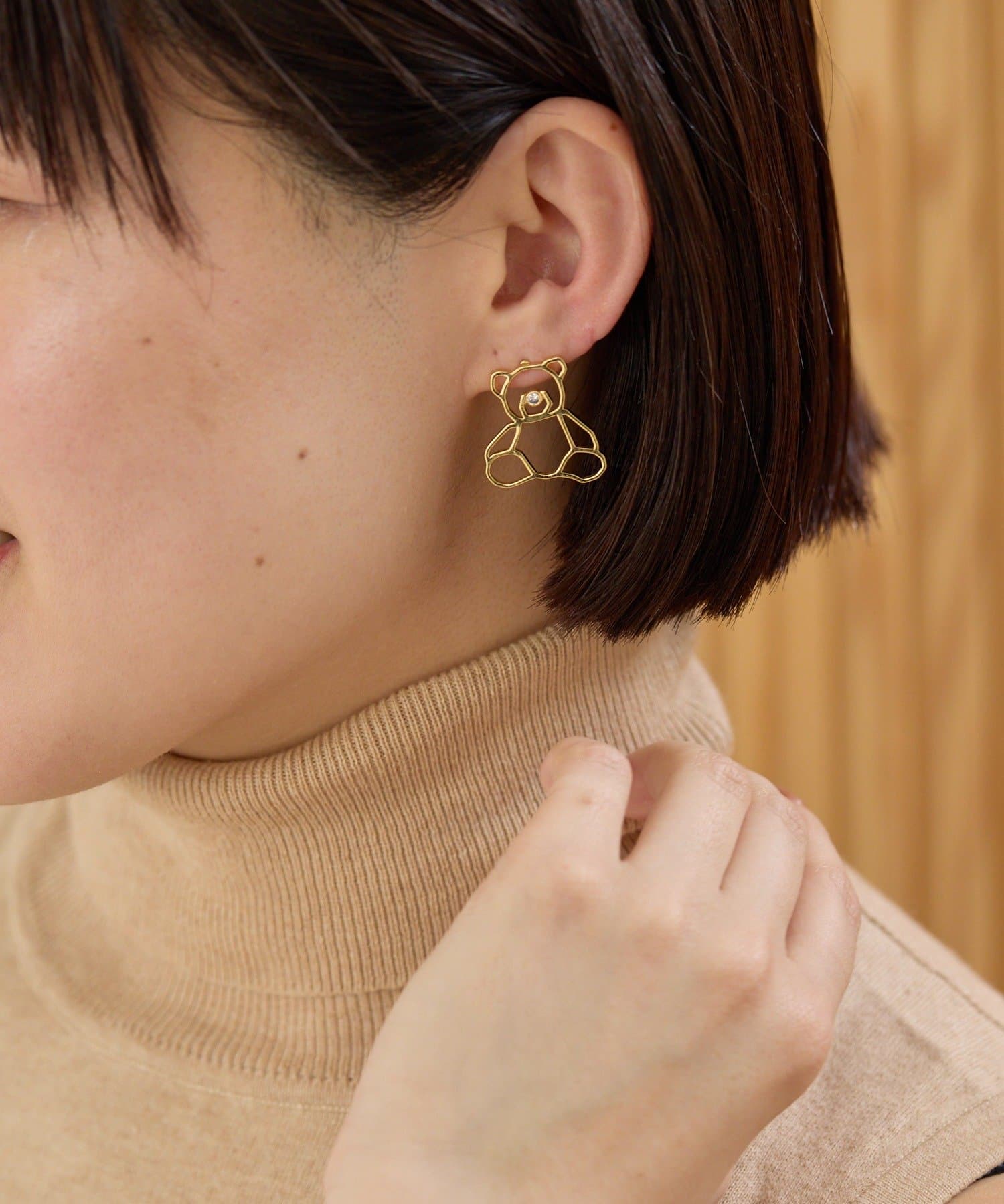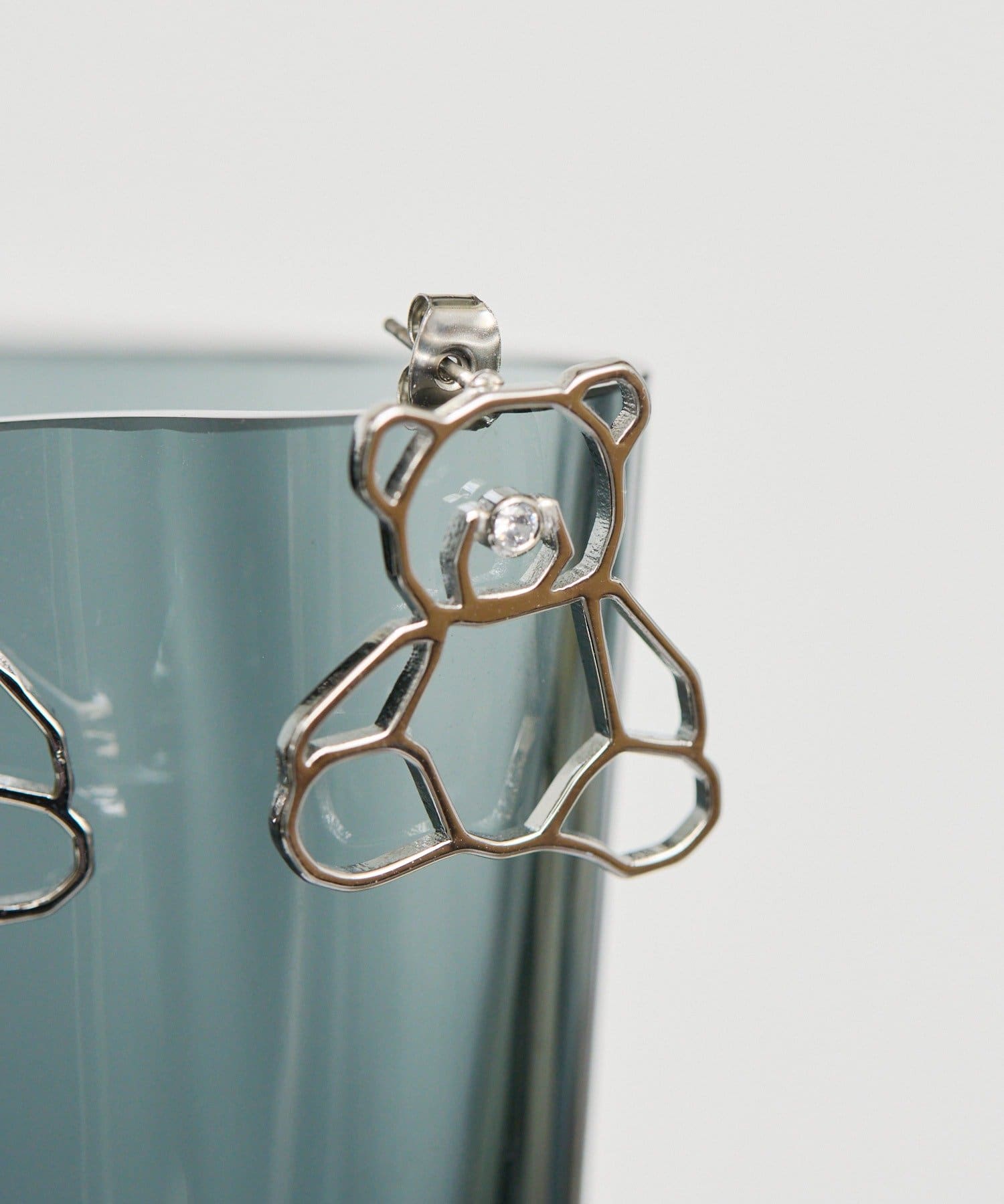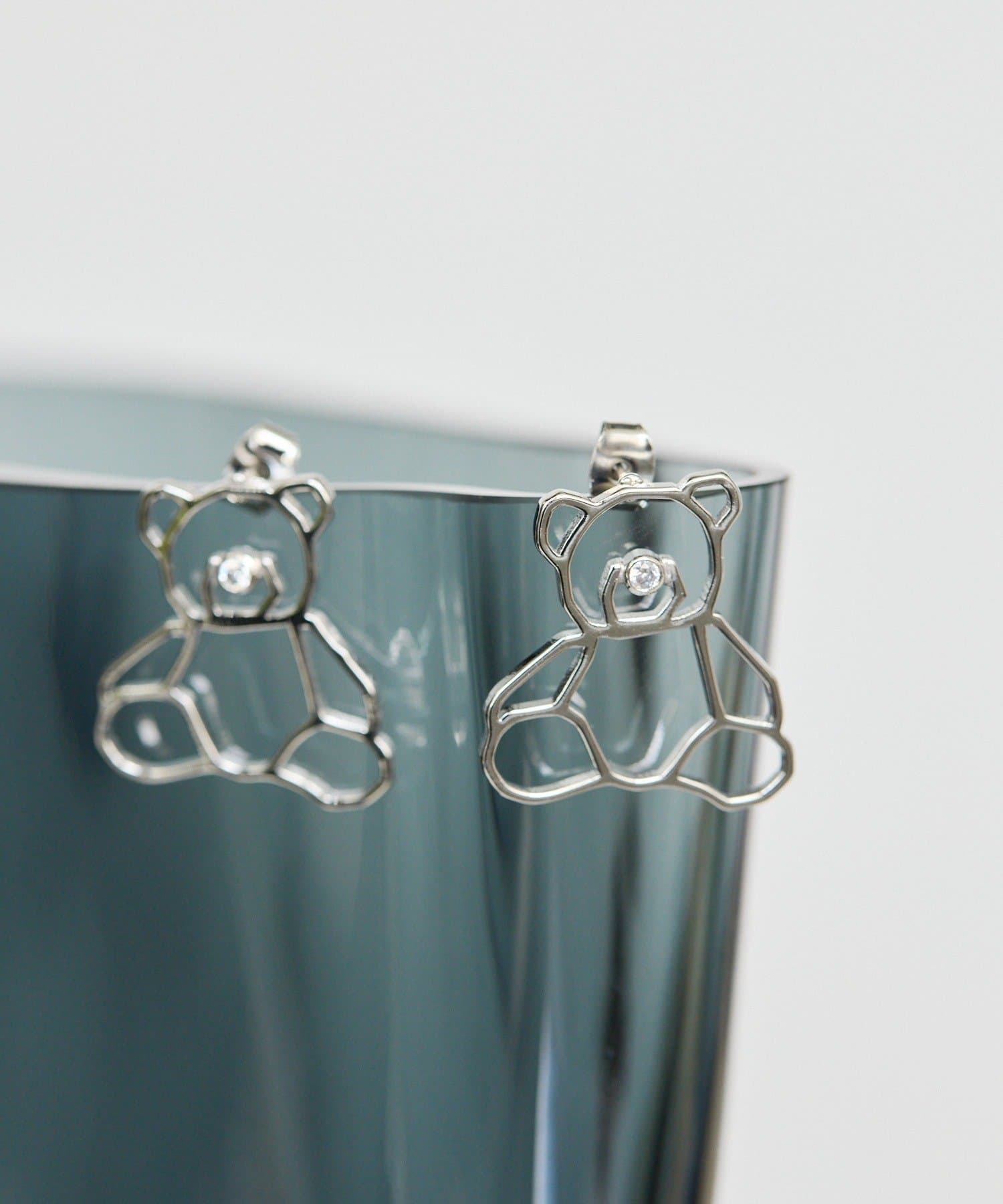 ・クマをメタルの線だけで表現したすかしモチーフピアス