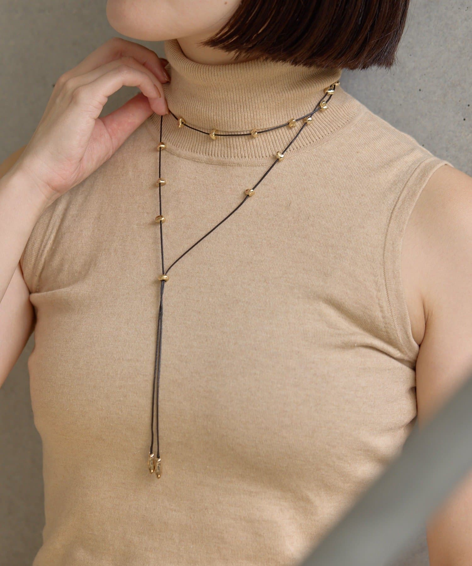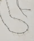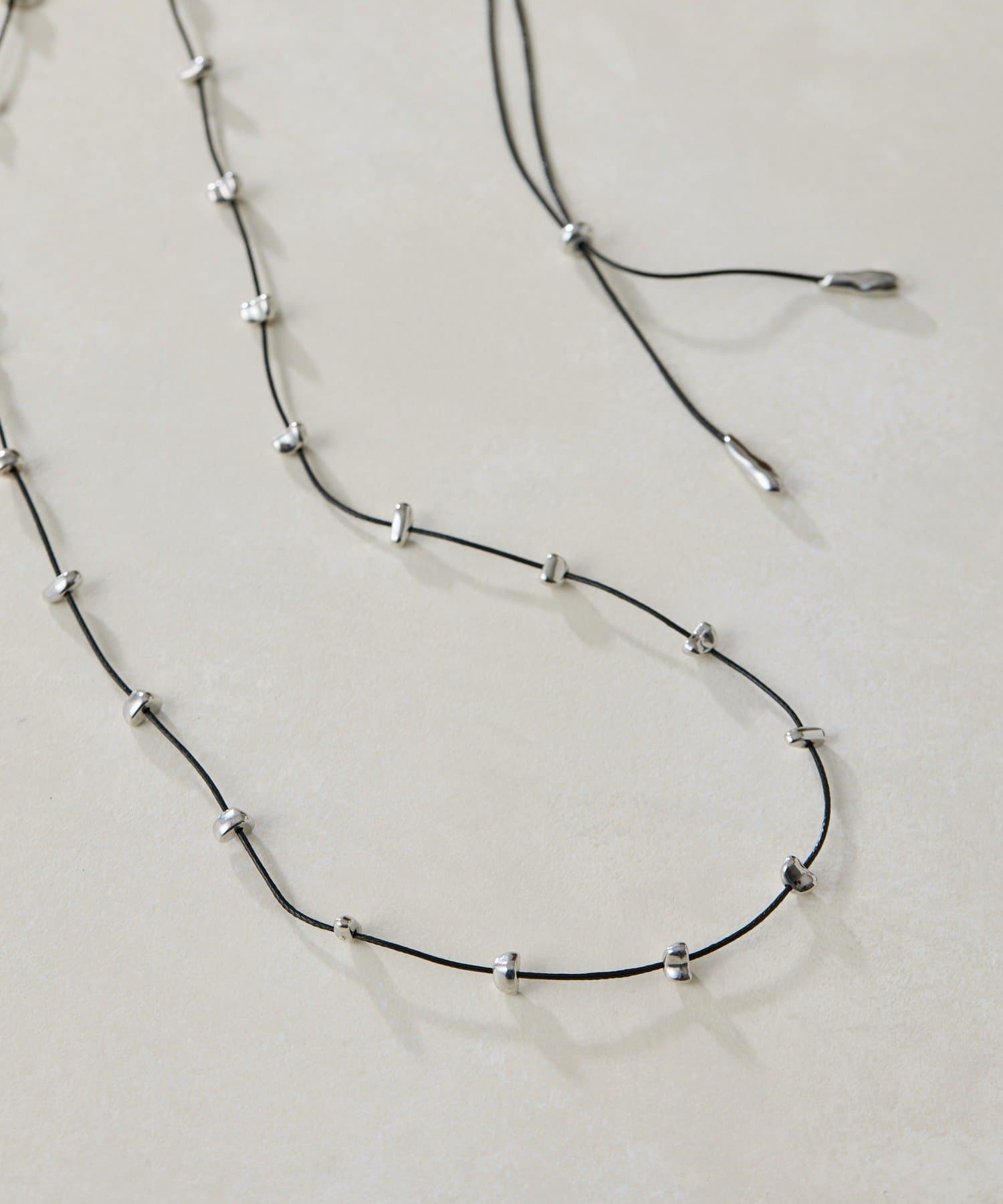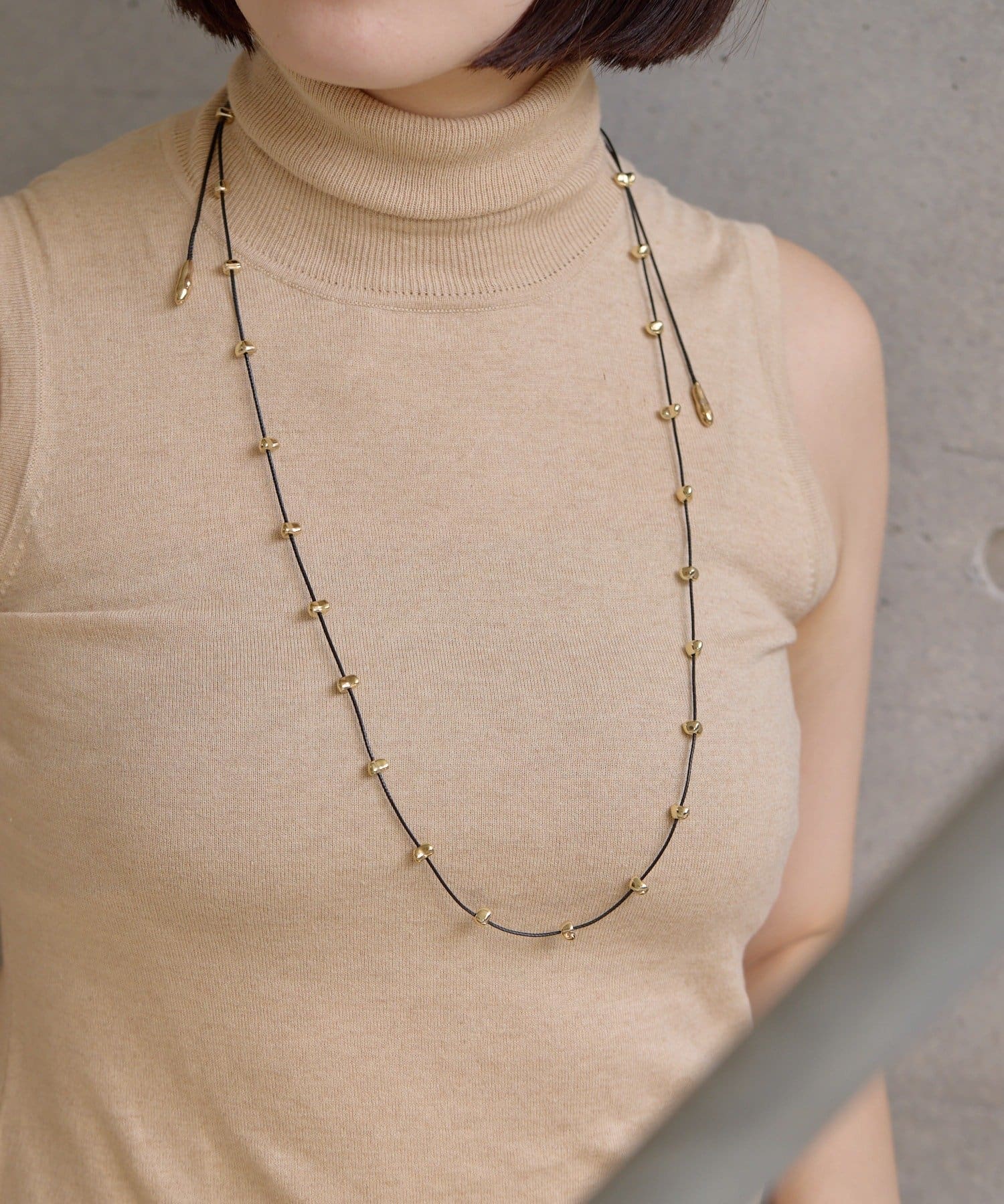 ・ポリエステルのコード紐にメタルパーツが等間隔に配置されたロングネックレス