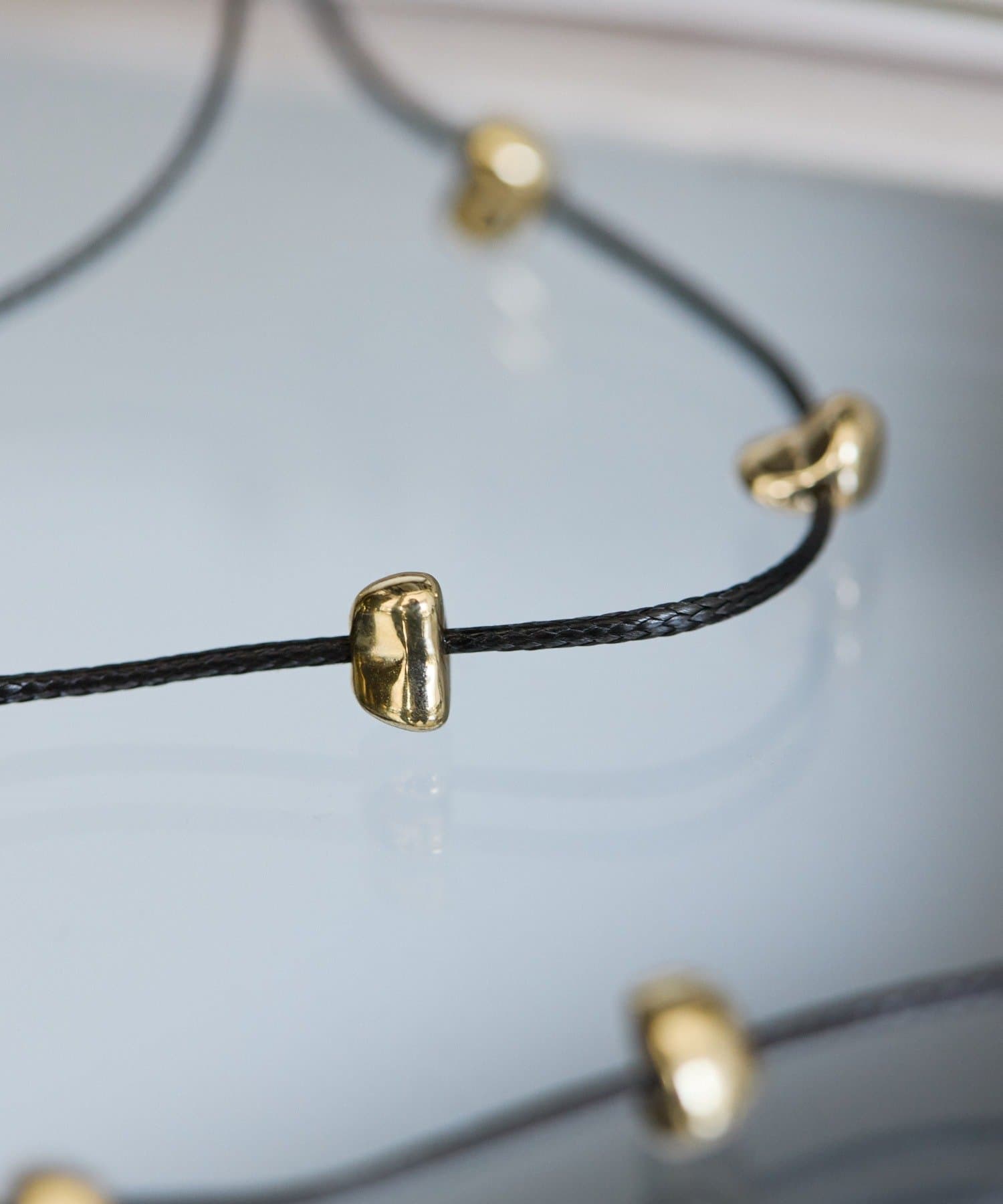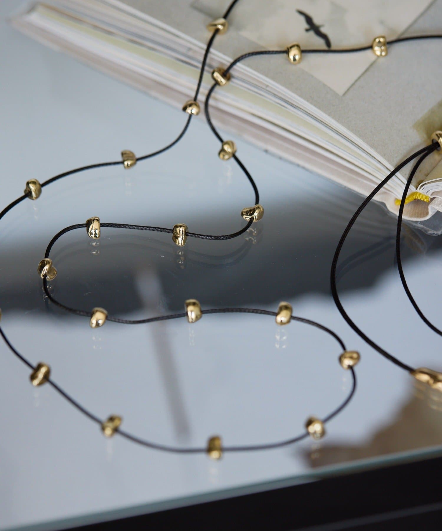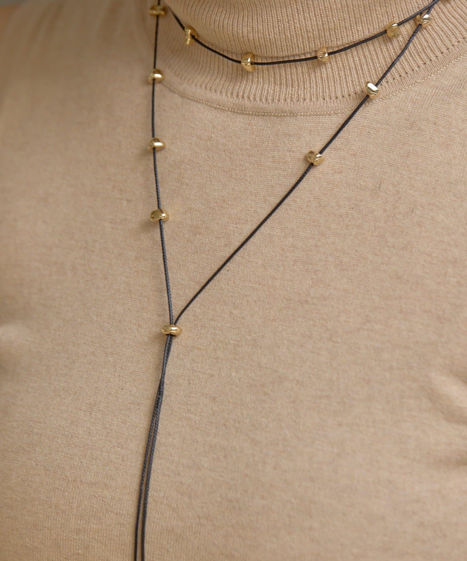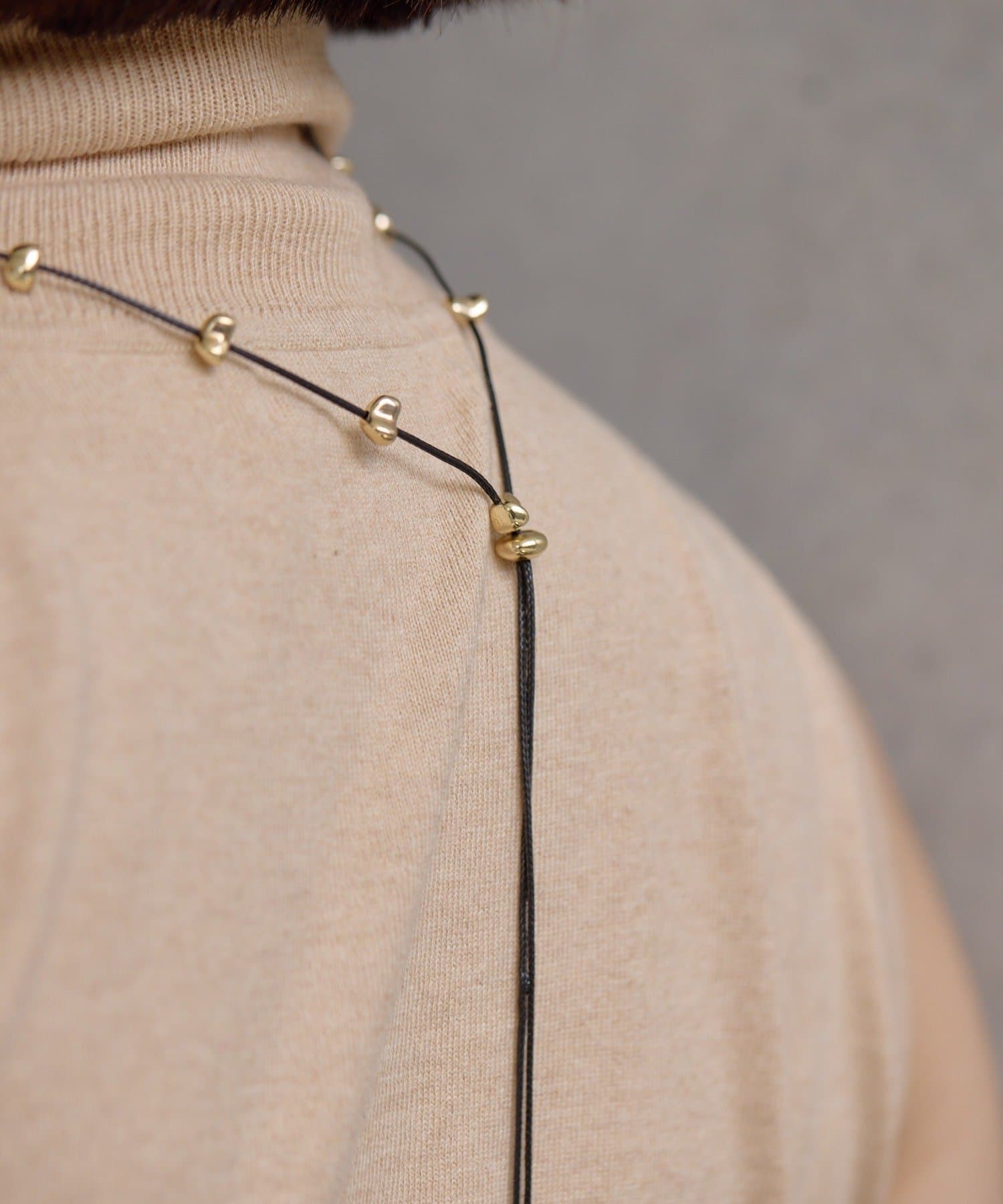 ・ポリエステルのコード紐にメタルパーツが等間隔に配置されたロングネックレス