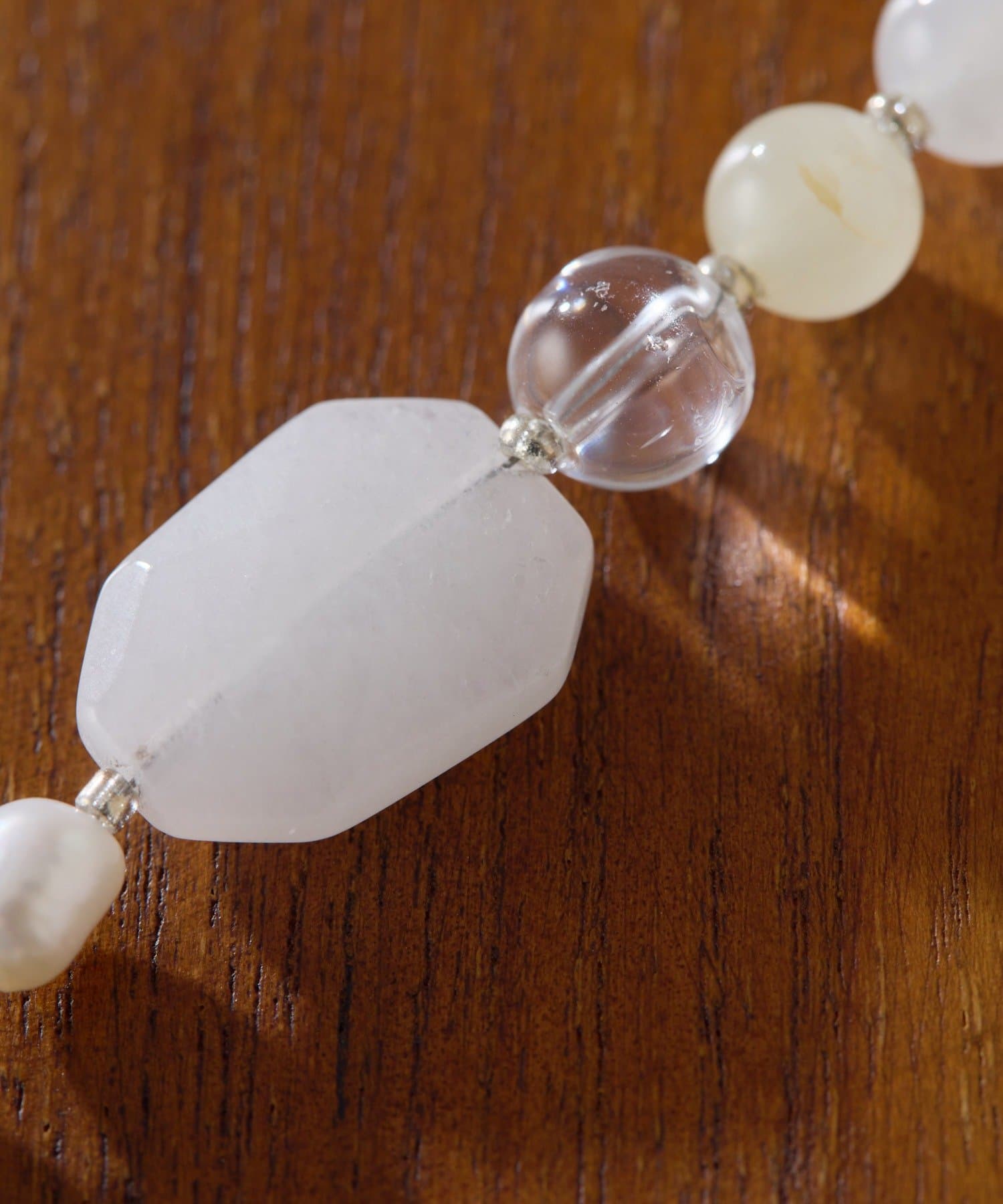 ・天然石の自然な模様や柄が美しく、ナチュラルなパールの形や輝きもポイント