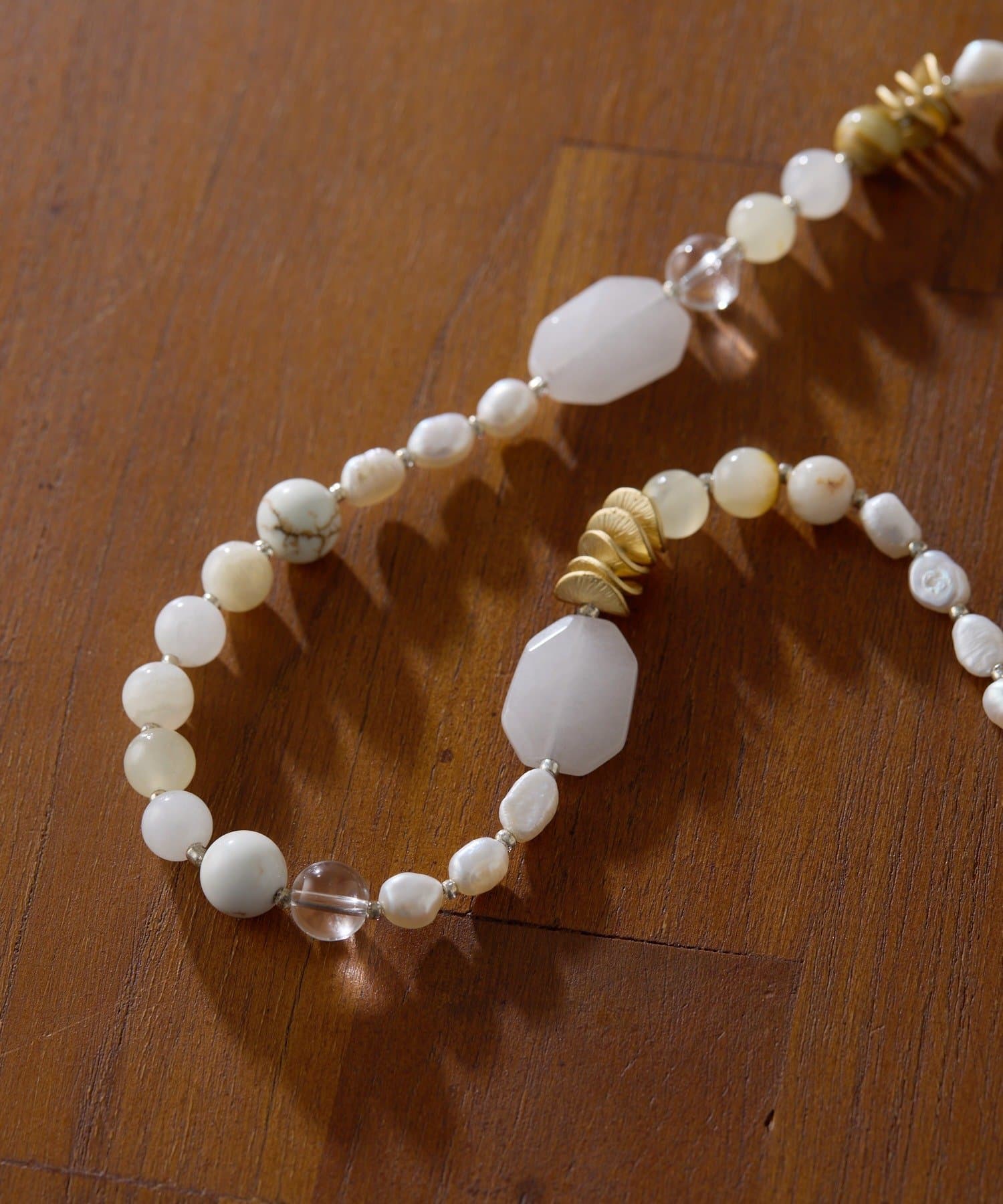 ・天然石と淡水パールを組み合わせたネックレスは2色展開