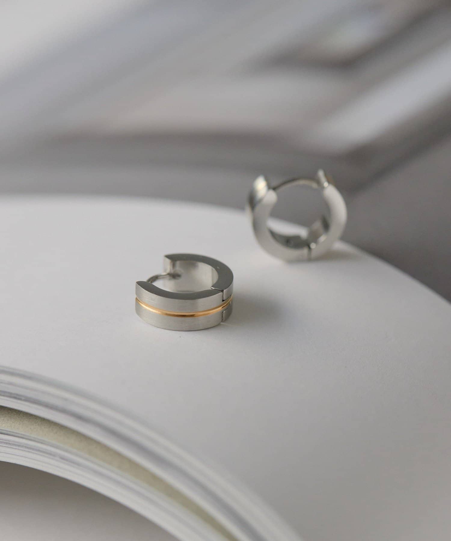 ゴールドラインがアクセントになった、シンプルながらも目を惹くピアス