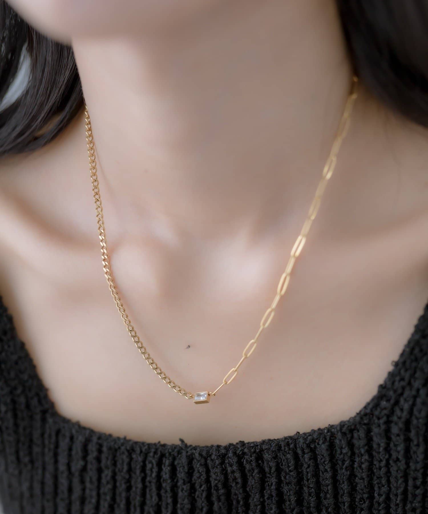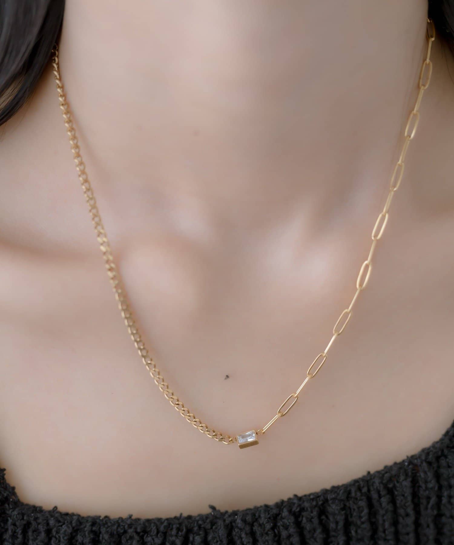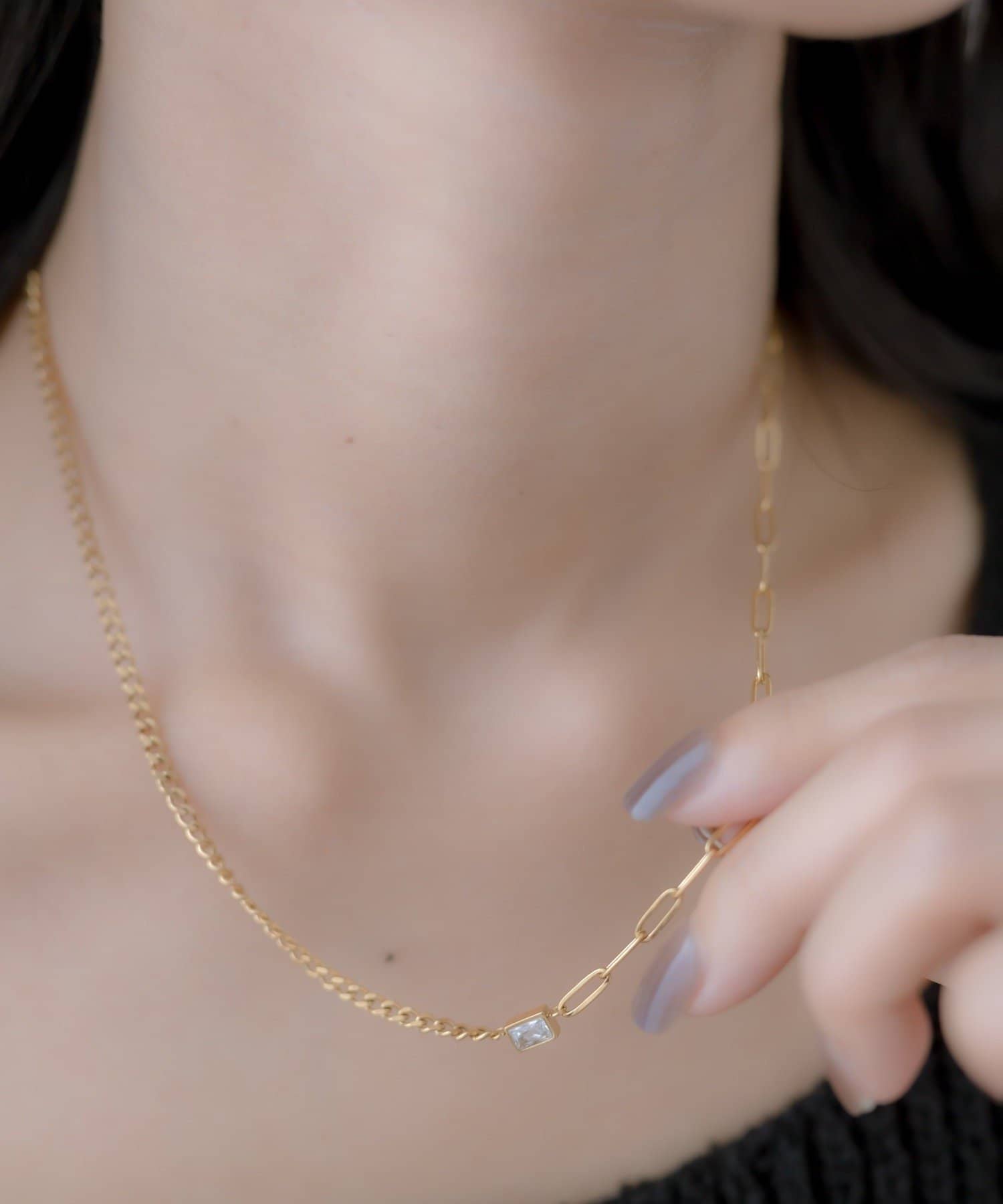 一見シンプルなチェーンネックレスですが、そこにジルコニアが加わることで一気に上品に。