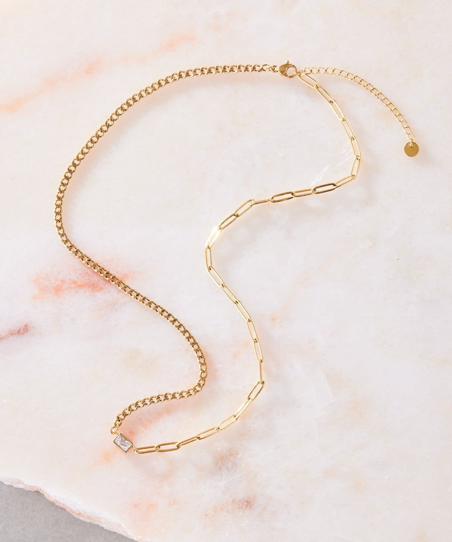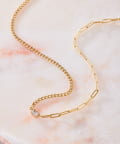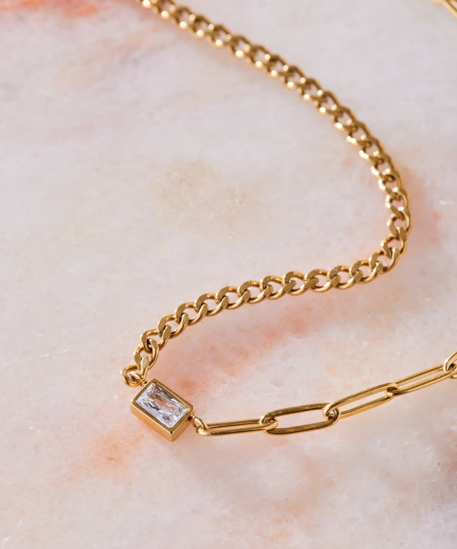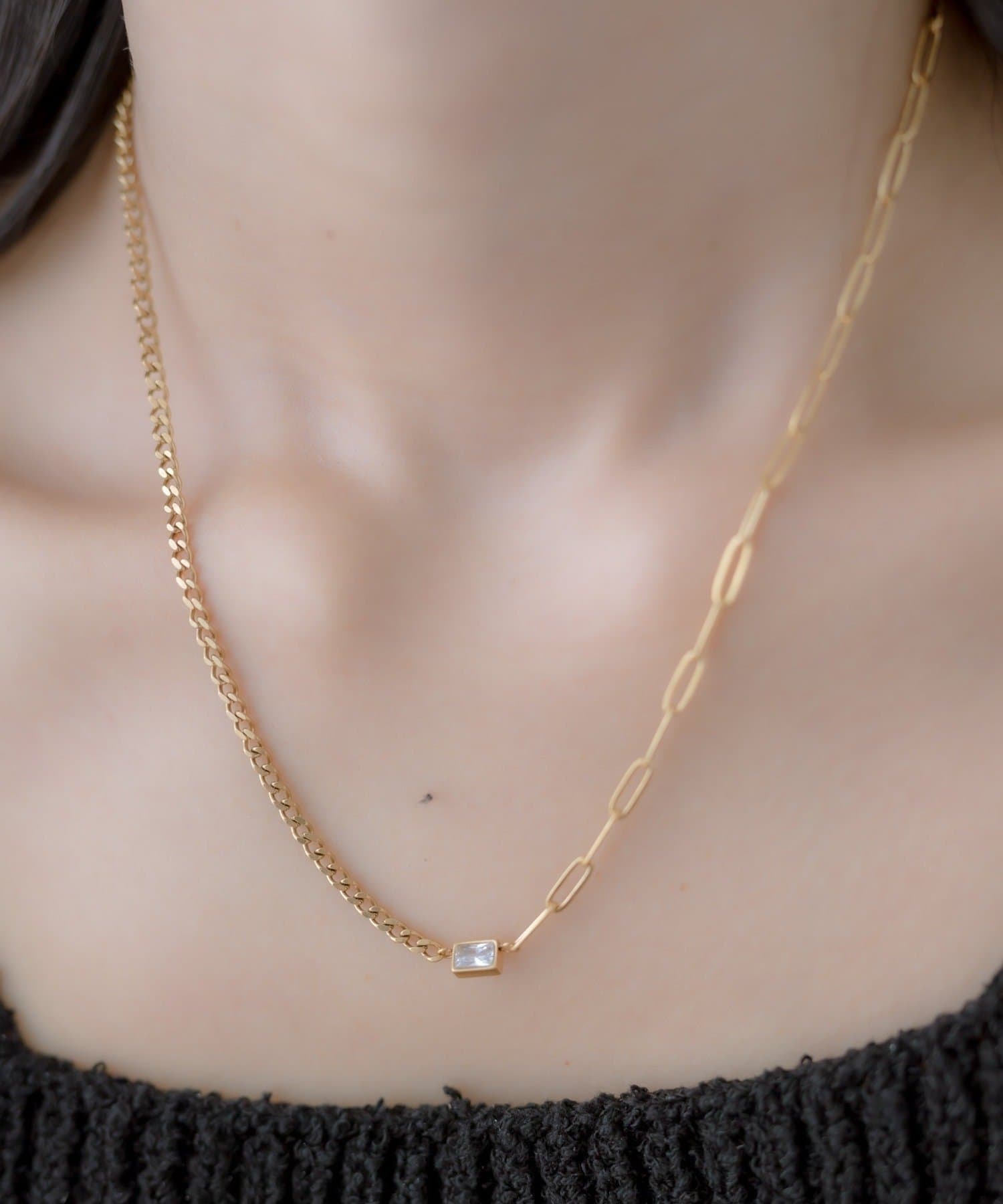 一見シンプルなチェーンネックレスですが、そこにジルコニアが加わることで一気に上品に。