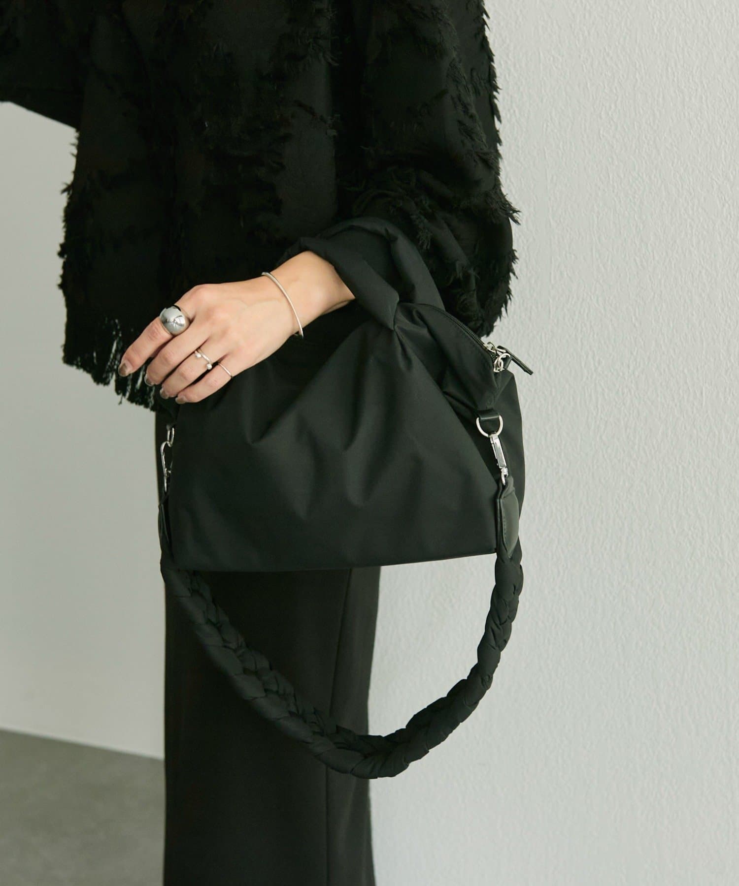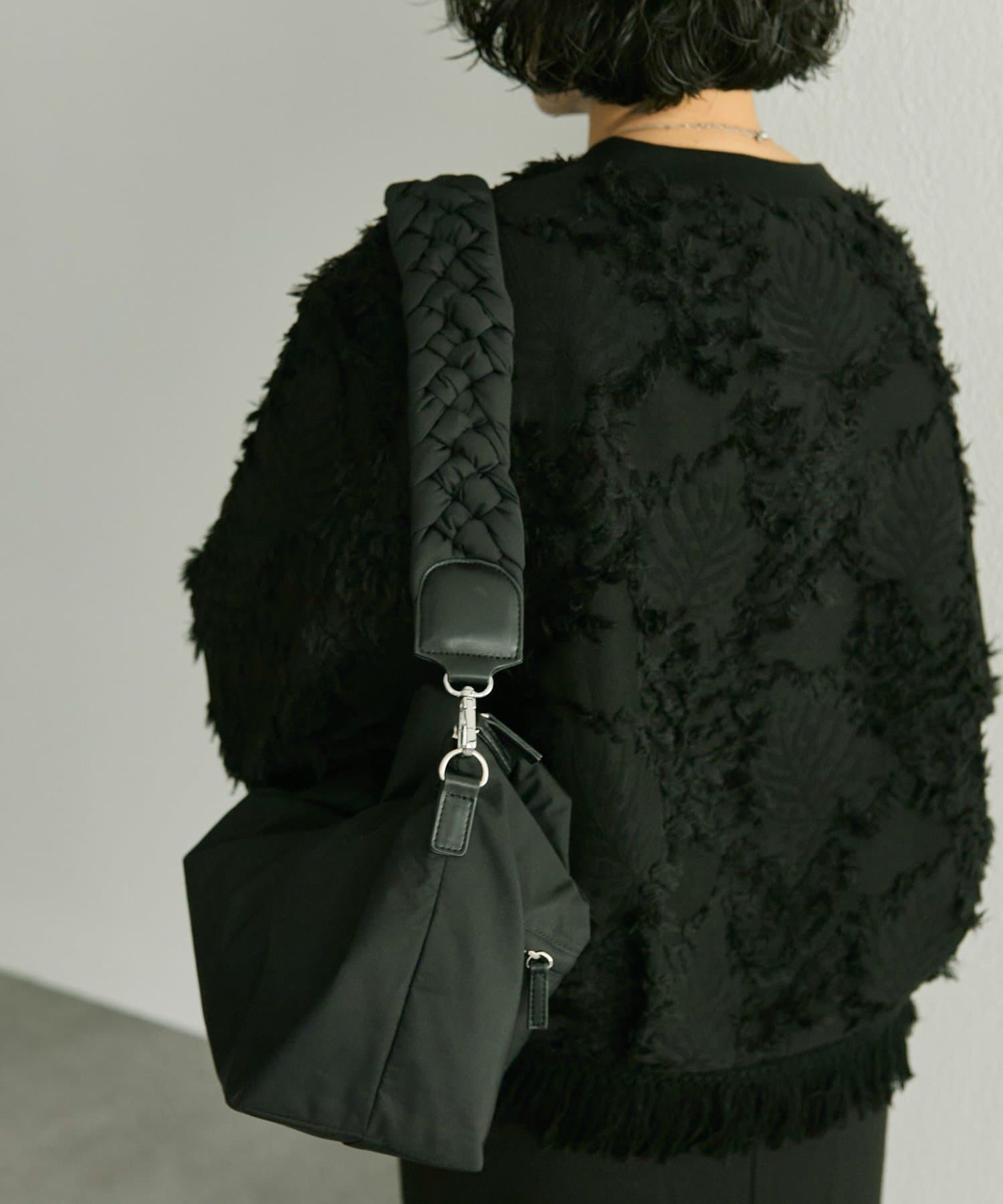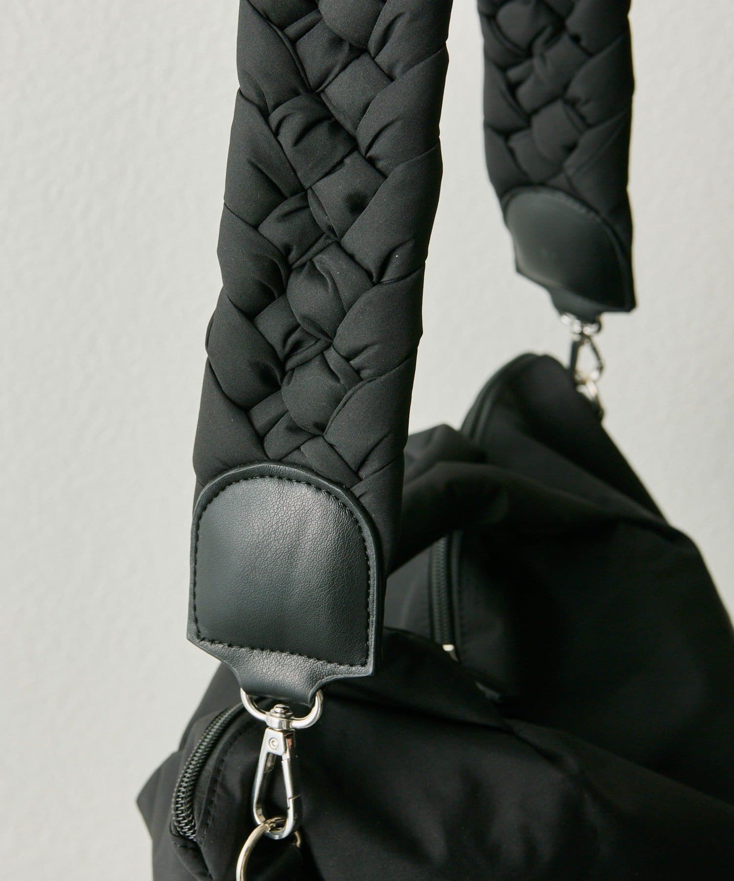 存在感のある編み込みショルダーベルトはコーディネートのアクセントにぴったり。