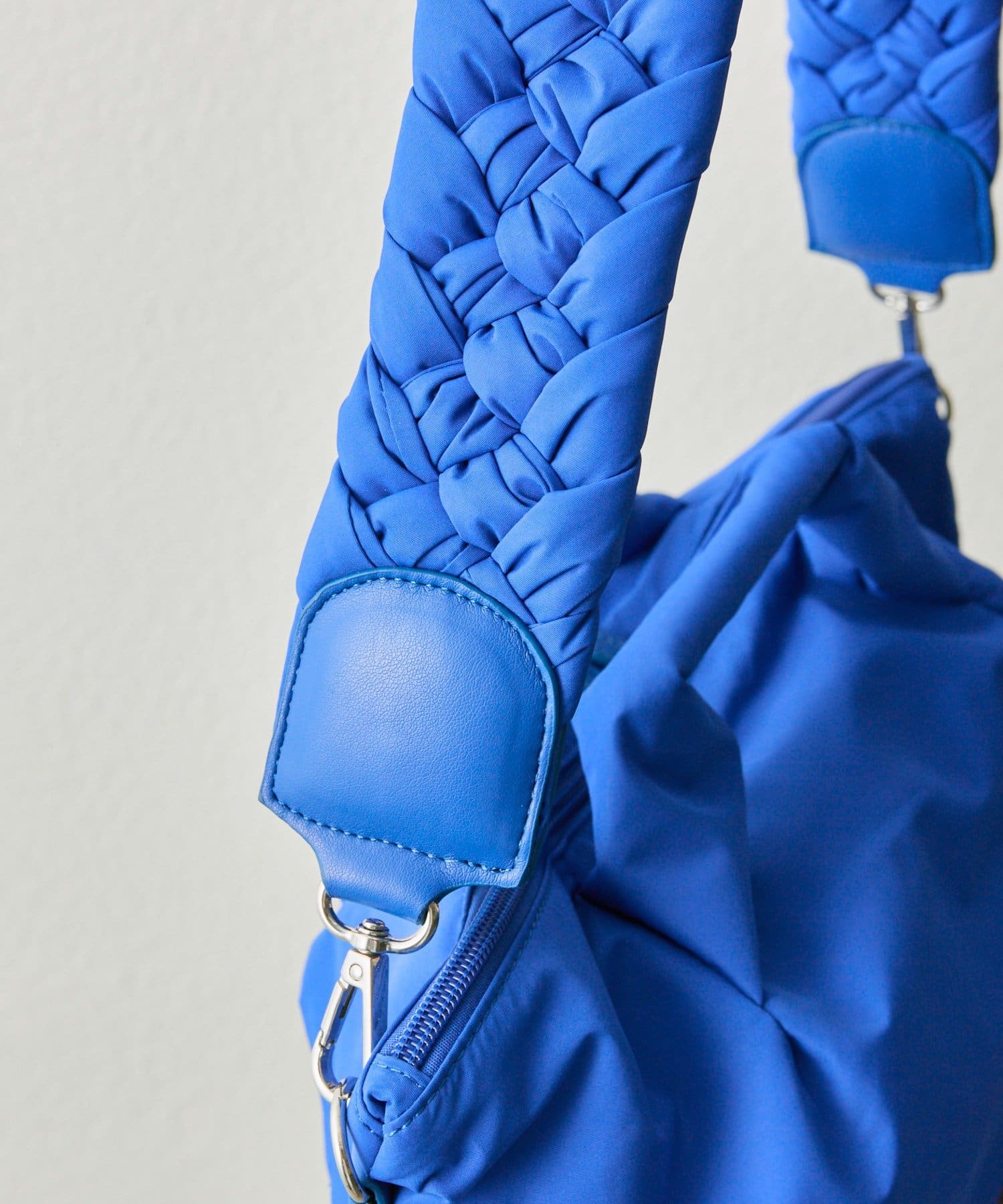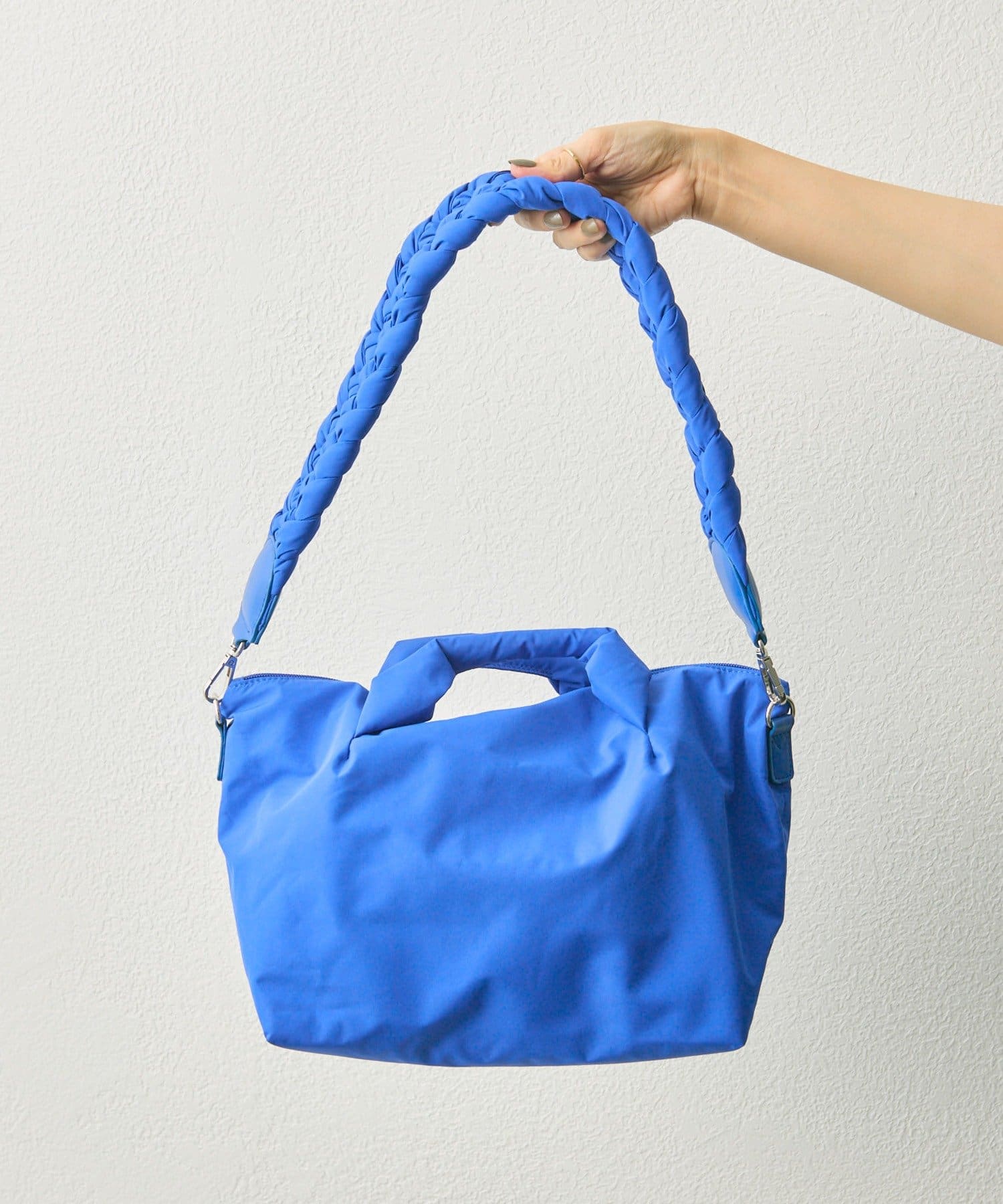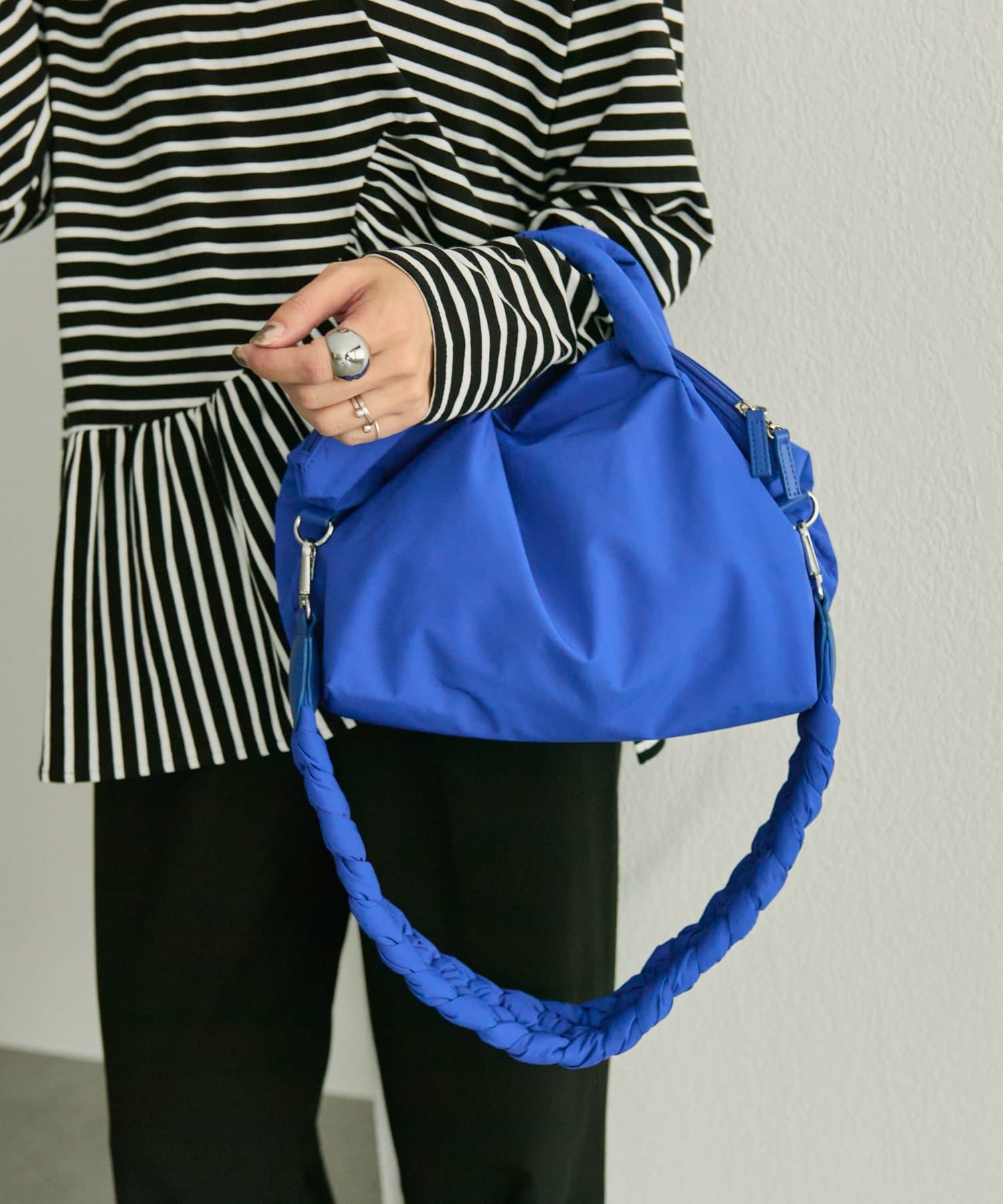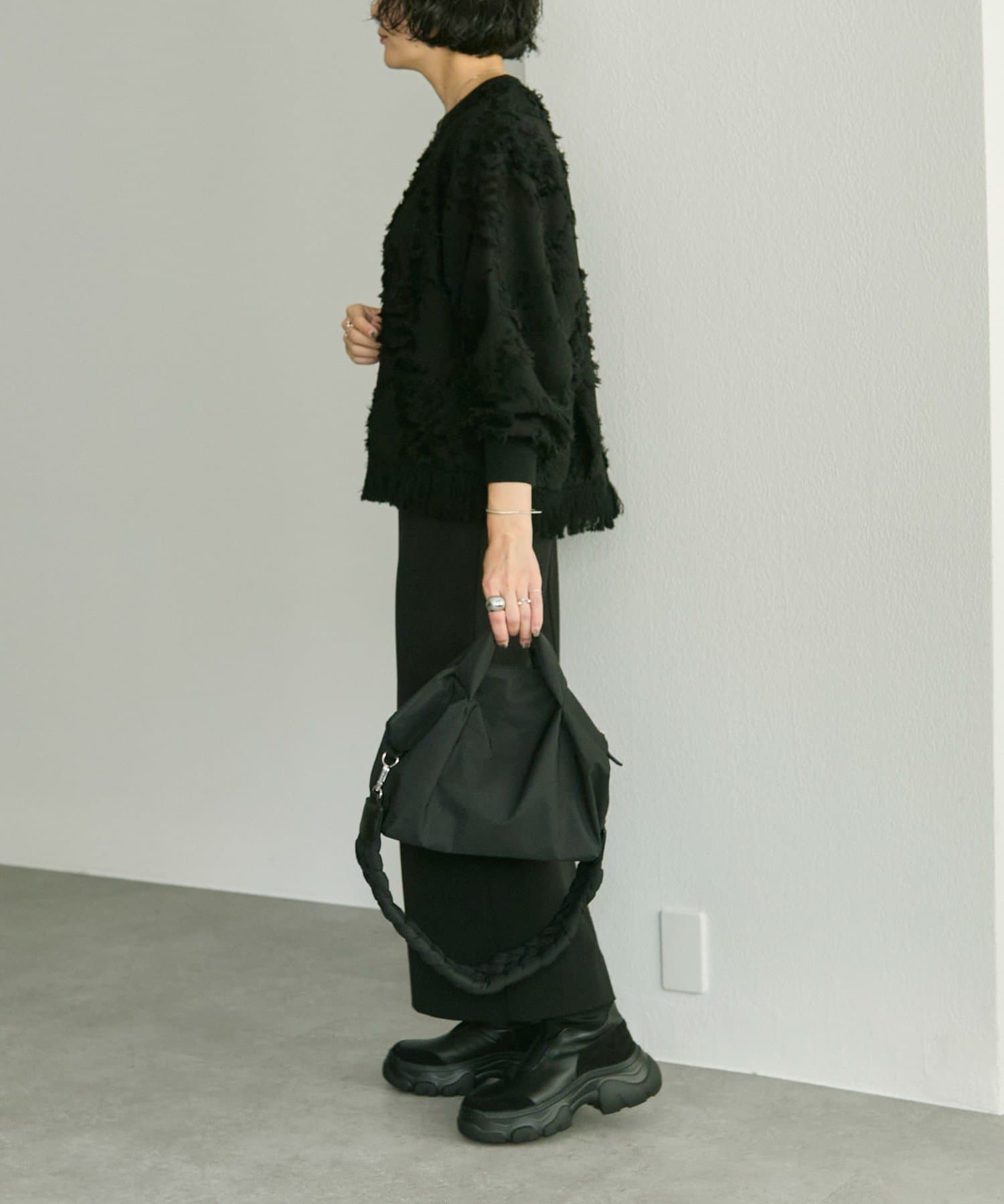 存在感のある編み込みショルダーベルトはコーディネートのアクセントにぴったり。
