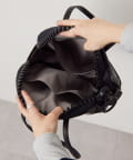 荷物を入れるほどに丸みが強調され、愛らしいフォルムがコーディネートのアクセントになります。