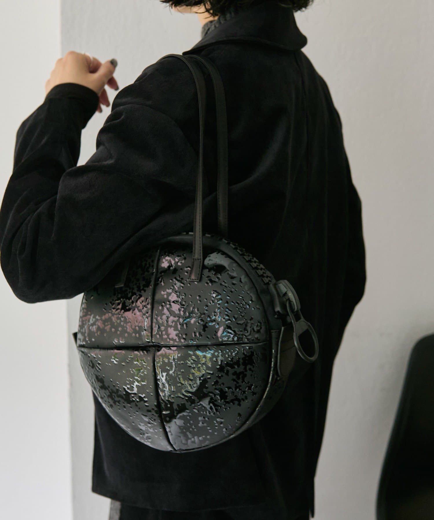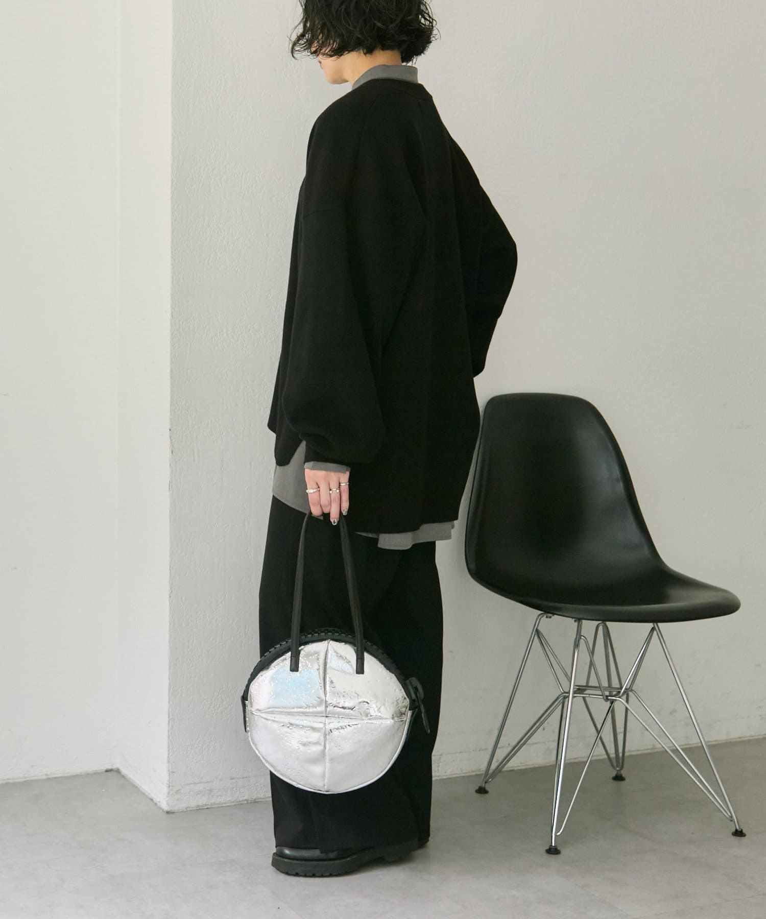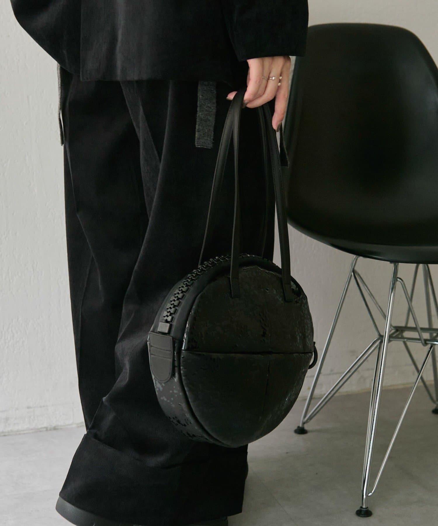 シンプルで洗練されたフォルムと、特徴的な円形シルエットが魅力のレザーバッグです。