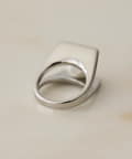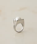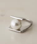 ・板状リングで大きなパールを挟み込んだ、現代アート的要素のあるリング