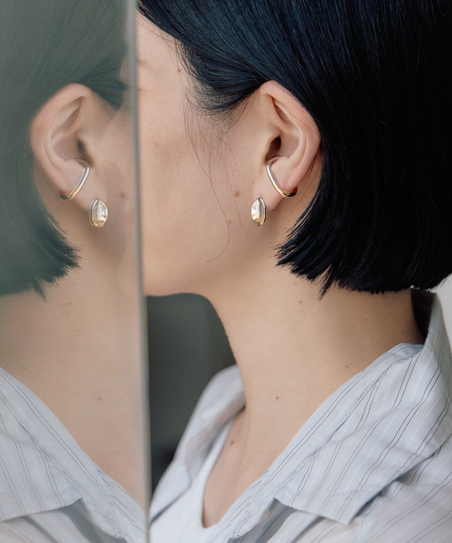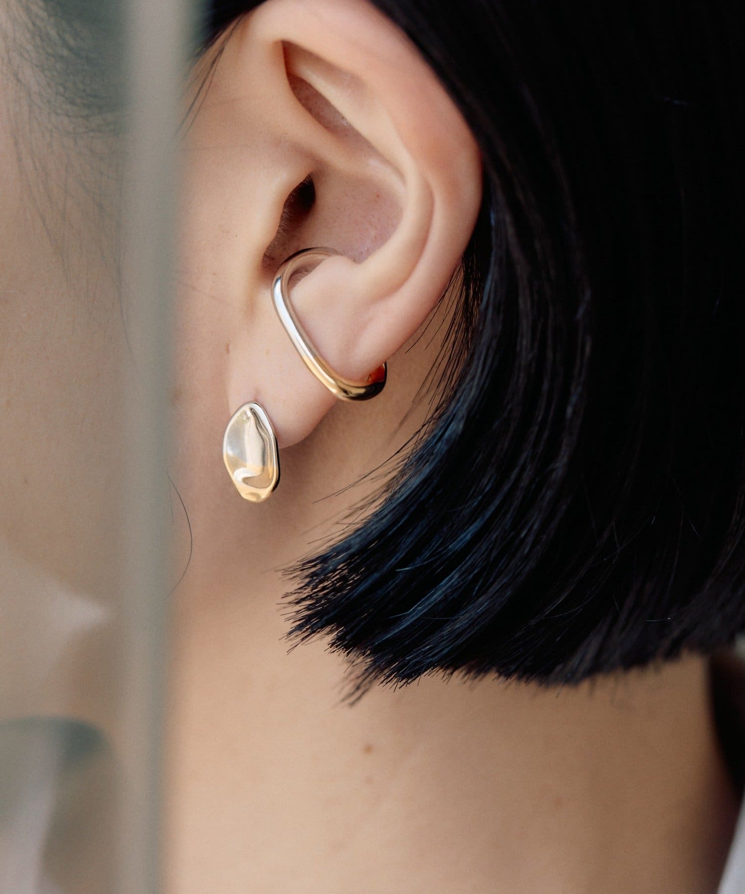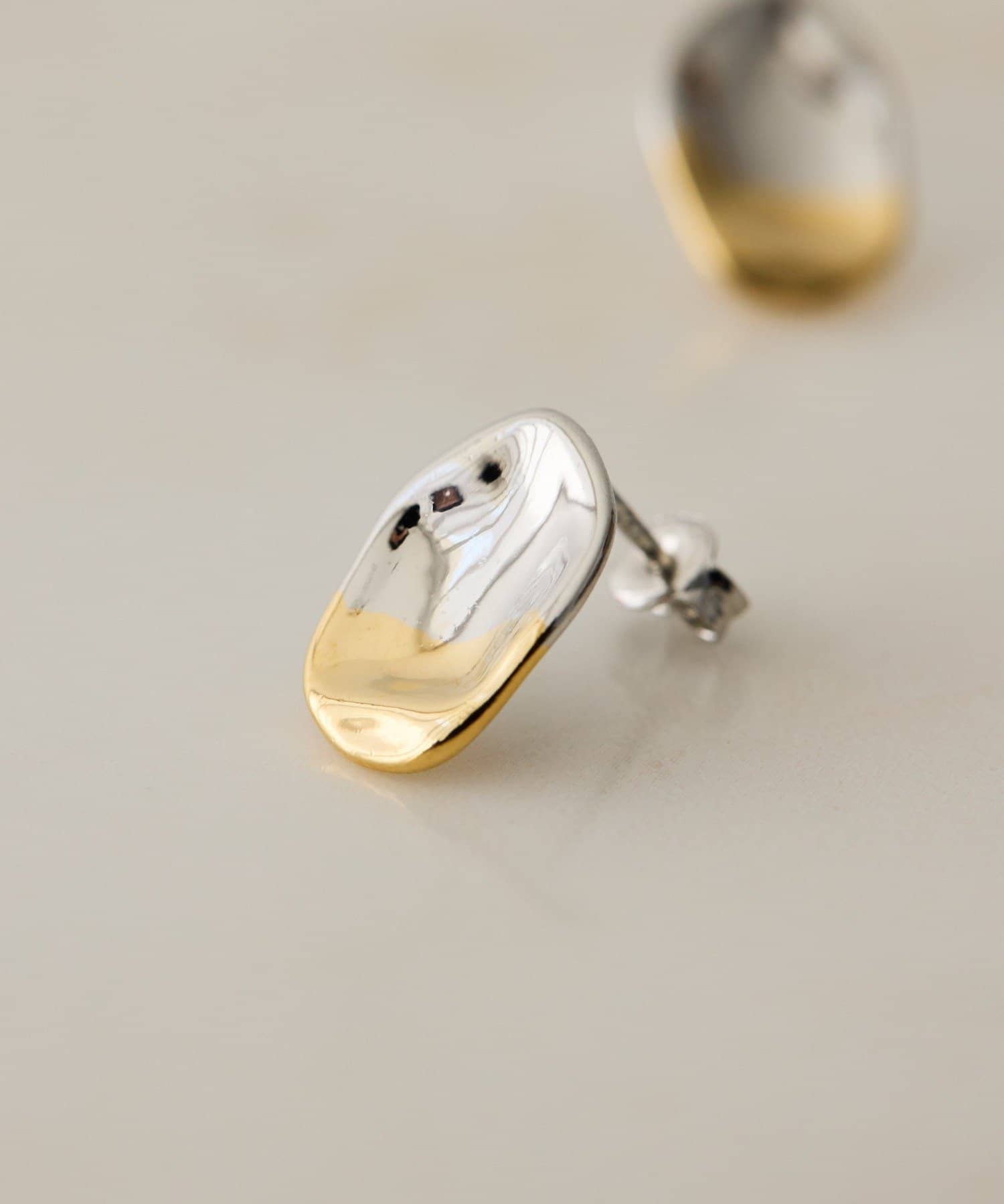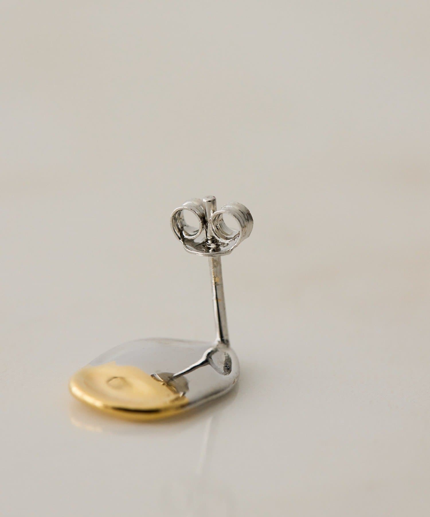耳元にさりげない輝きを添える、バイカラープチプレートピアス。