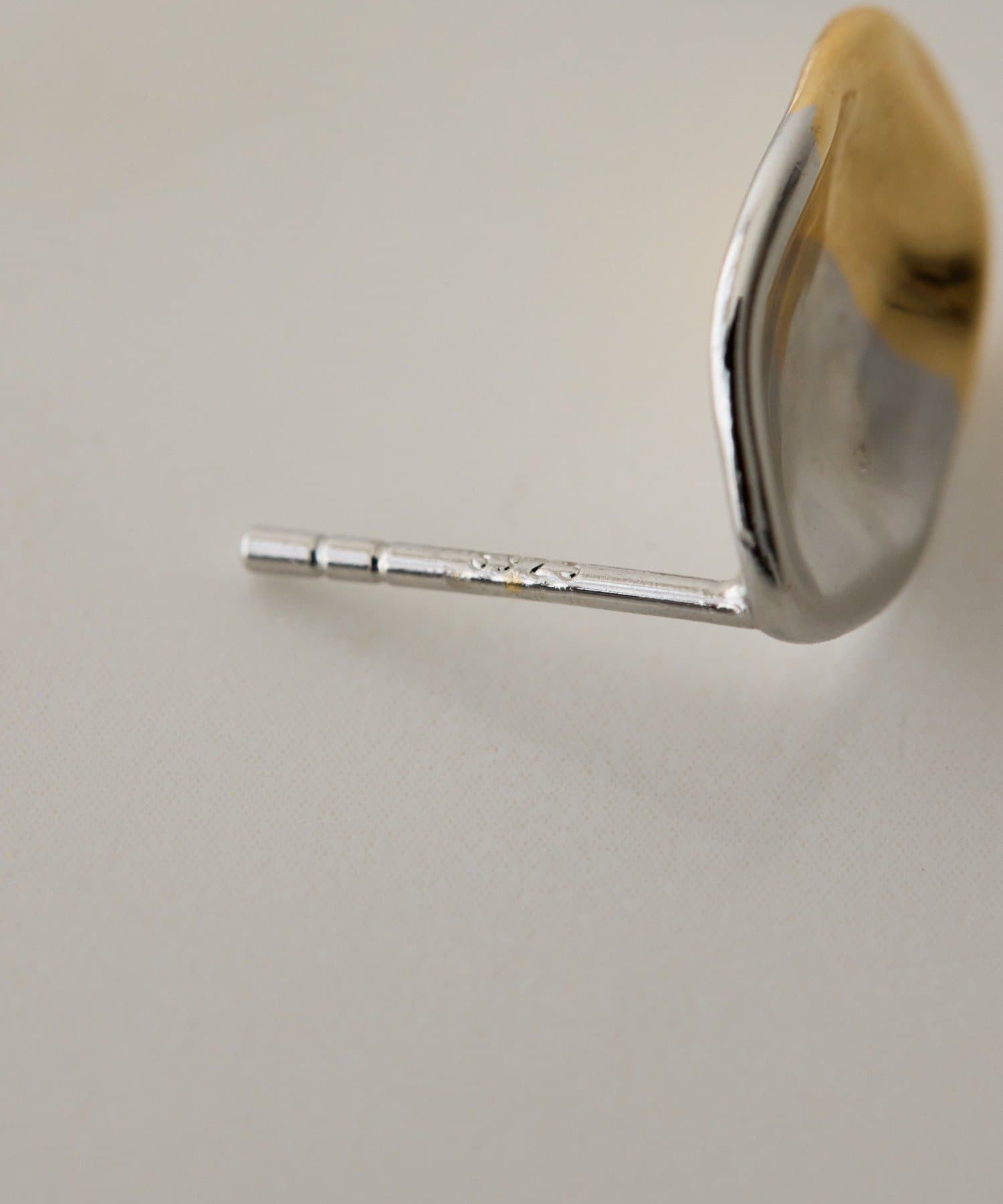・丸プレートを指でそっとつぶしたような、自然なテクスチャーのポストピアス