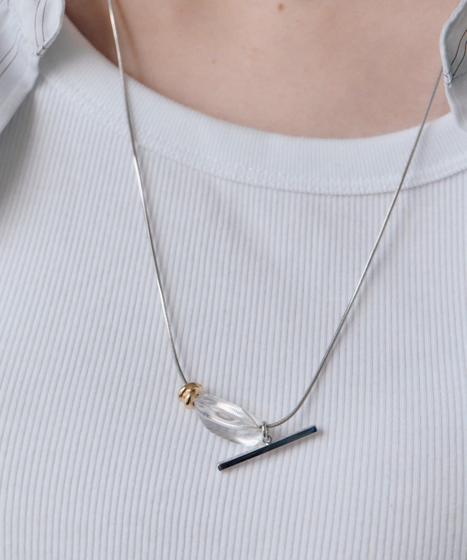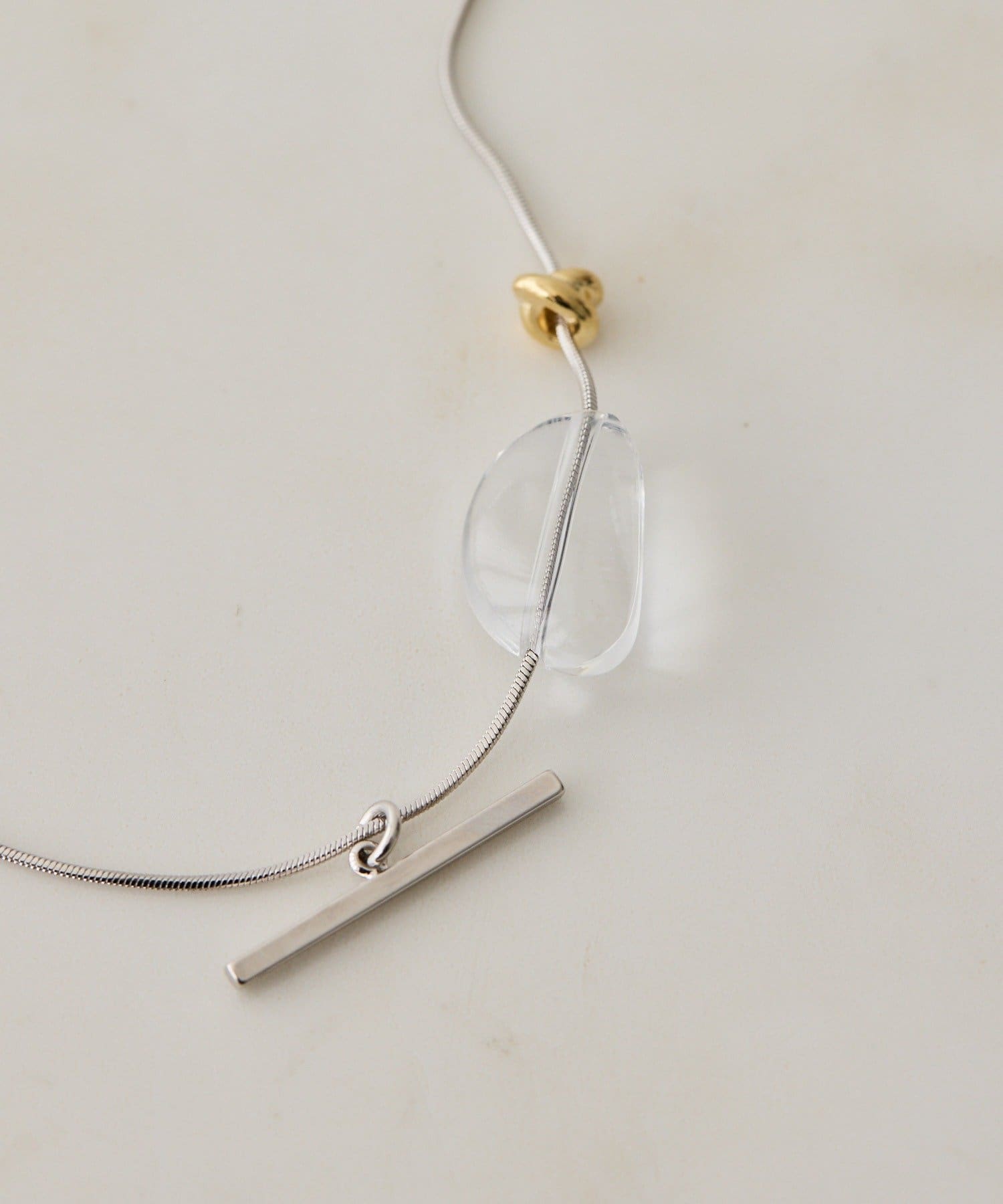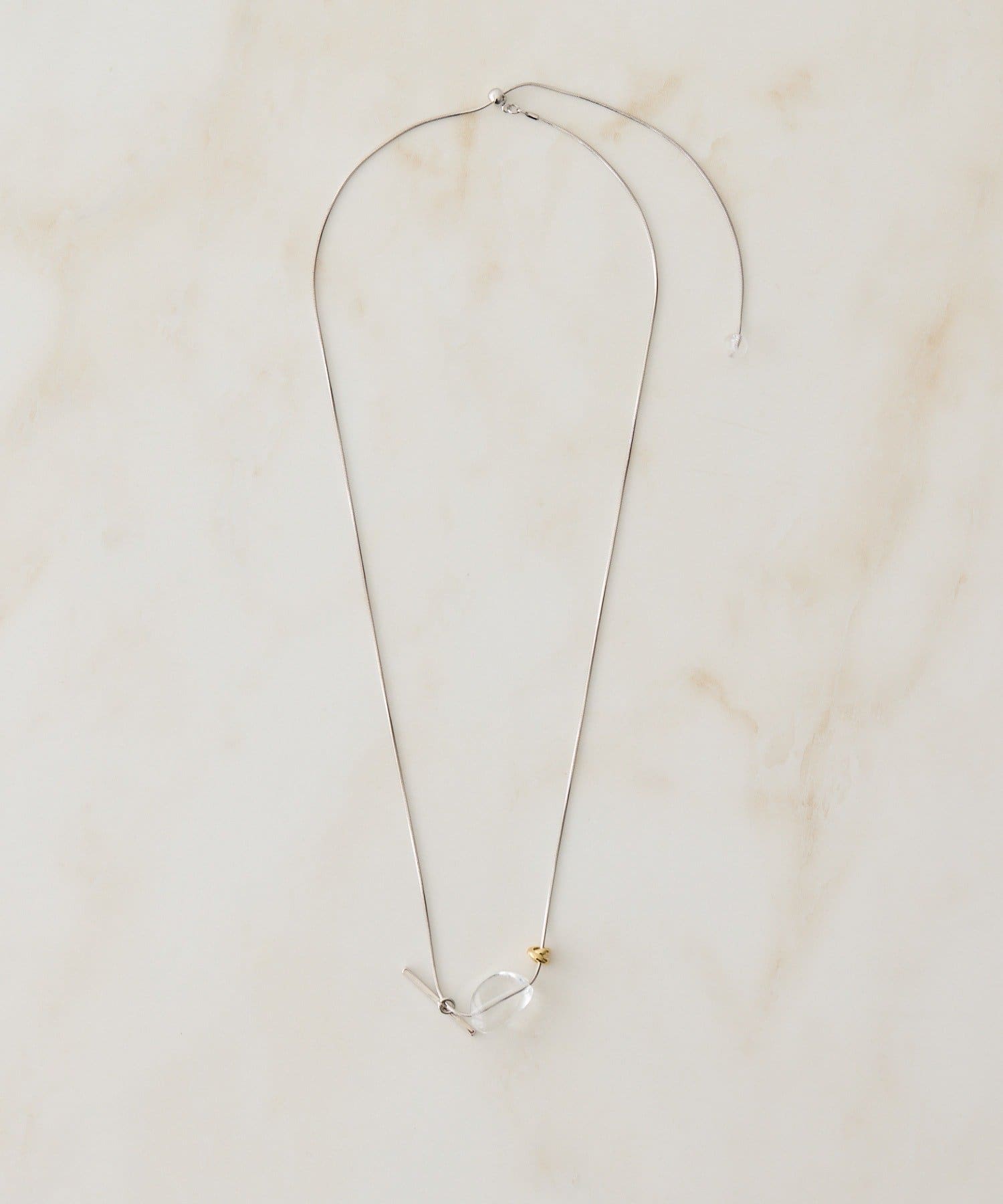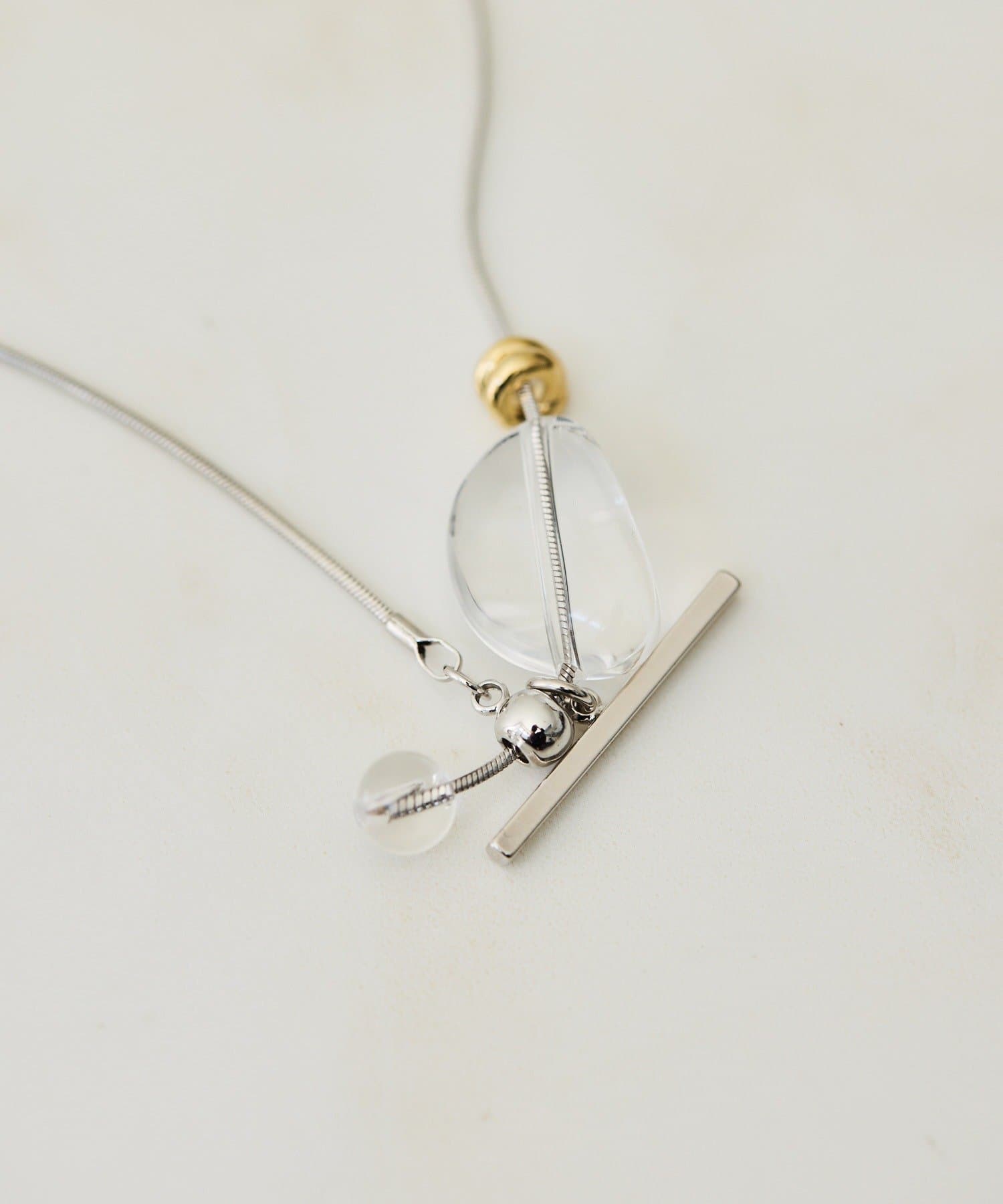 ・スライドパーツを動かせば、形が変えられるスタイル変化のネックレス