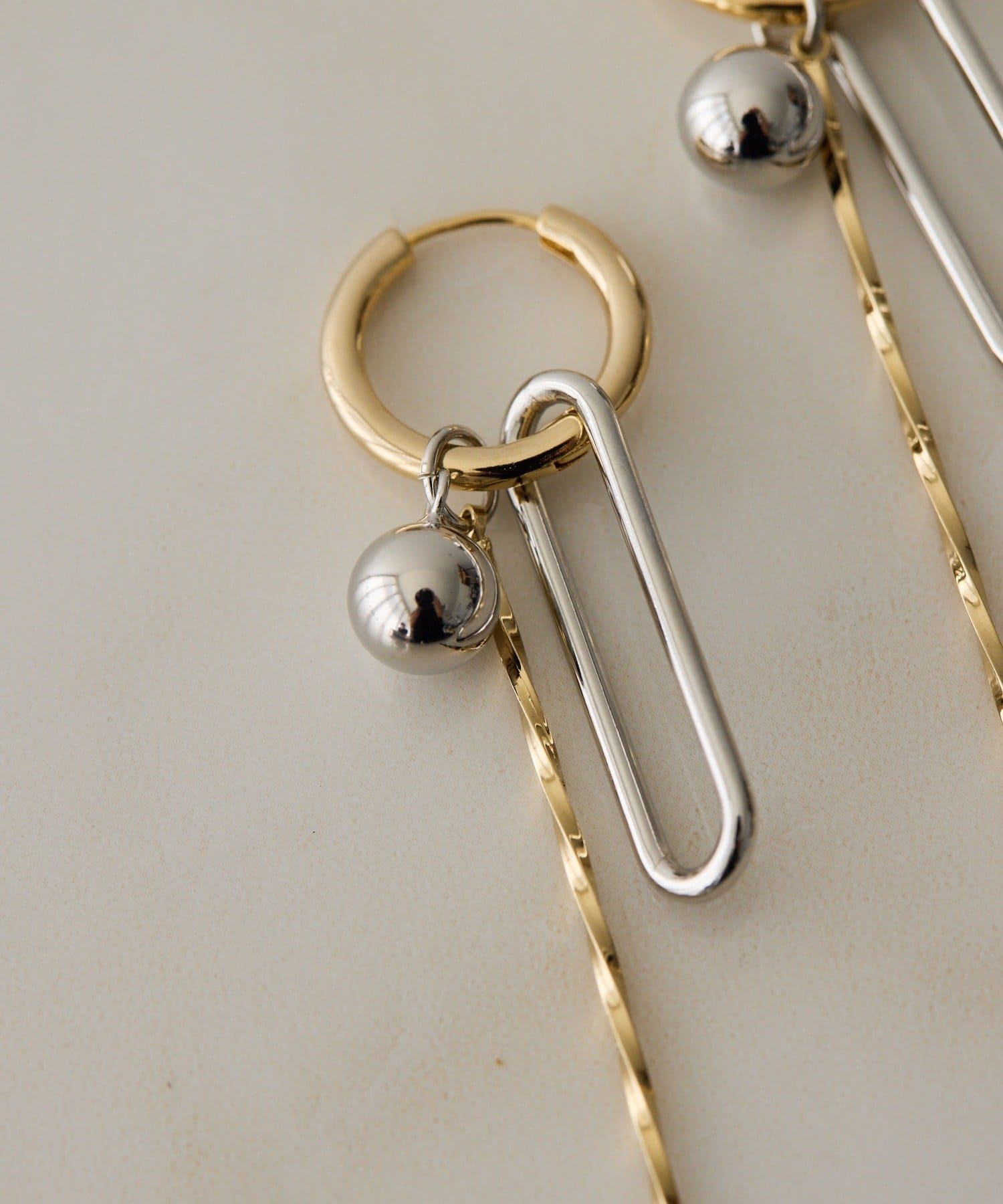 ・取り外しが可能なパーツを好きに組み合わせて、自分好みにカスタマイズできるフープピアス