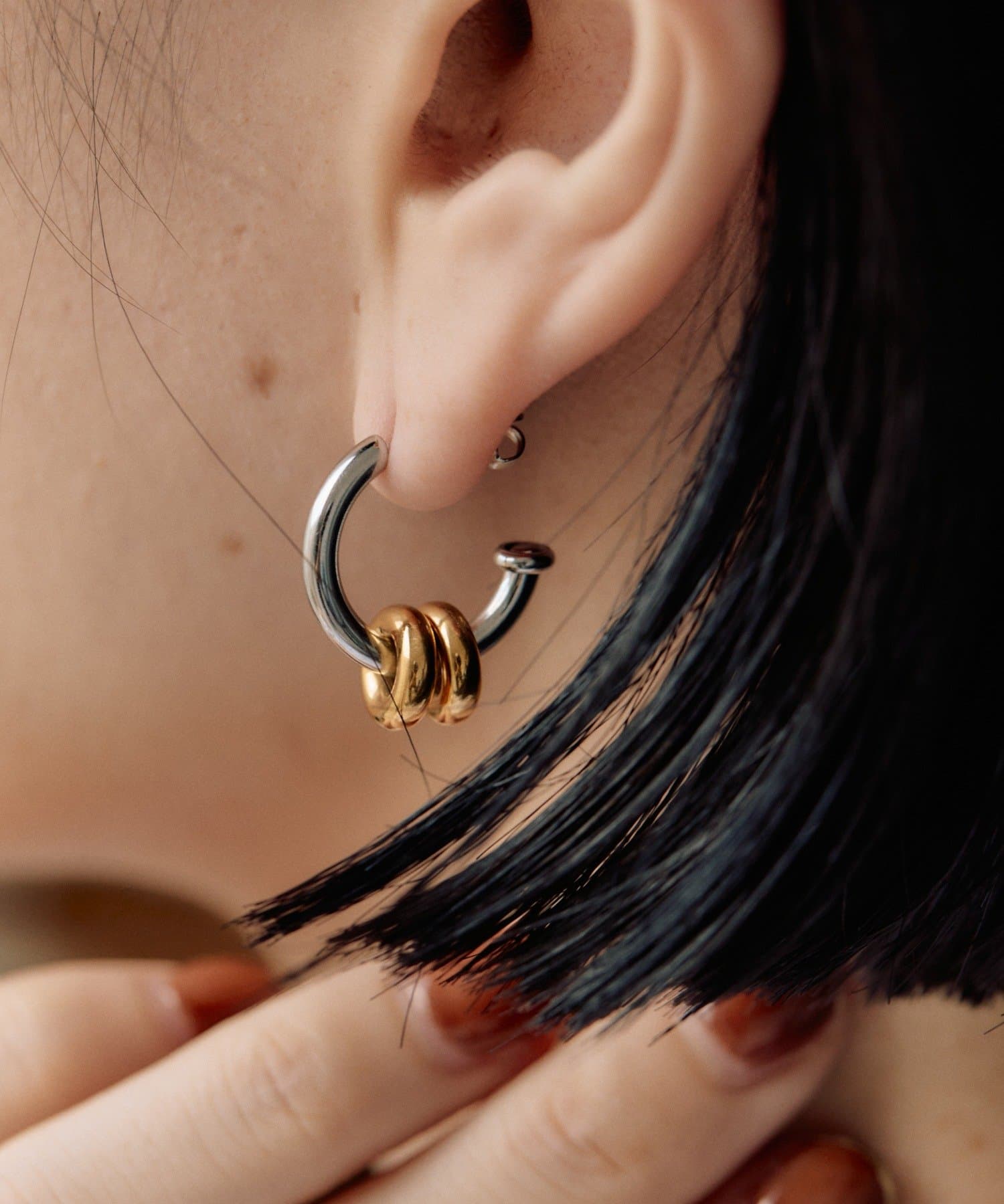 耳元に遊び心をプラス。バイカラーリング付きピアス