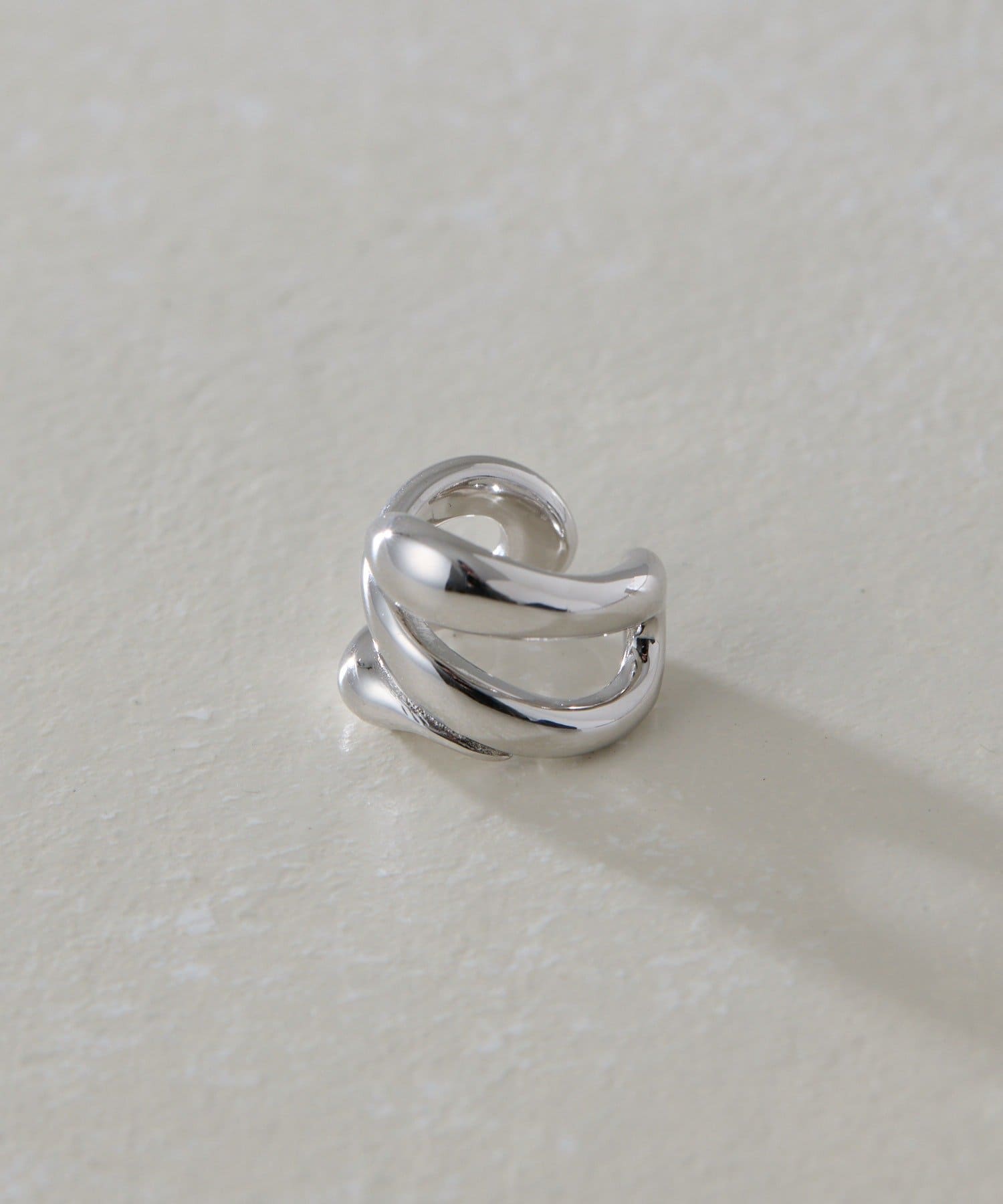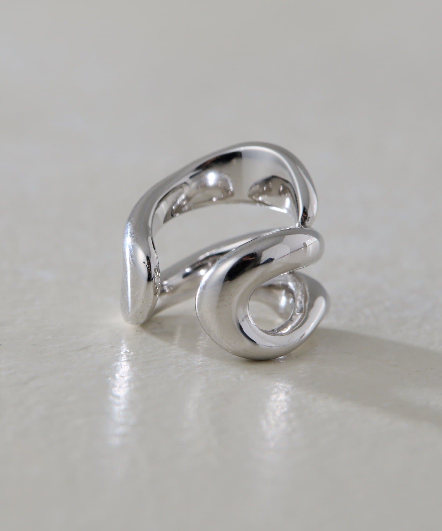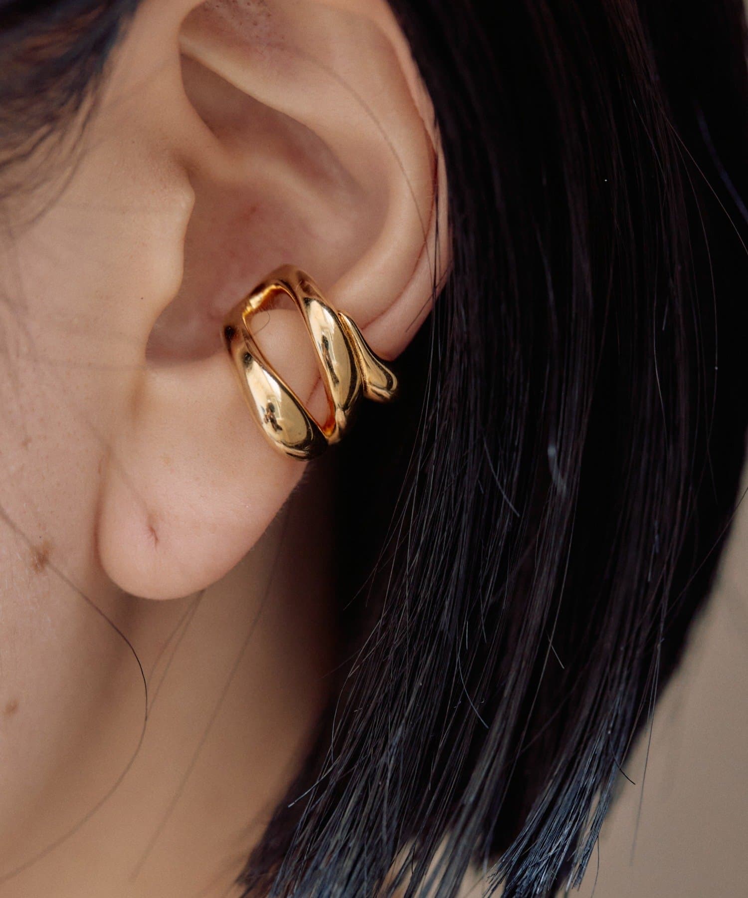 ・流れるようなやわらかなラインで形成された、ダブルフープのイヤーカフ