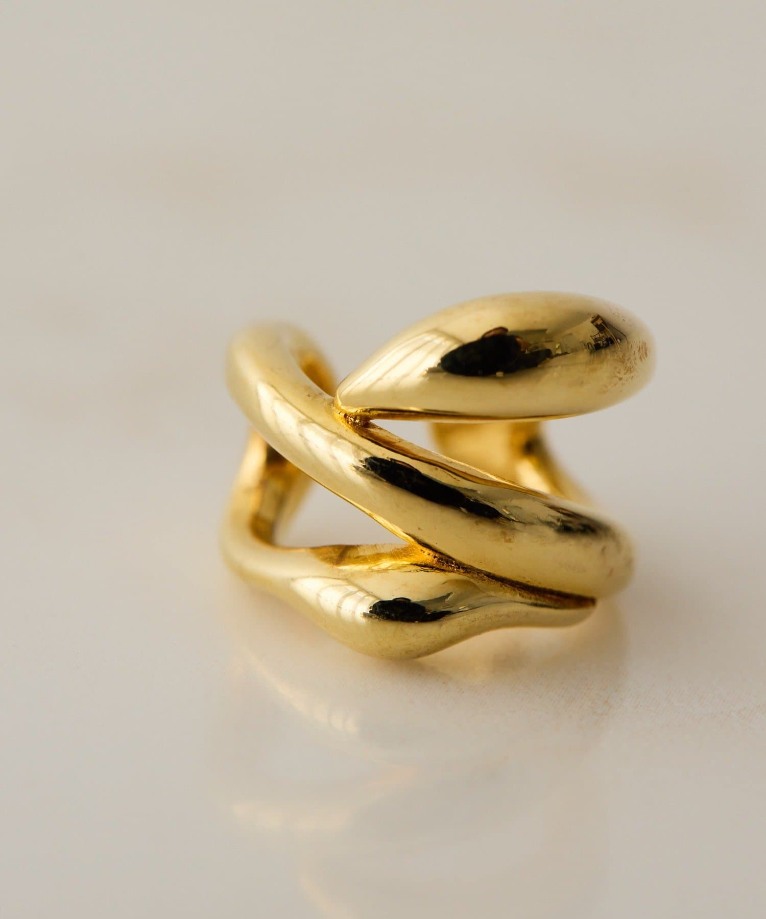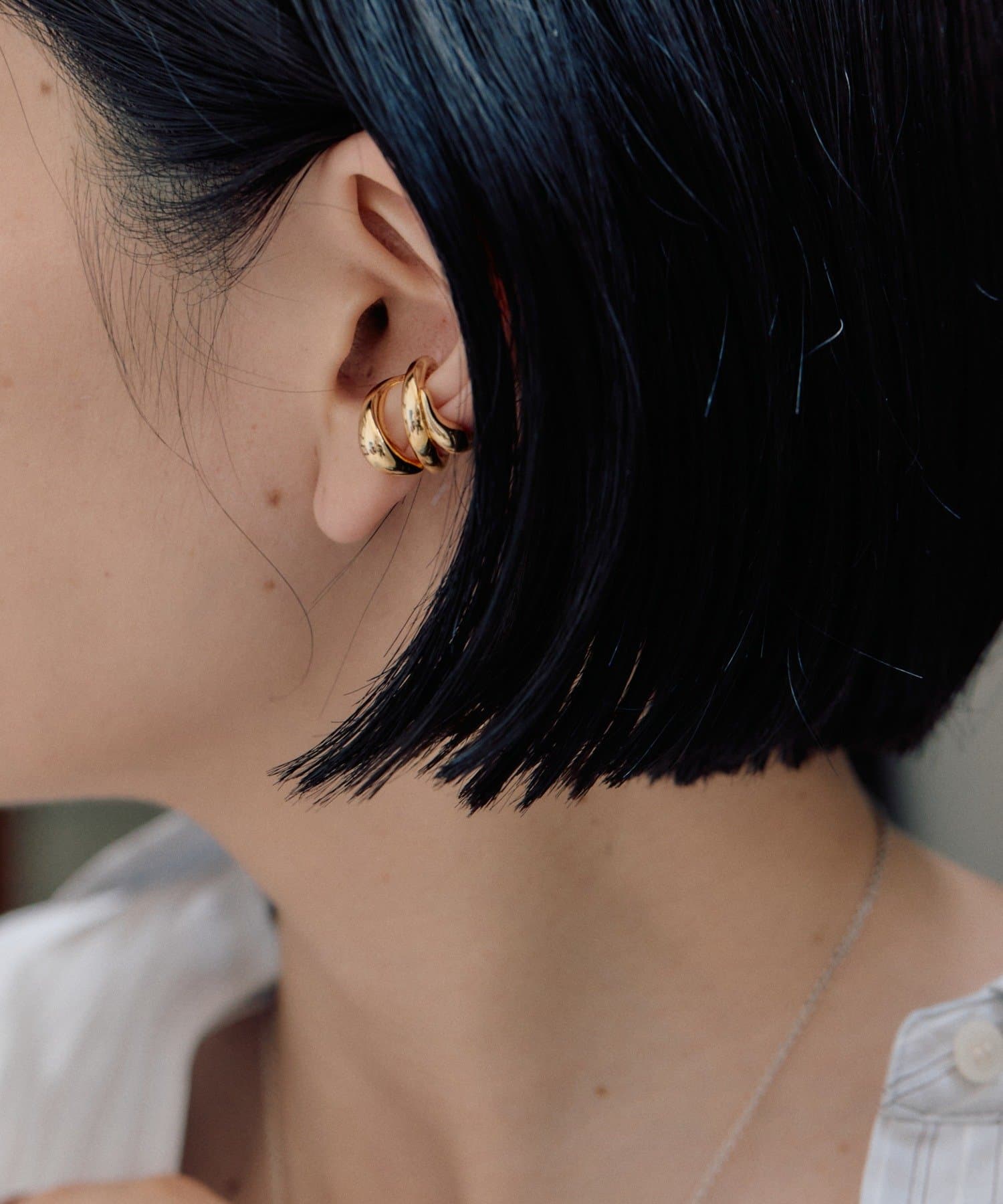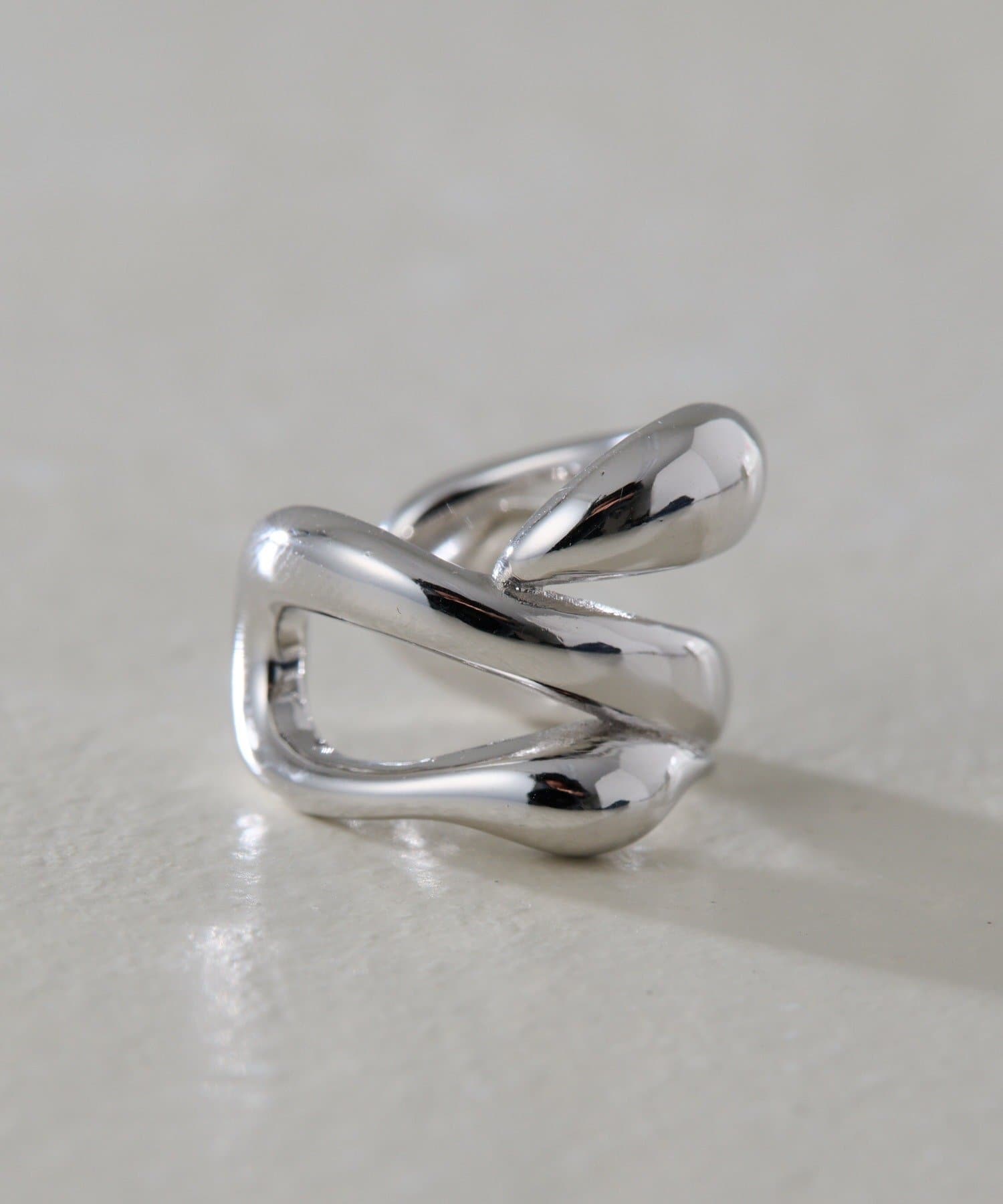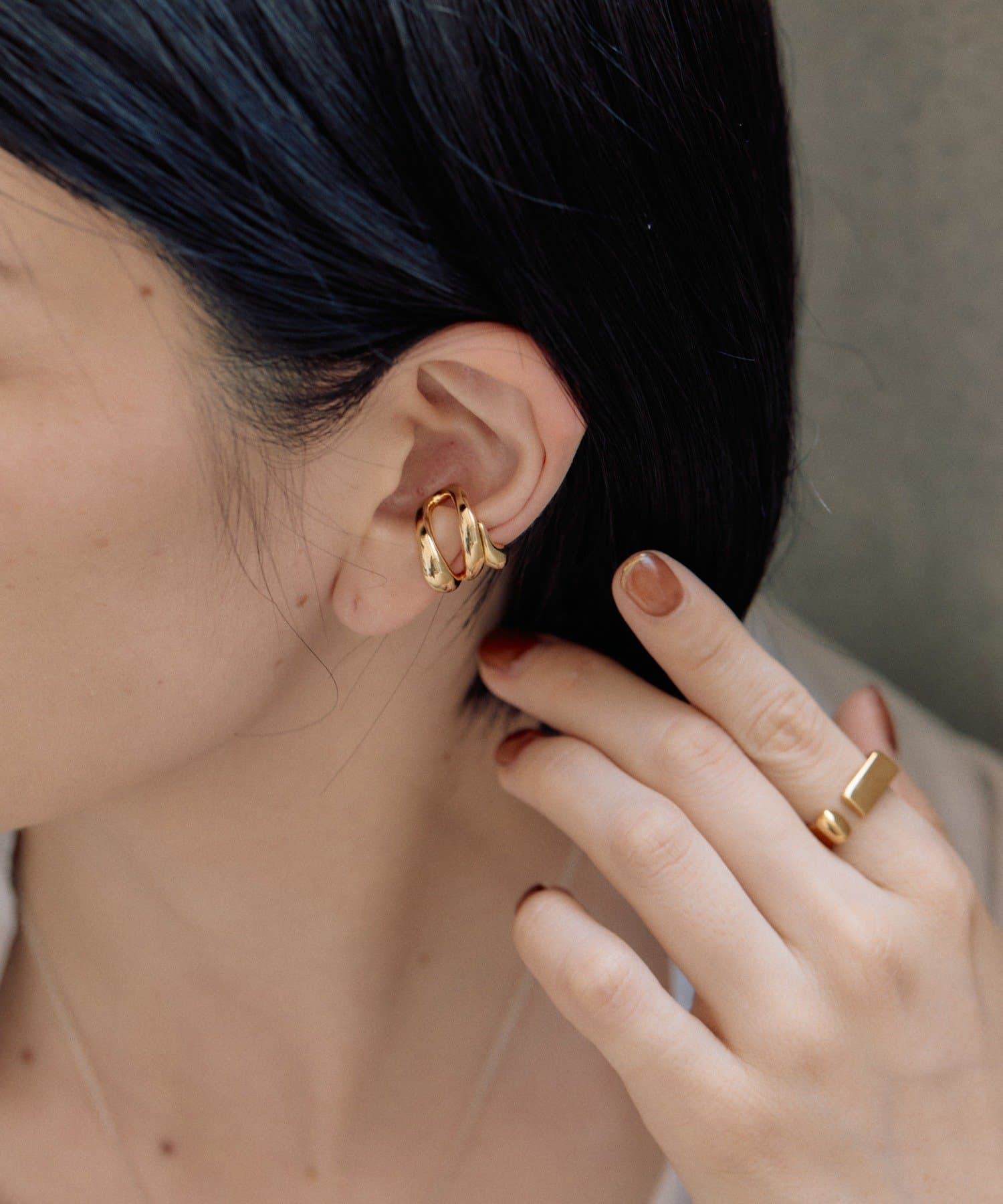 ・流れるようなやわらかなラインで形成された、ダブルフープのイヤーカフ