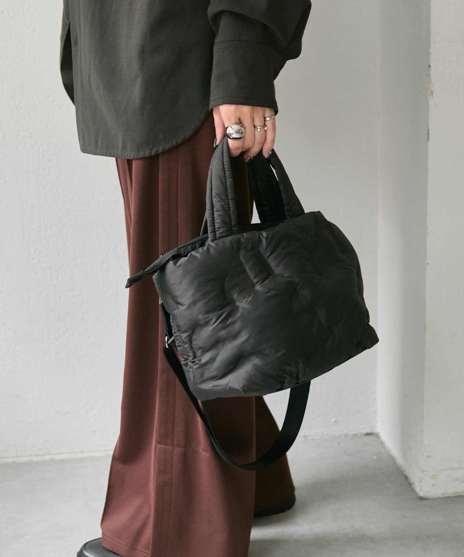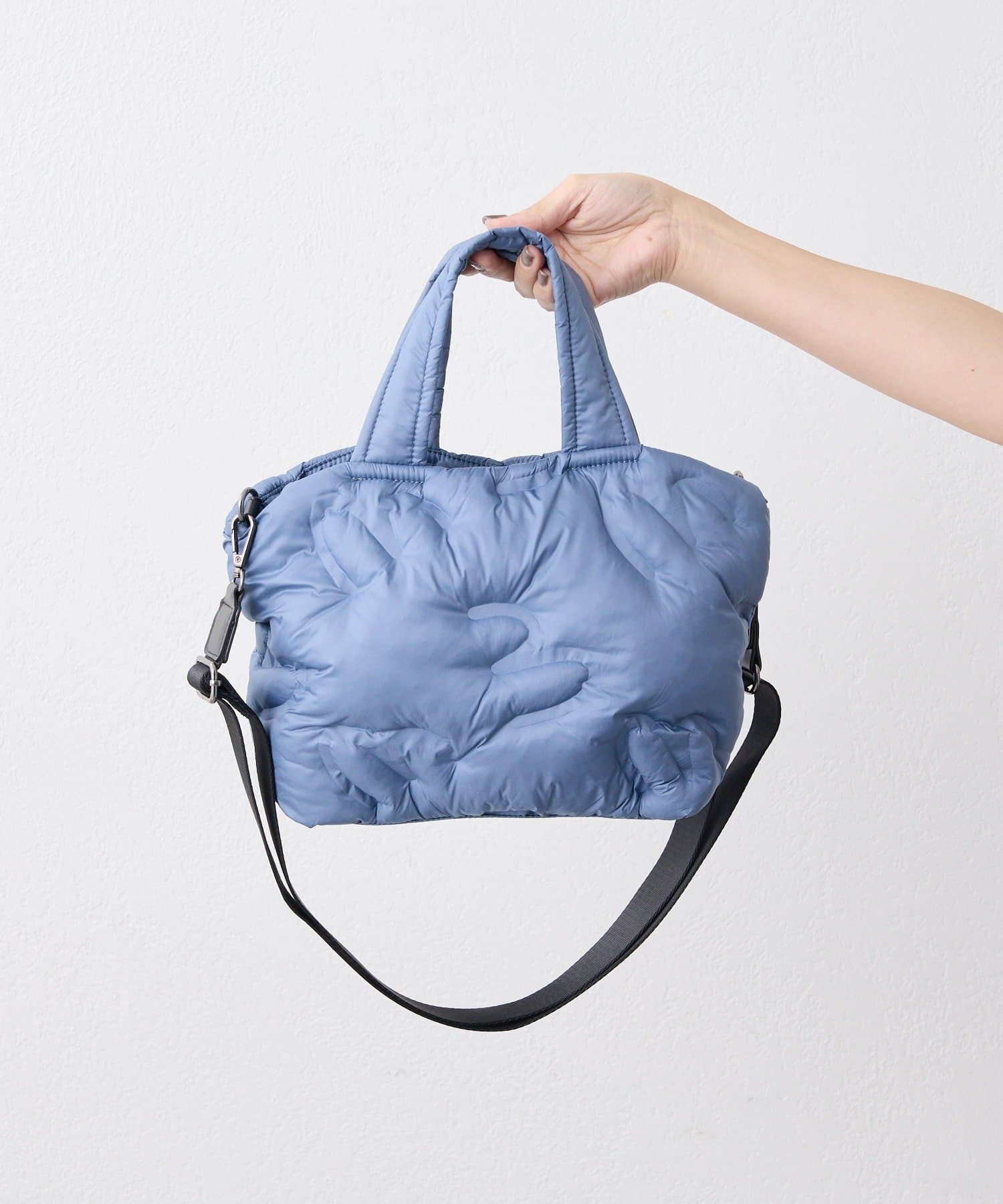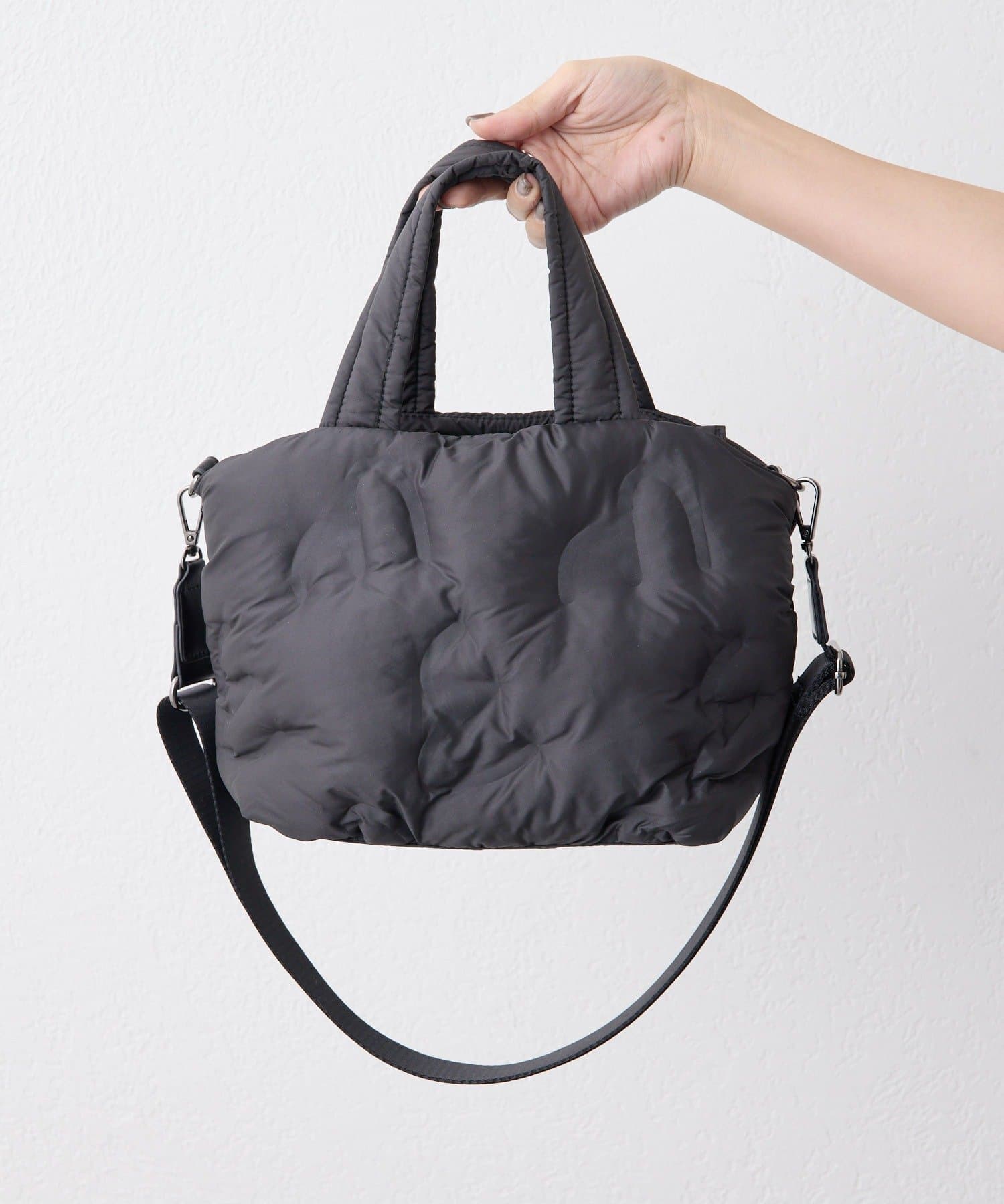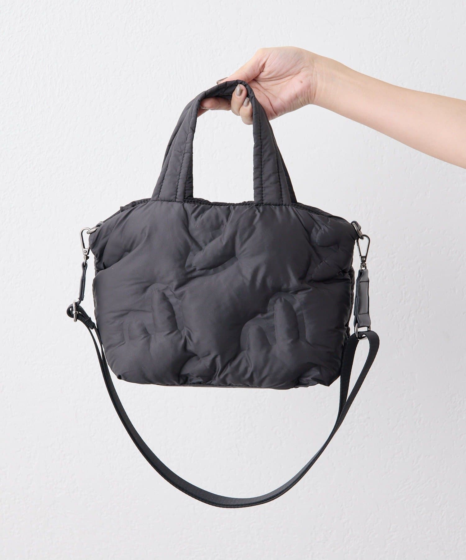 ふっくらとしたキルティングデザインが目を惹くトートバッグ。