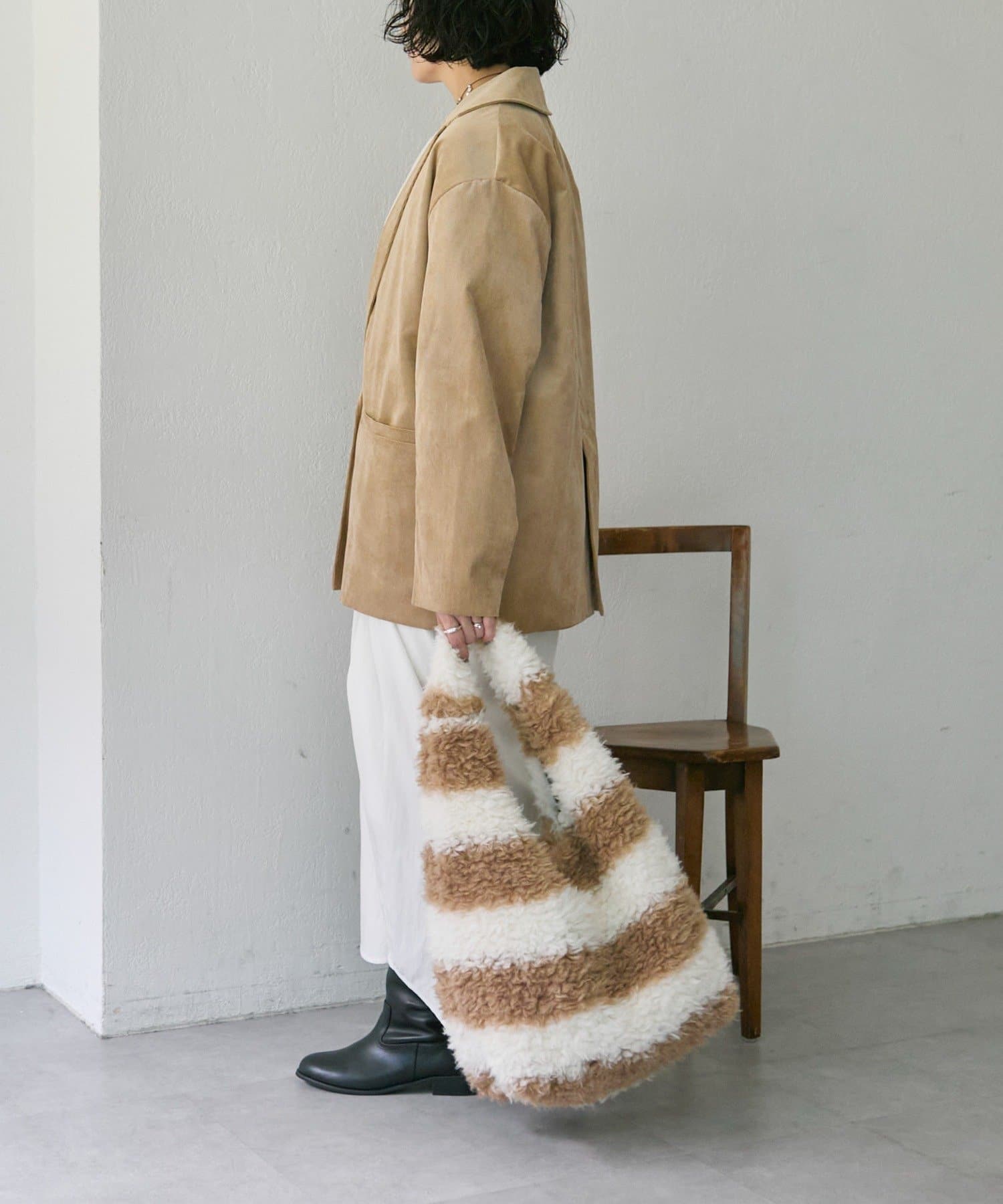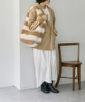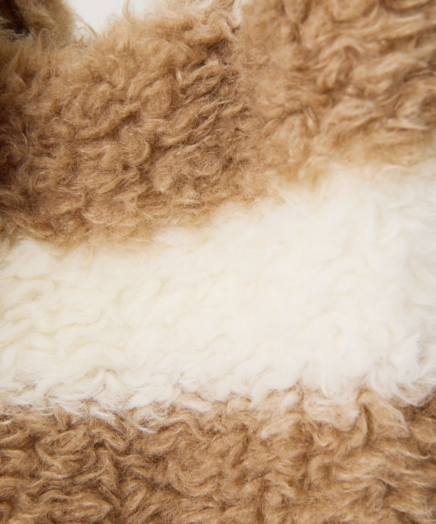 • ベージュはくるくるとした毛並みのボーダー柄
