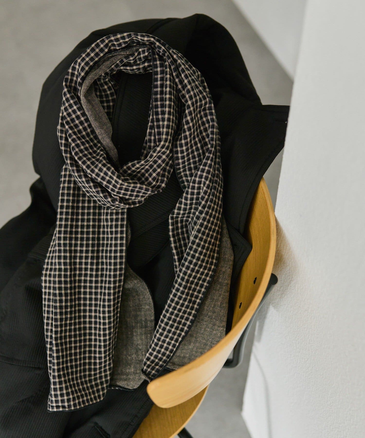 さりげない格子柄が、大人のカジュアルスタイルにマッチするストール。