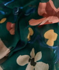 落ち着いた色合いの中に、鮮やかな花々が咲き誇る、上品でフェミニンなデザインです。