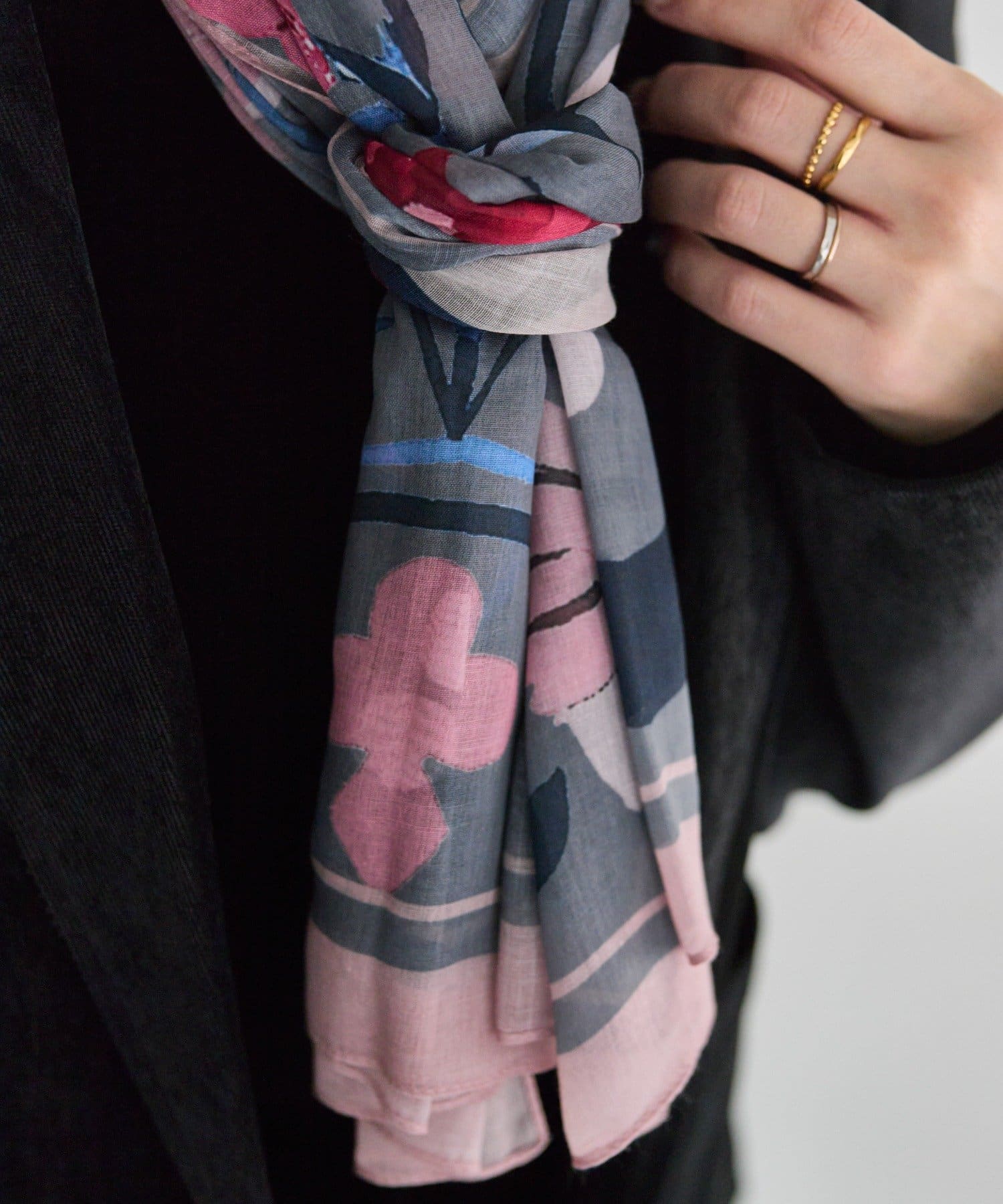 首元にふわりと巻けば、いつもの装いがたちまち華やかに。