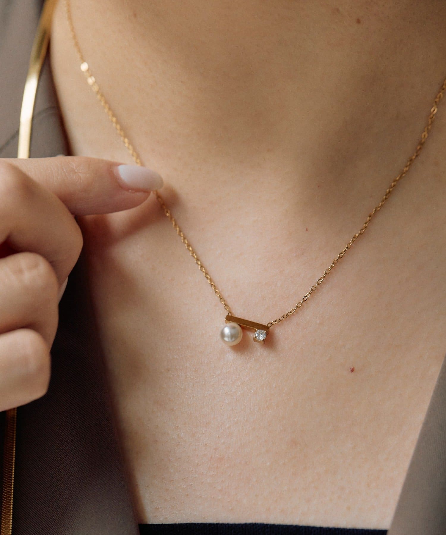 繊細な輝きを纏う、パール×クリスタルネックレス。