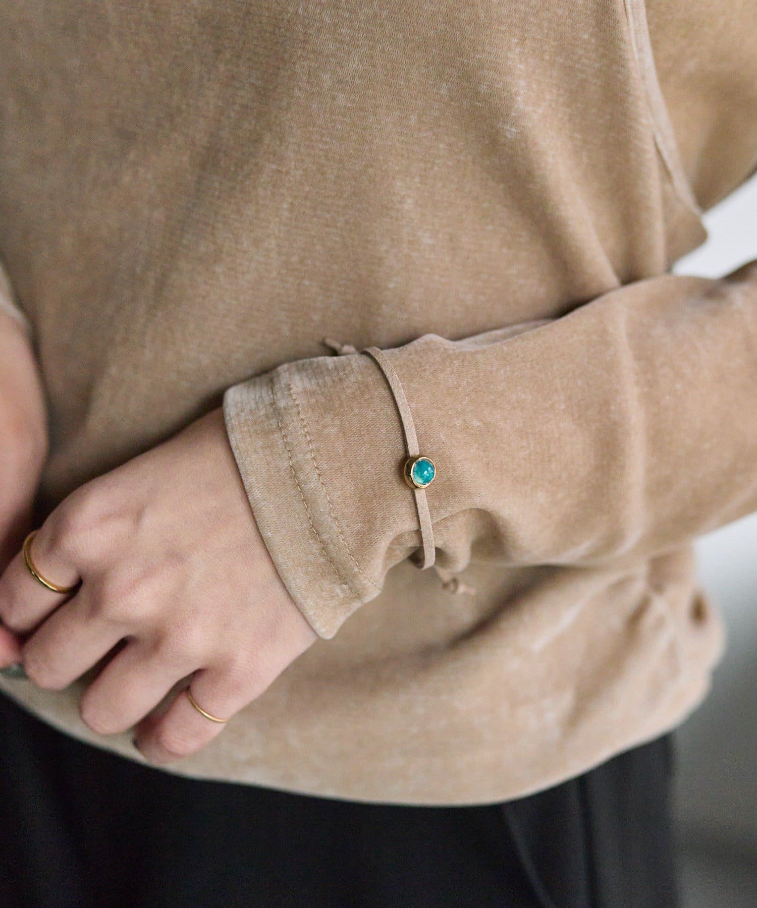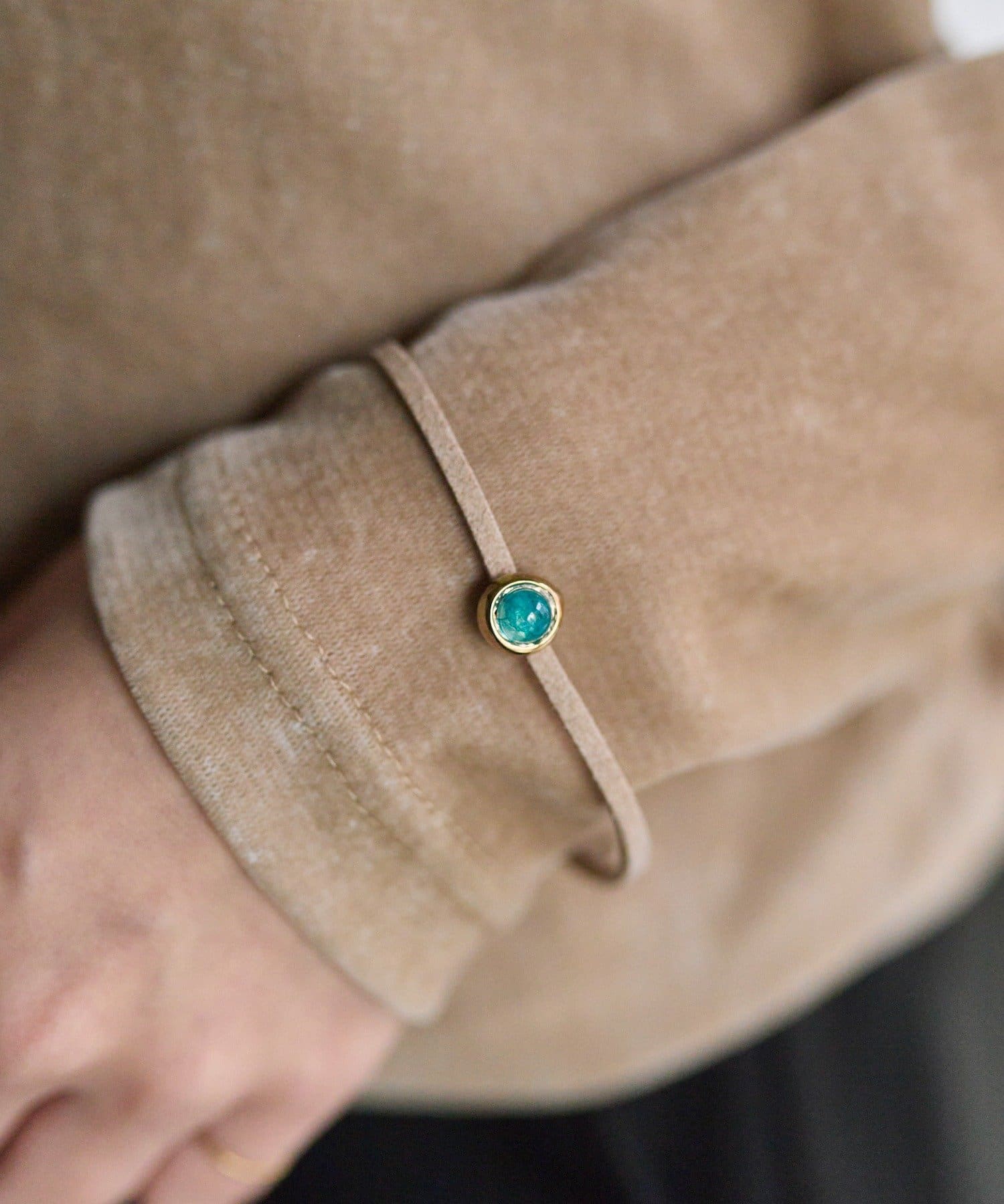 手元にさりげない輝きをプラス。スエード調テープの「プチカラーカボションブレスレット」