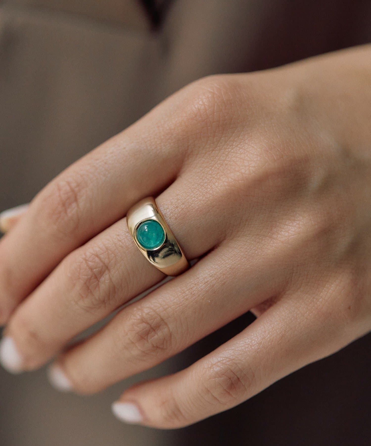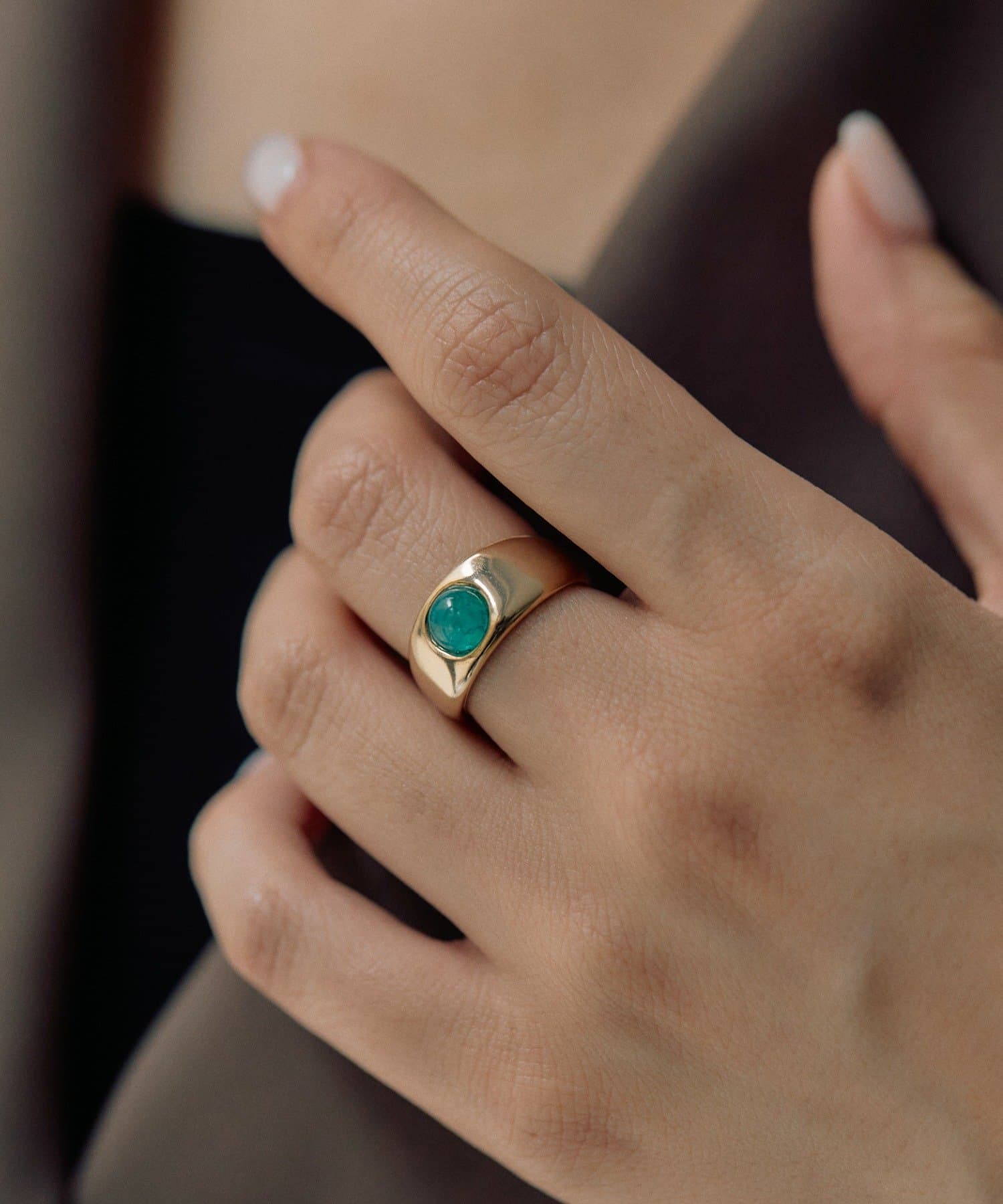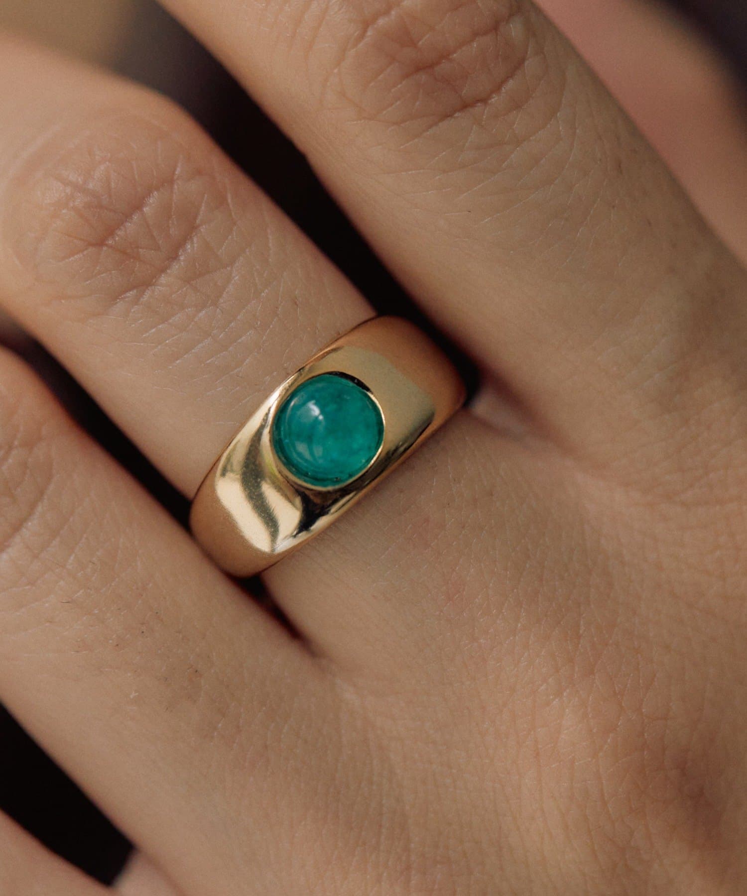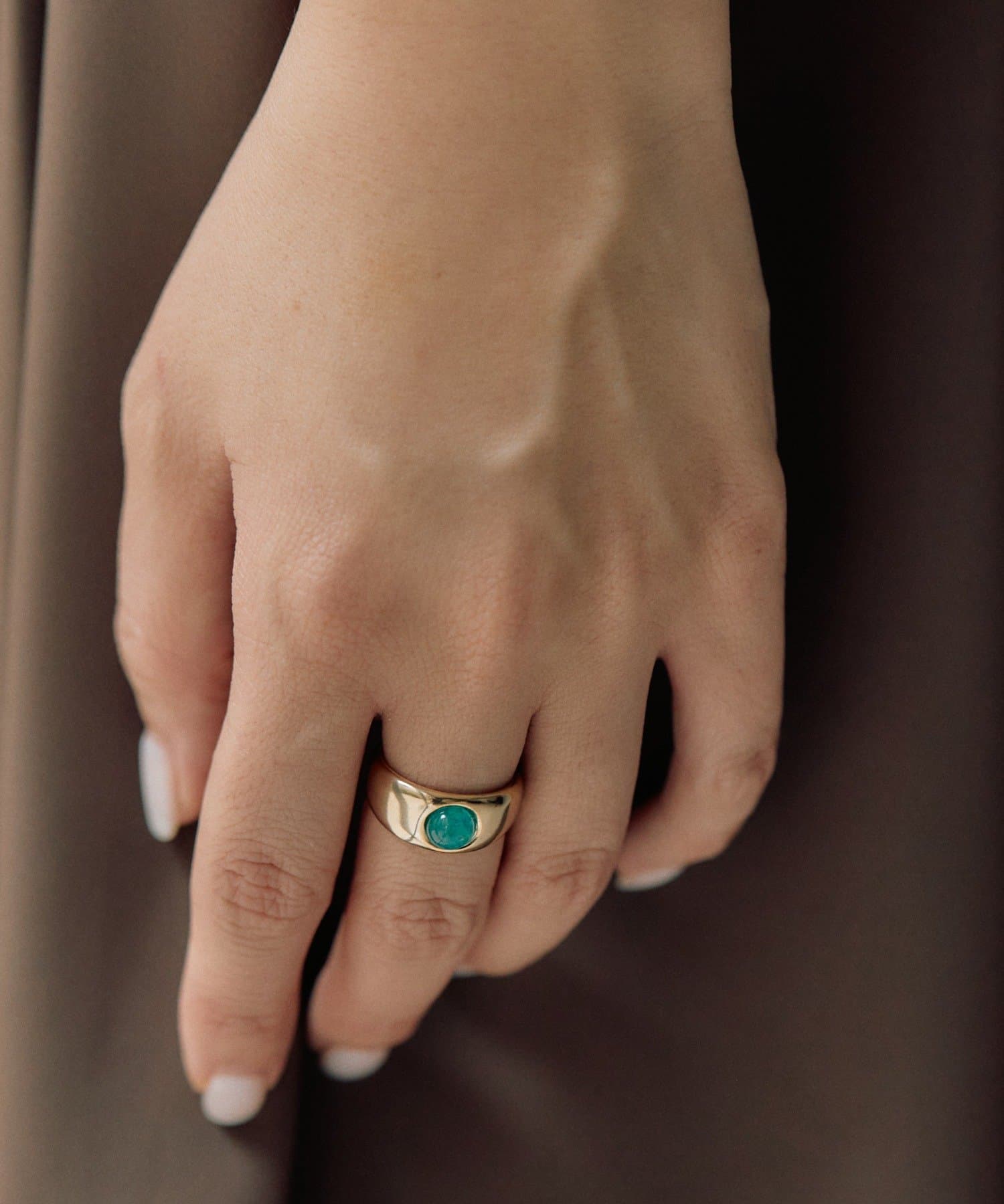 「プチカラーカボションリング」は、小さくても印象的なカラーが目を惹くリング。