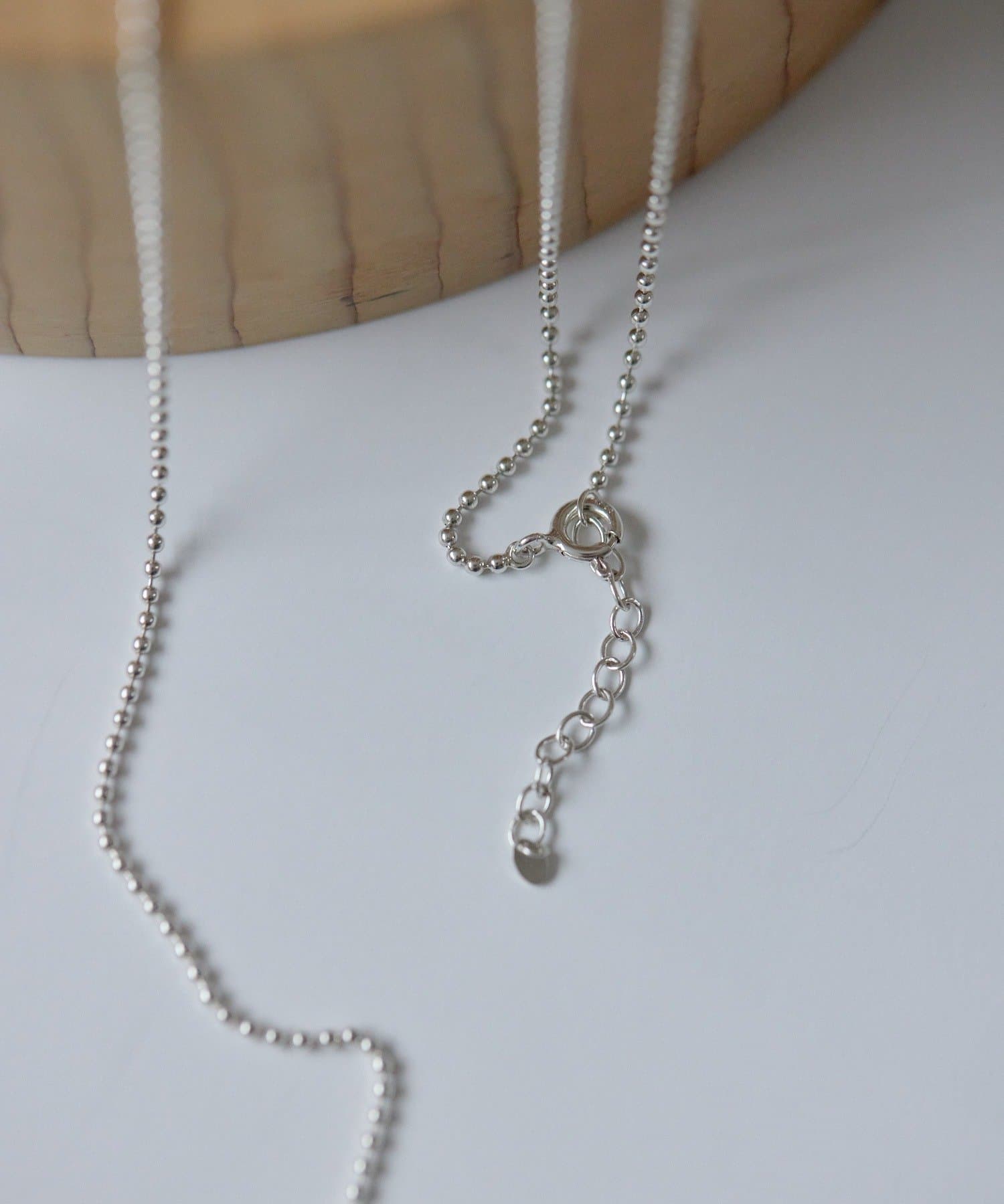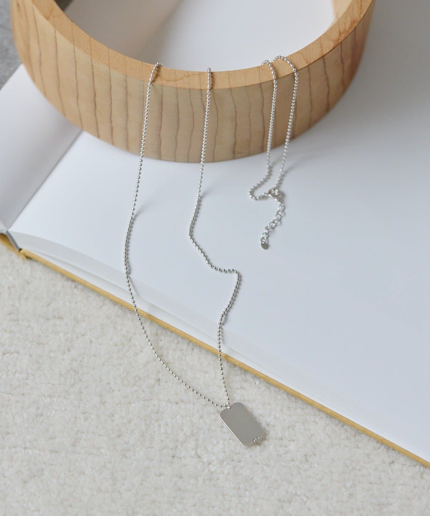 特徴的なボールチェーンと、シンプルで真っ新なシルバープレートの組み合わせは