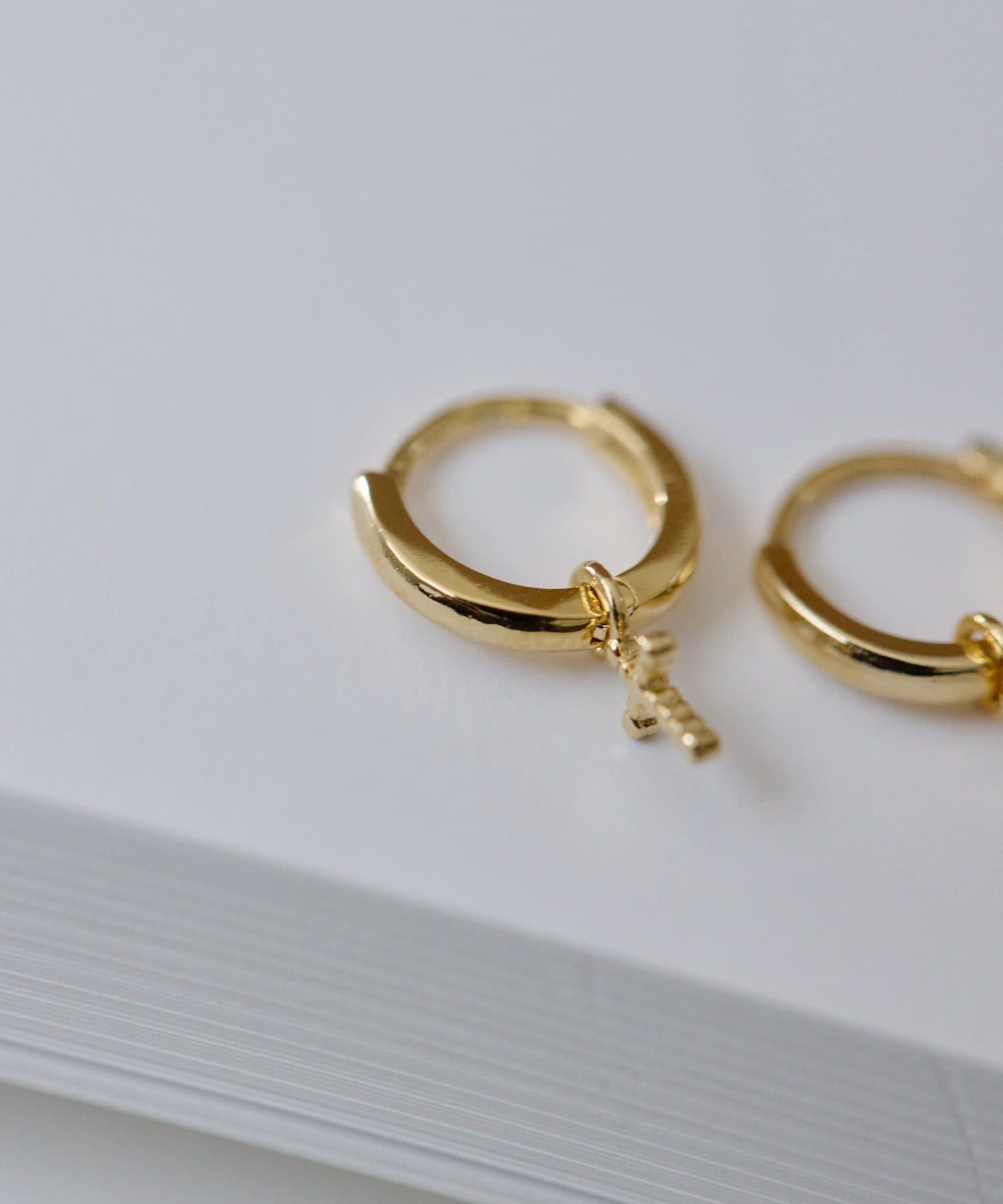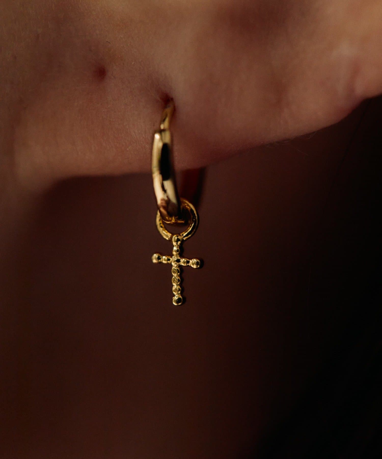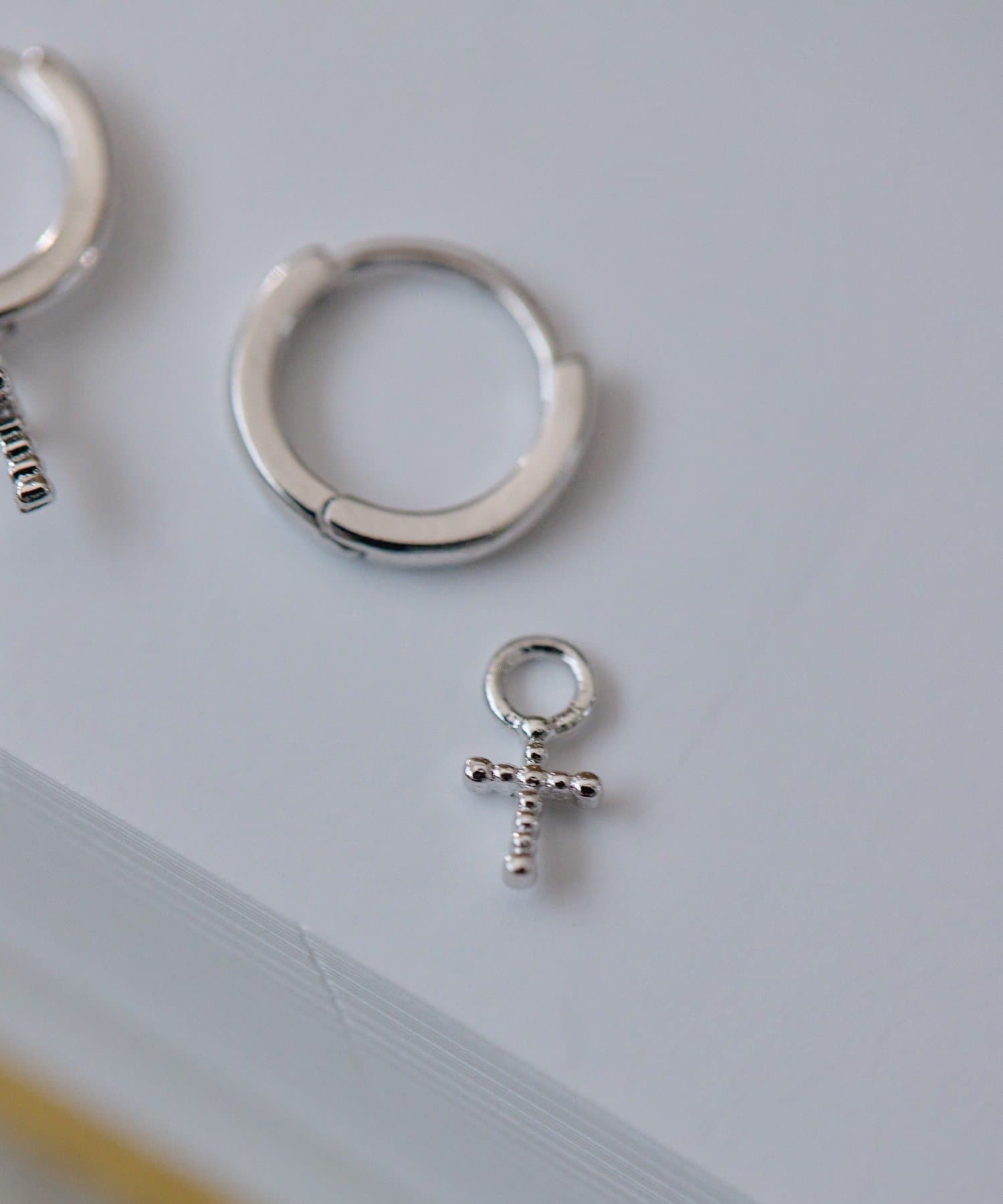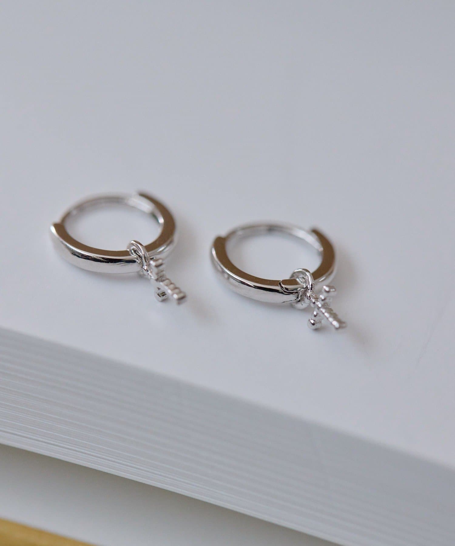 ear PAPILLONNER(イア パピヨネ) 《WEB限定/スターリングシルバー使用》》クロス付フープピアス