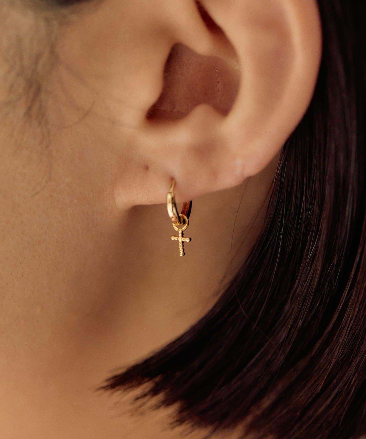 クロスは取り外し可能で、シンプルなフープピアスとしても使える2WAY仕様。