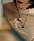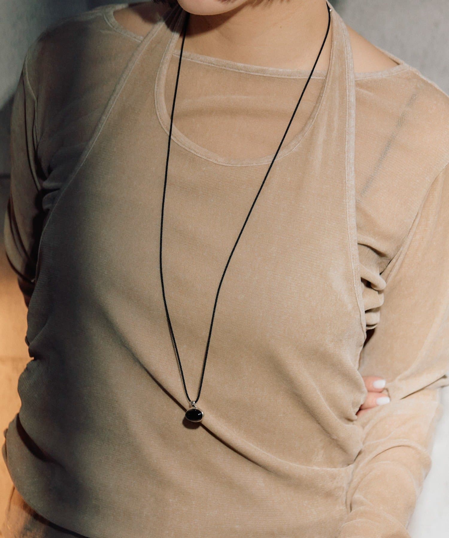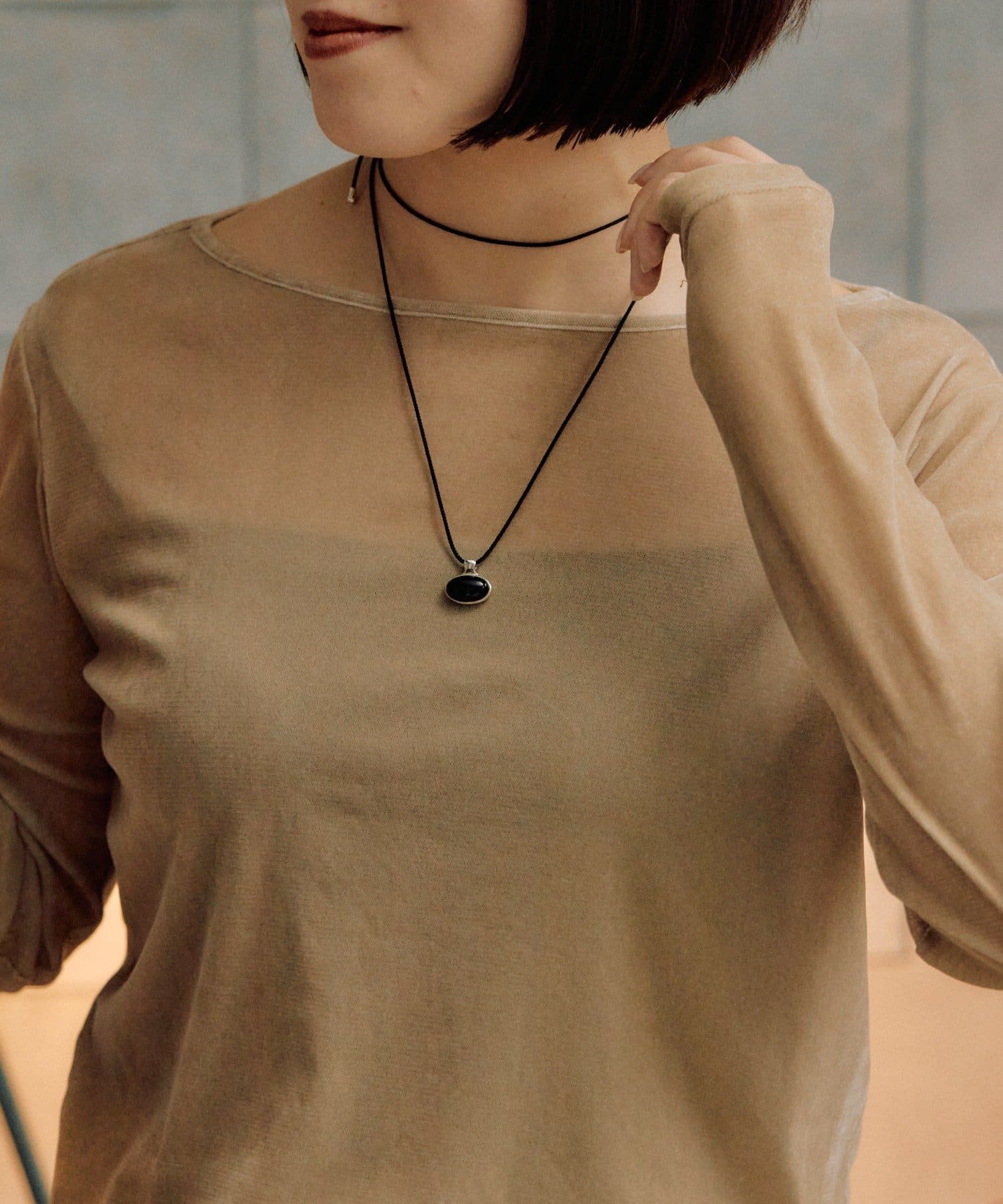 ・横向きオーバルストーンがデコルテに新鮮な表情をプラス