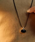 デコルテを美しく魅せる、上品モードなオーバルストーンネックレス