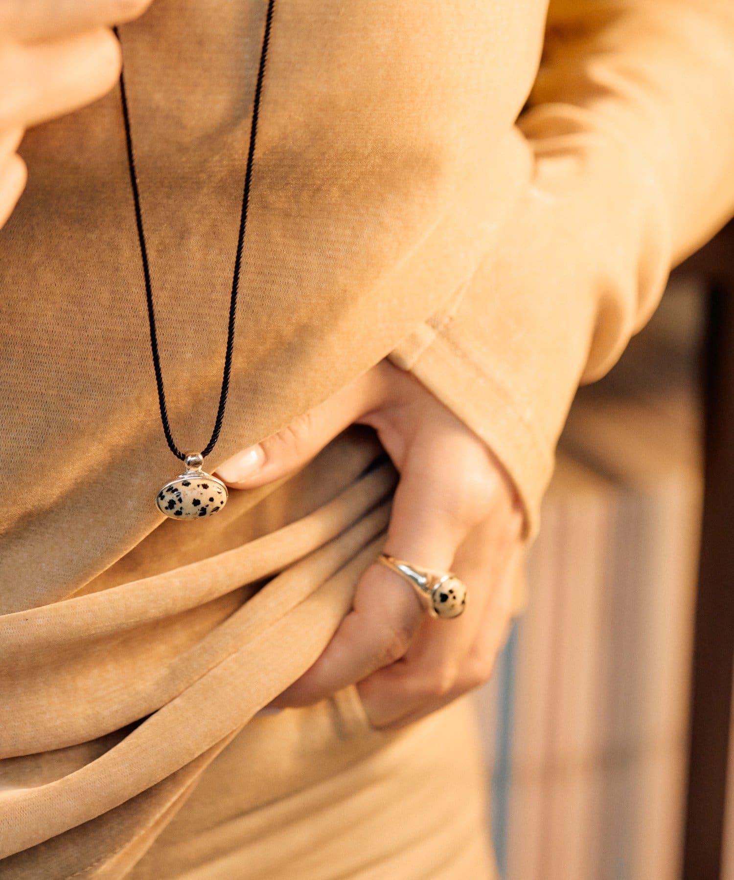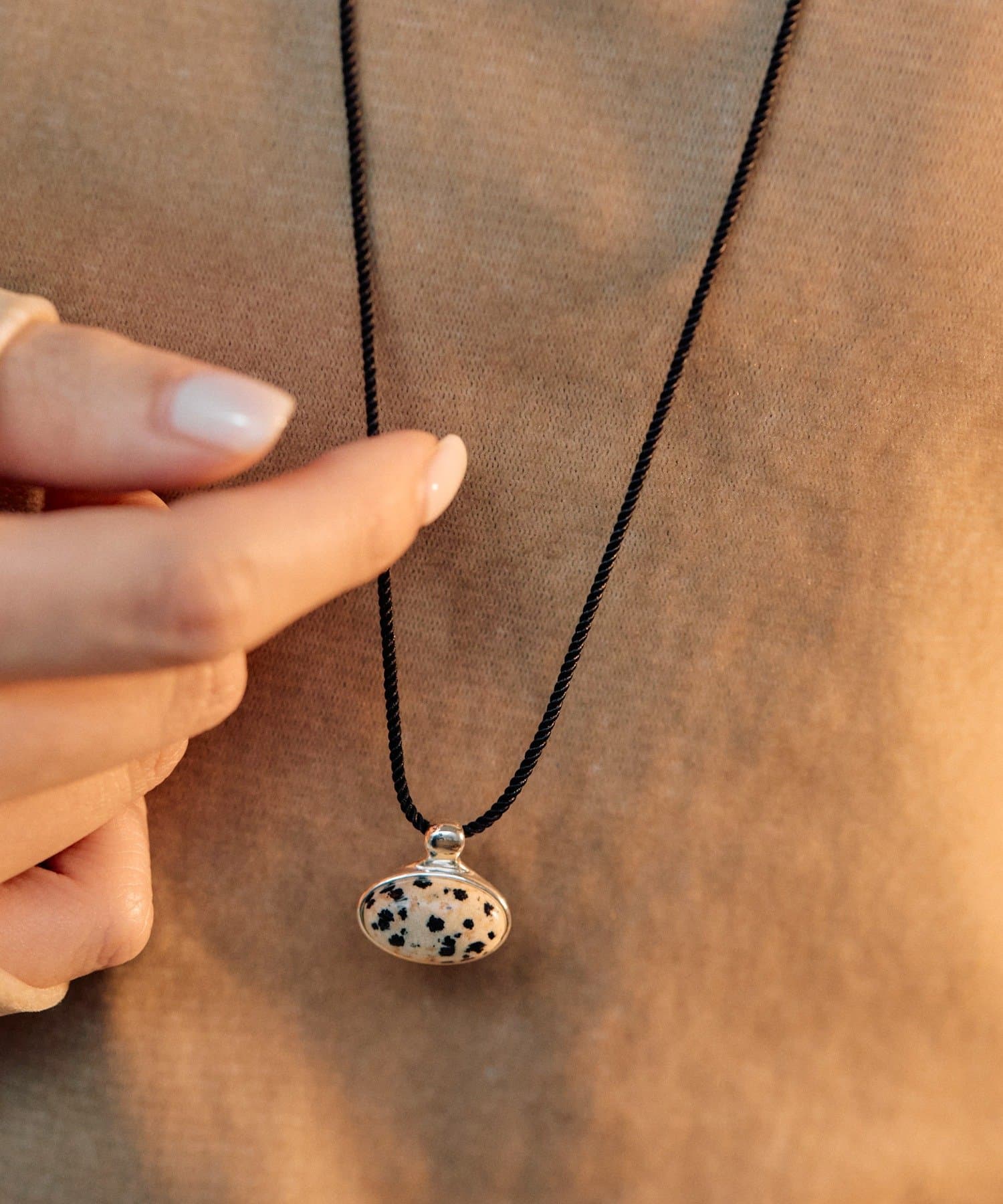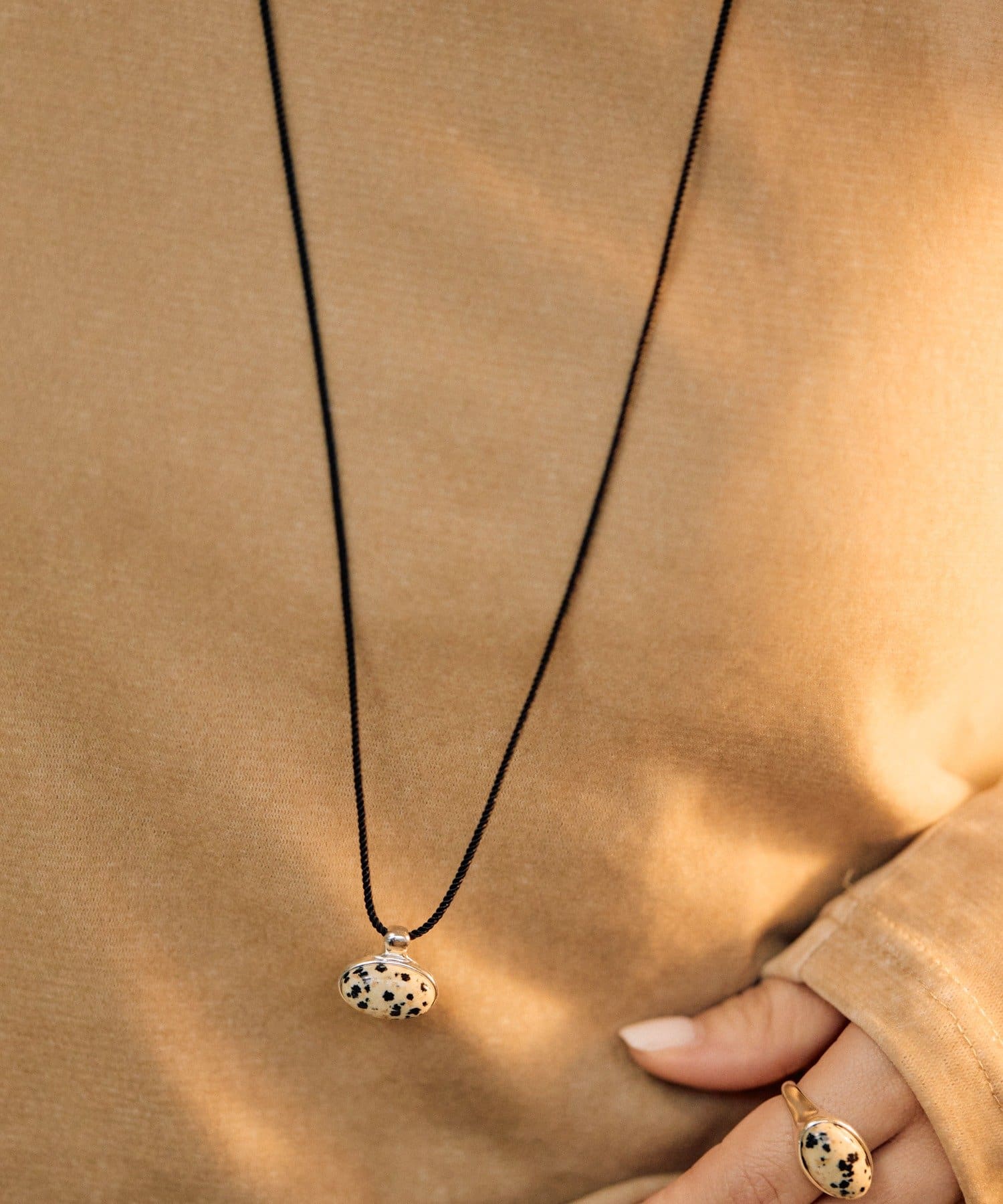 品番 EAZ1052511A0022 素材 スターリングシルバー・ダルメシアンジャスパー・オニキス 原産国 韓国 サイズ FREE カテゴリ アクセサリー > ネックレス タイプ レディース ギフト ラッピング 可 取り扱い - アイテムサイズ