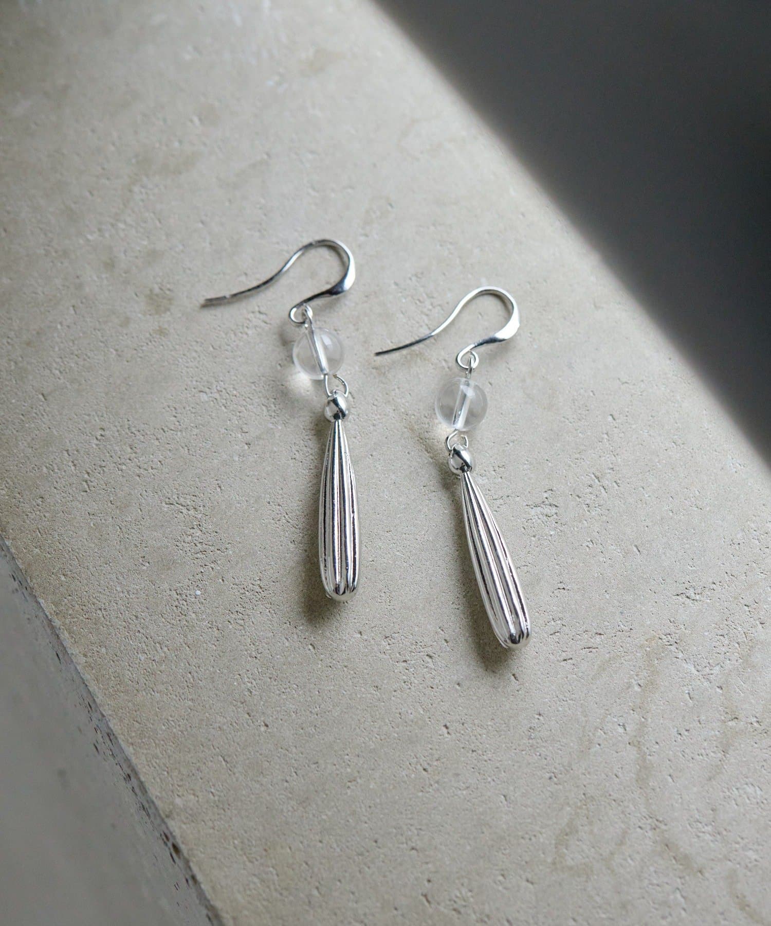 ・細長いドロップにはラウンドクリスタルを合わせ女性らしく