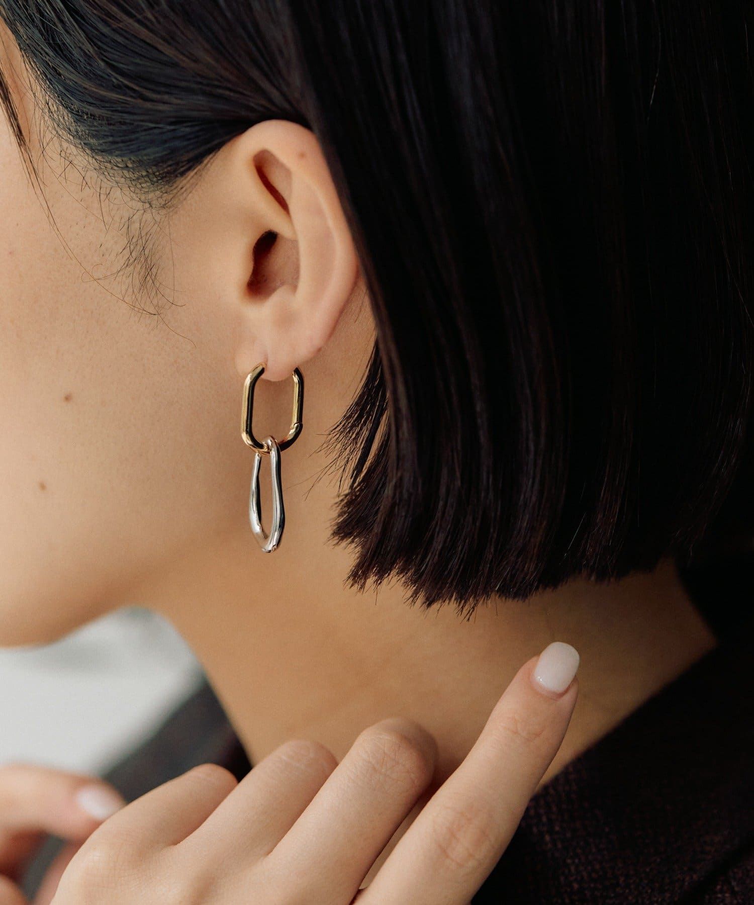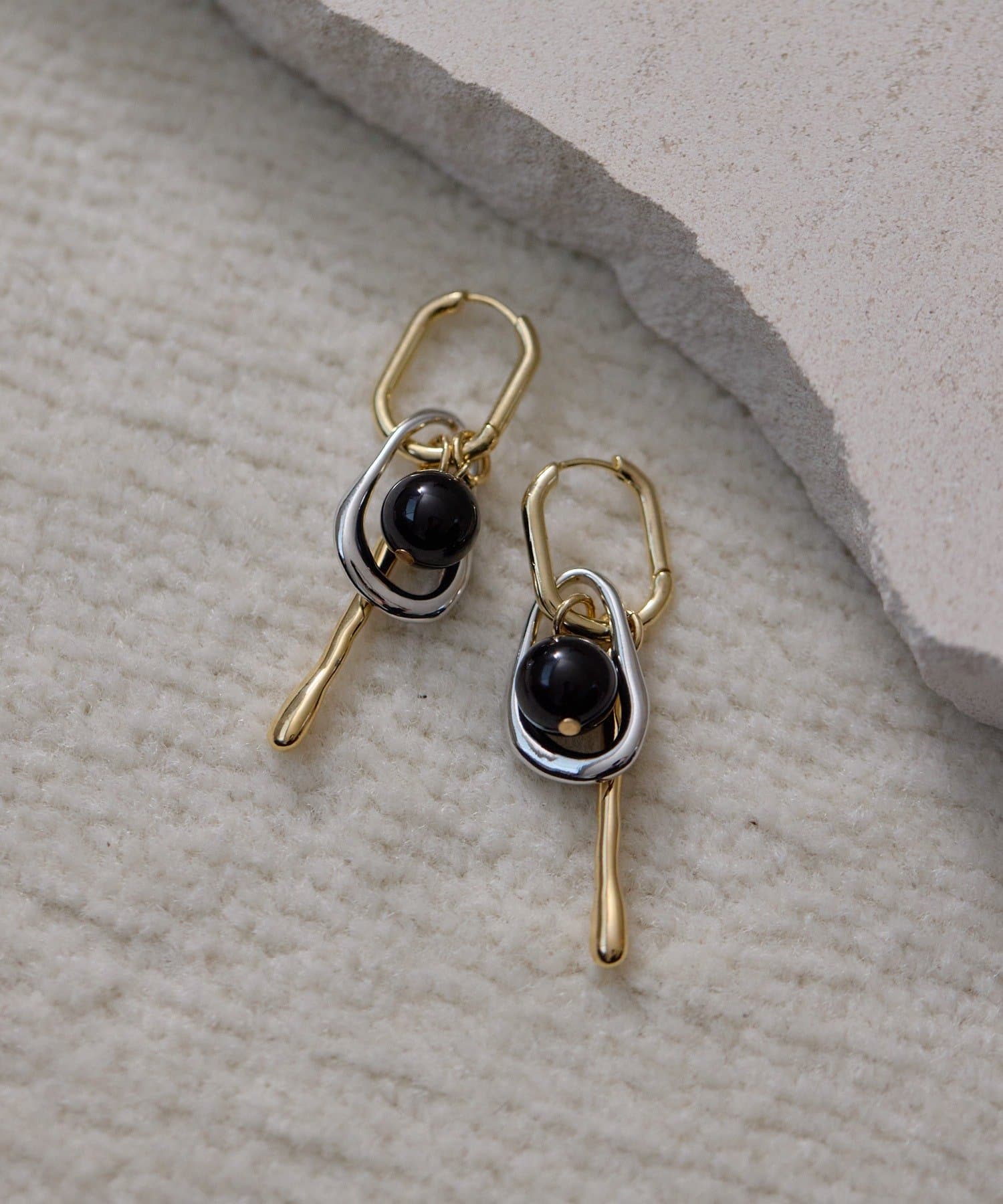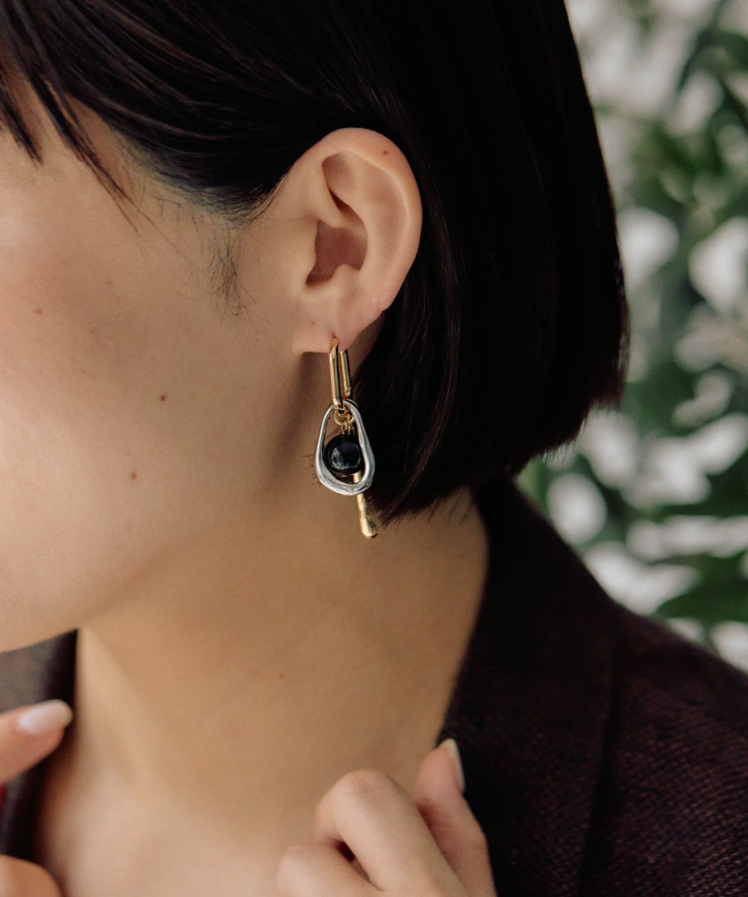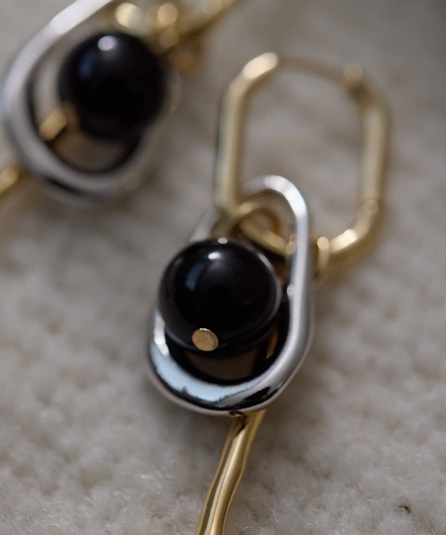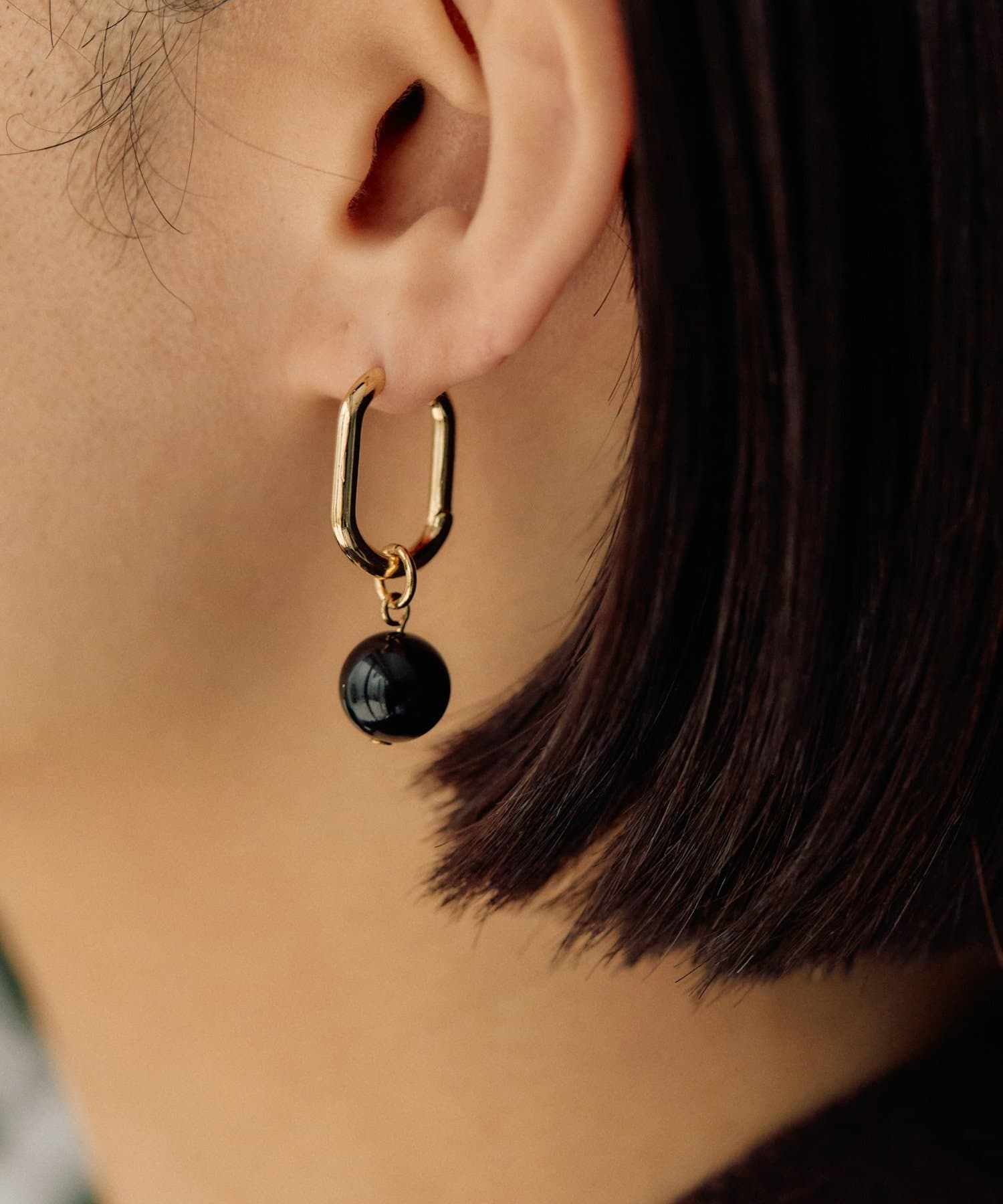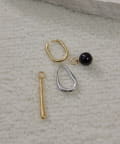 3つのパーツで、表情の変化を楽しめる「ブラックバリエーションフープピアス」。