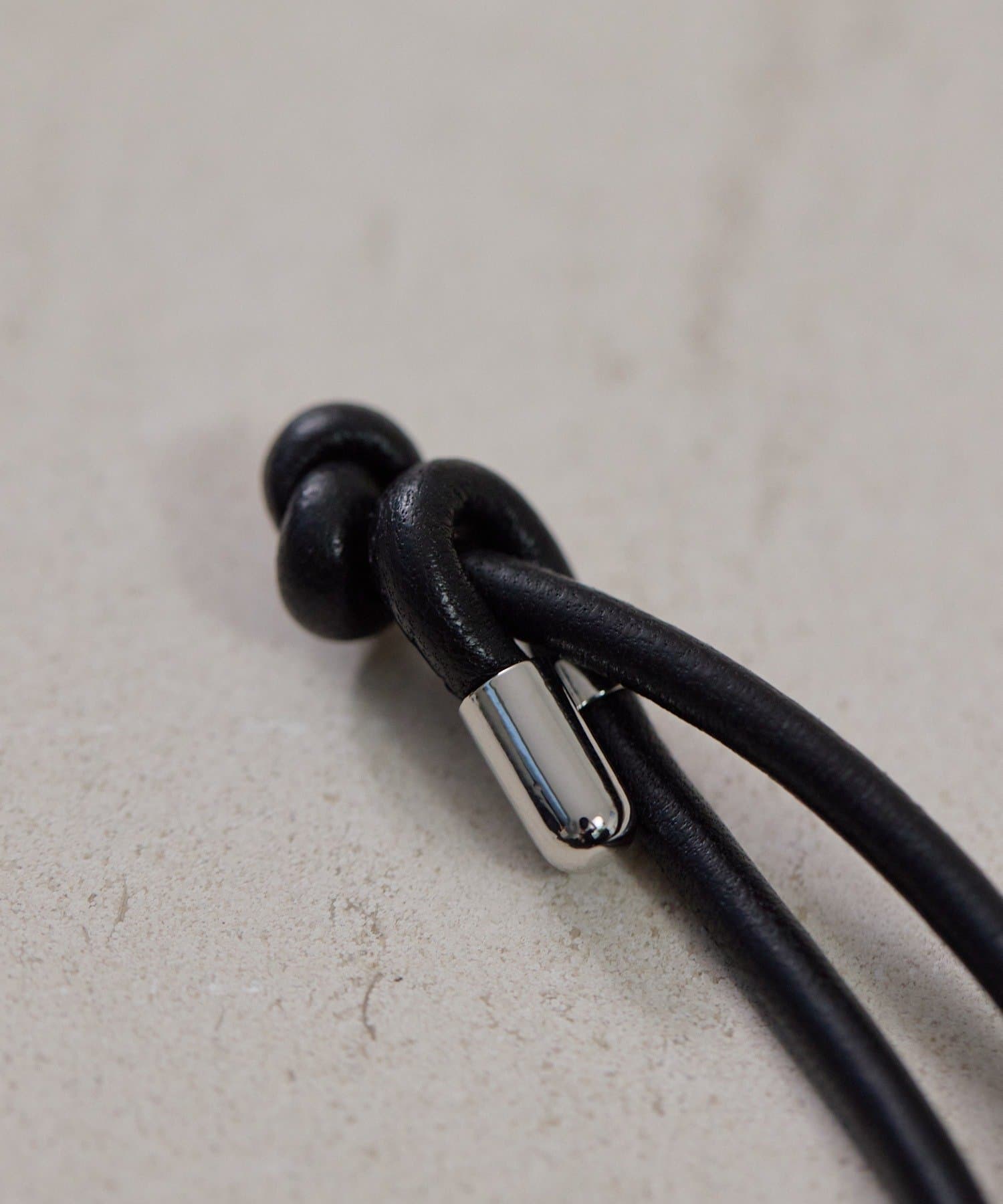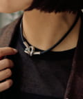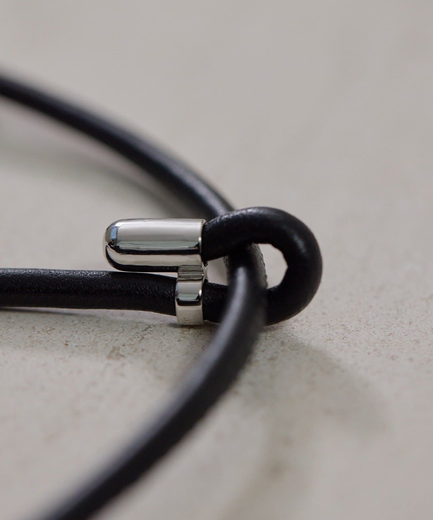・結んだ一本のコードに見える、金属トップのレザーチョーカー
