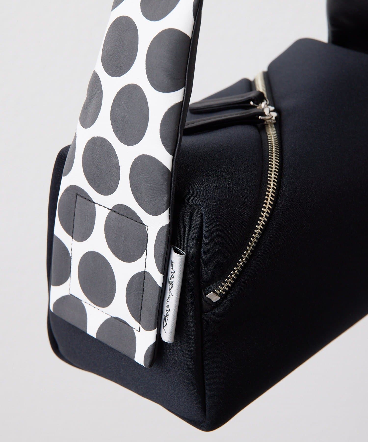 大ぶりの水玉ハンドルは、革職人が1枚ずつ手作業でラバー顔料を用いて革への定着性が高く、手に馴染みやすい仕上がりです。