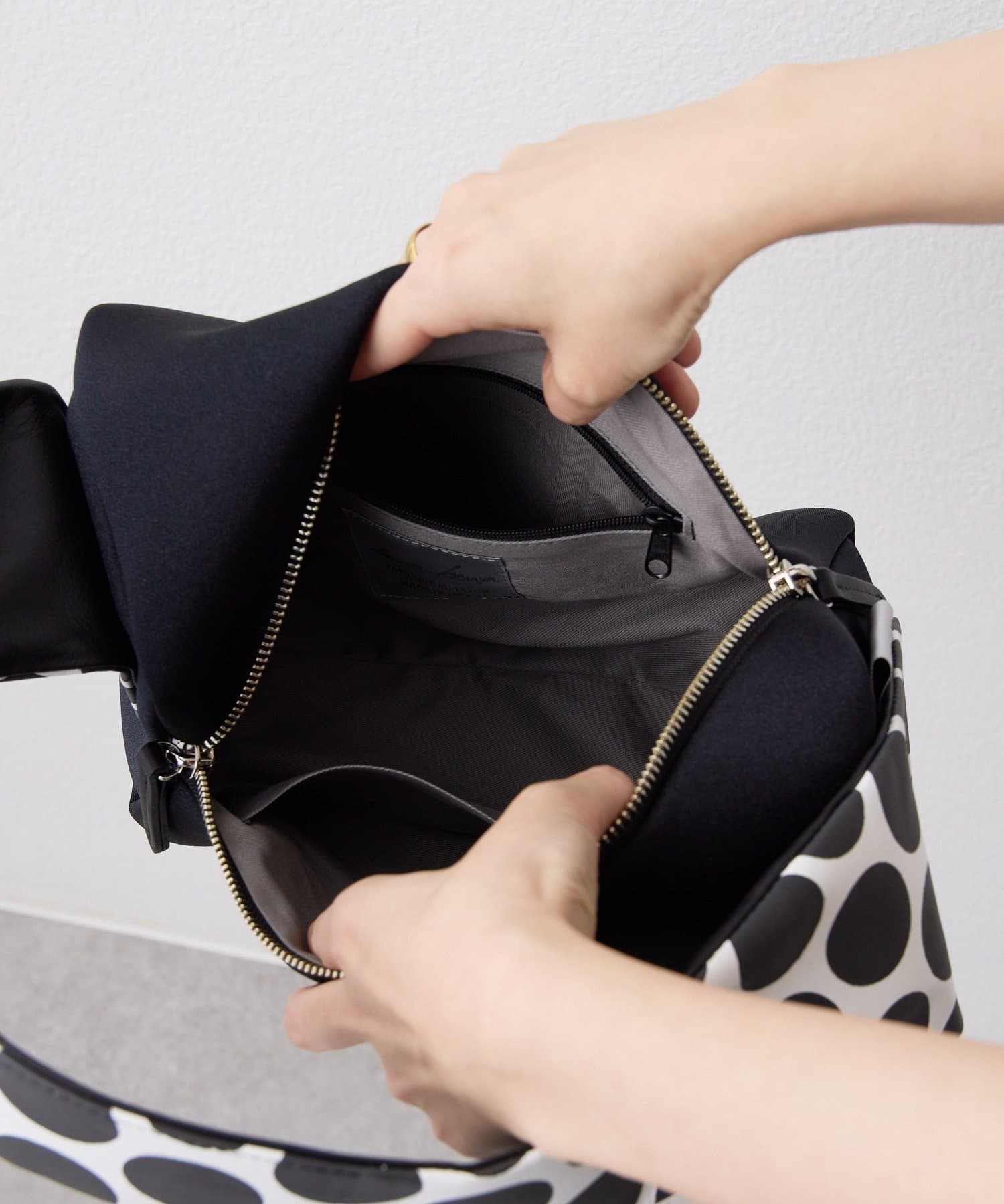 開口ファスナーはデザインを引き締める役割だけでなく、バッグの横幅に対して開口部を長くできる利点があります。